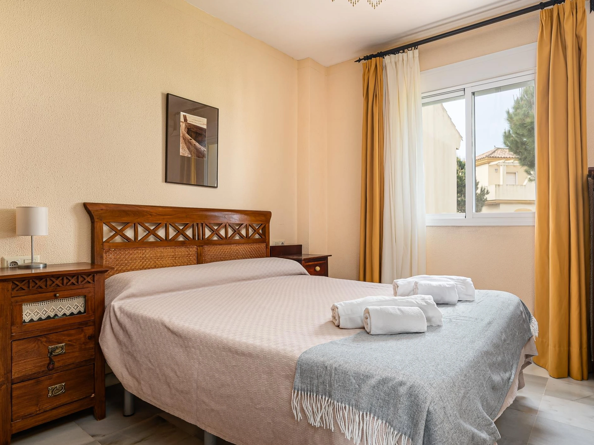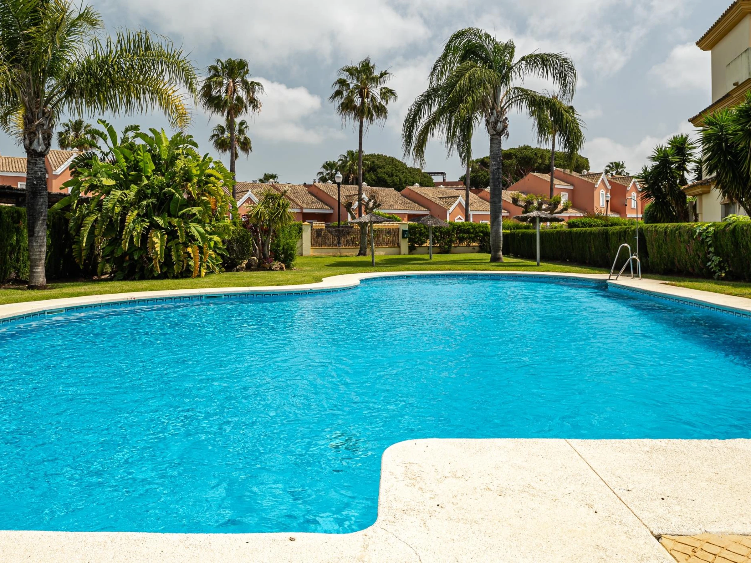 The private complex includes a communal pool, extensive green areas, and parking at the property’s door. Its design is ideal for families with children, offering peace and security for a perfect vacation in Chiclana. In the area, you can enjoy birdwatching, hiking, cycling routes, water sports, golf, horseback riding, or simply relax on the endless La Barrosa Beach, famous for its magical sunsets with the Castillo de Sancti Petri as a backdrop.