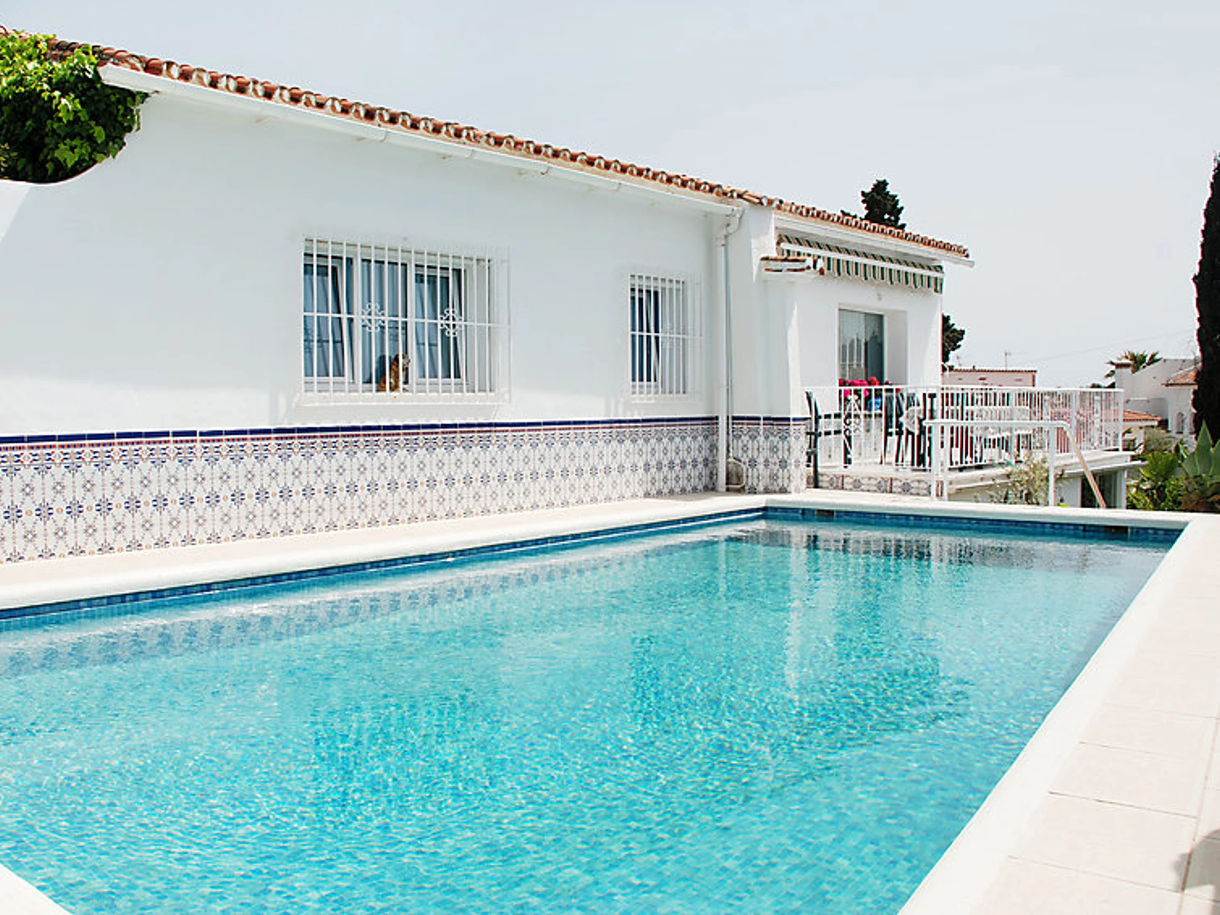 Urb. Puerto de Hierro 2 km from Chilches: Cosy house "Puerta De Hierro". 17 km from the centre of Malaga, on the outskirts, 4 km from the centre of Rincón de la Victoria, in a quiet, sunny position, 500 m from the sea, located by a road. Private: garden 600 m2 (fenced) with lawn and wildlife garden, swimming pool (5 x 10 m, depth 110 - 250 cm, 15.04.-01.12.). Outdoor shower, terrace (25 m2), garden furniture. Stepped path (6 steps) to the house. Parking. Grocery, restaurant, bus stop, sandy beach 500 m. Additional cleaning and bed linen and towels change for bookings of more thank 14 days.