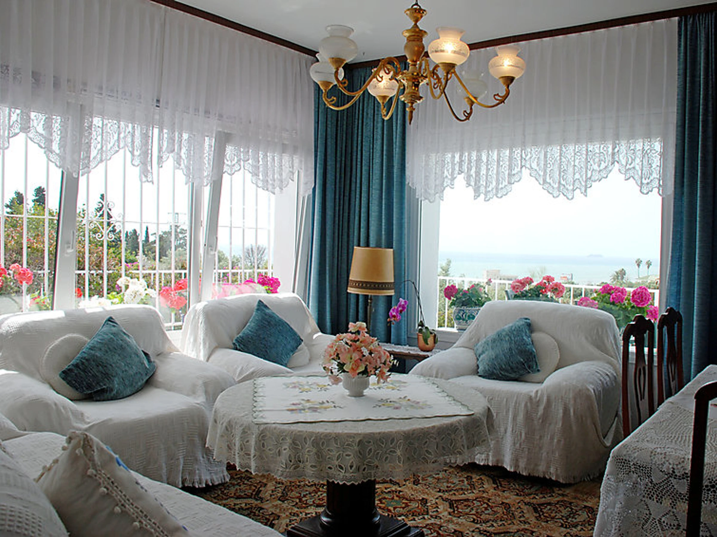 4-room house 110 m2. Rustic furnishings: living/dining room 22 m2 with panoramic window with satellite TV. 2 rooms, each room with 2 beds and gas heater. 1 room with 2 beds, 1 sleeping facility, hand-basin, separate WC and gas heater. Kitchen (oven, freezer, electric coffee machine) with dining table. Exit to the garden. Bath/bidet/WC. Terrace 8 m2, large garden. Terrace furniture, balcony furniture, barbecue (portable), deck chairs (4). Very beautiful view of the sea. Maximum 1 pet/ dog allowed. Included: Pet, Final cleaning, Laundry (initial supply of bed linen and towels)