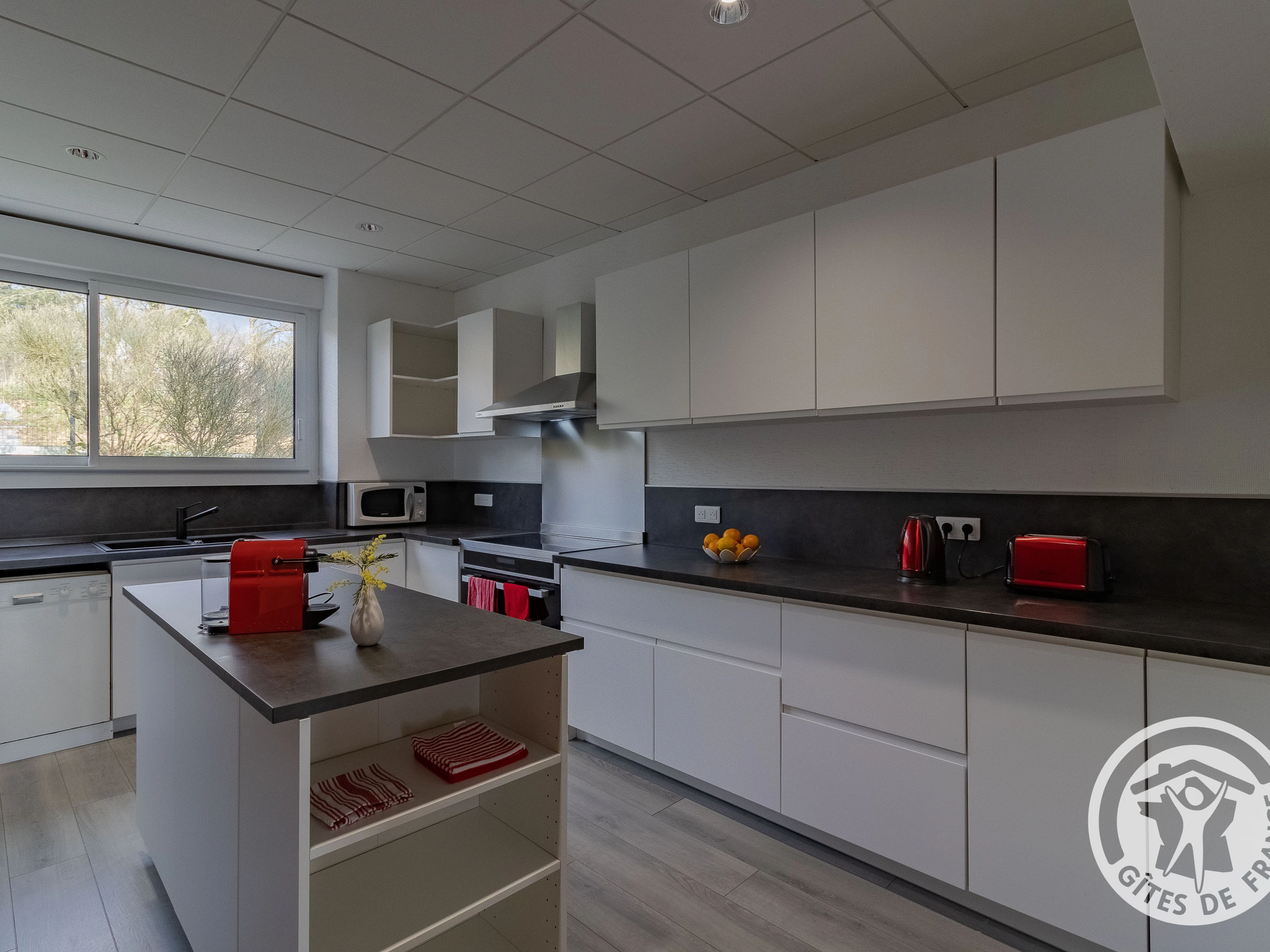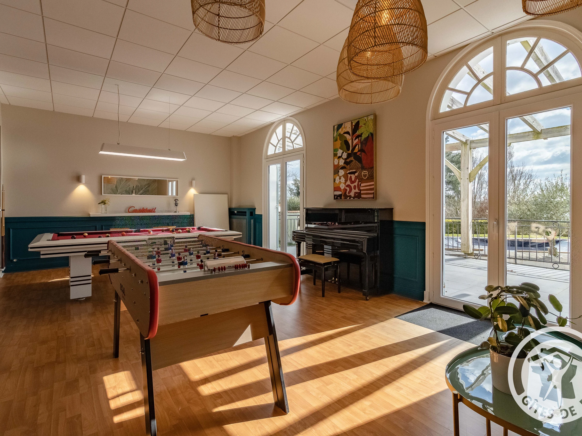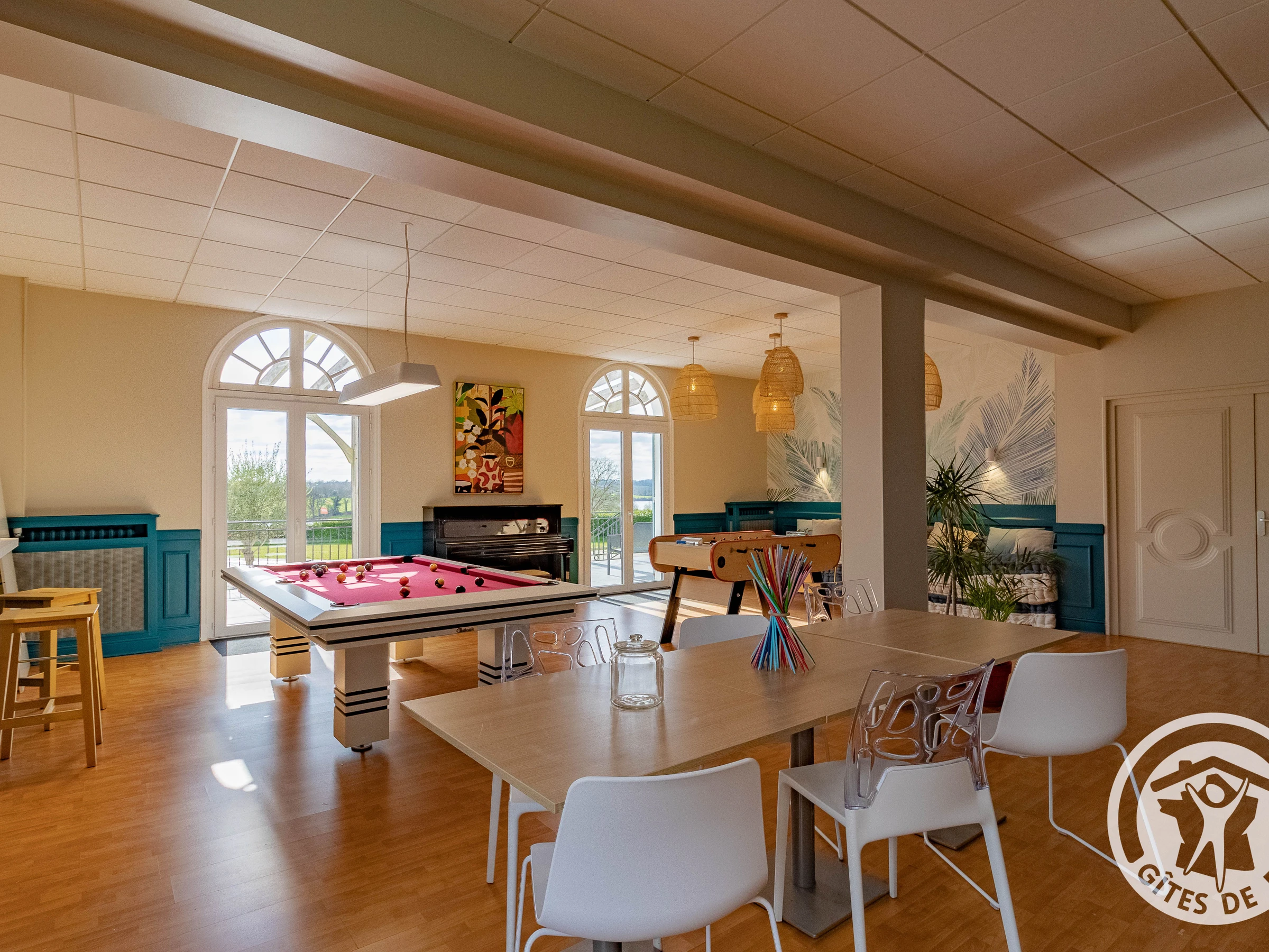 Inside, you'll find a bright 90 m² living room offering character, comfort, and plenty of entertainment: billiards, piano, foosball, and a magnificent lake view. A large flat-screen TV with free Netflix access is available on the smart TV. The 20 m² kitchen is fully equipped and suitable for groups.