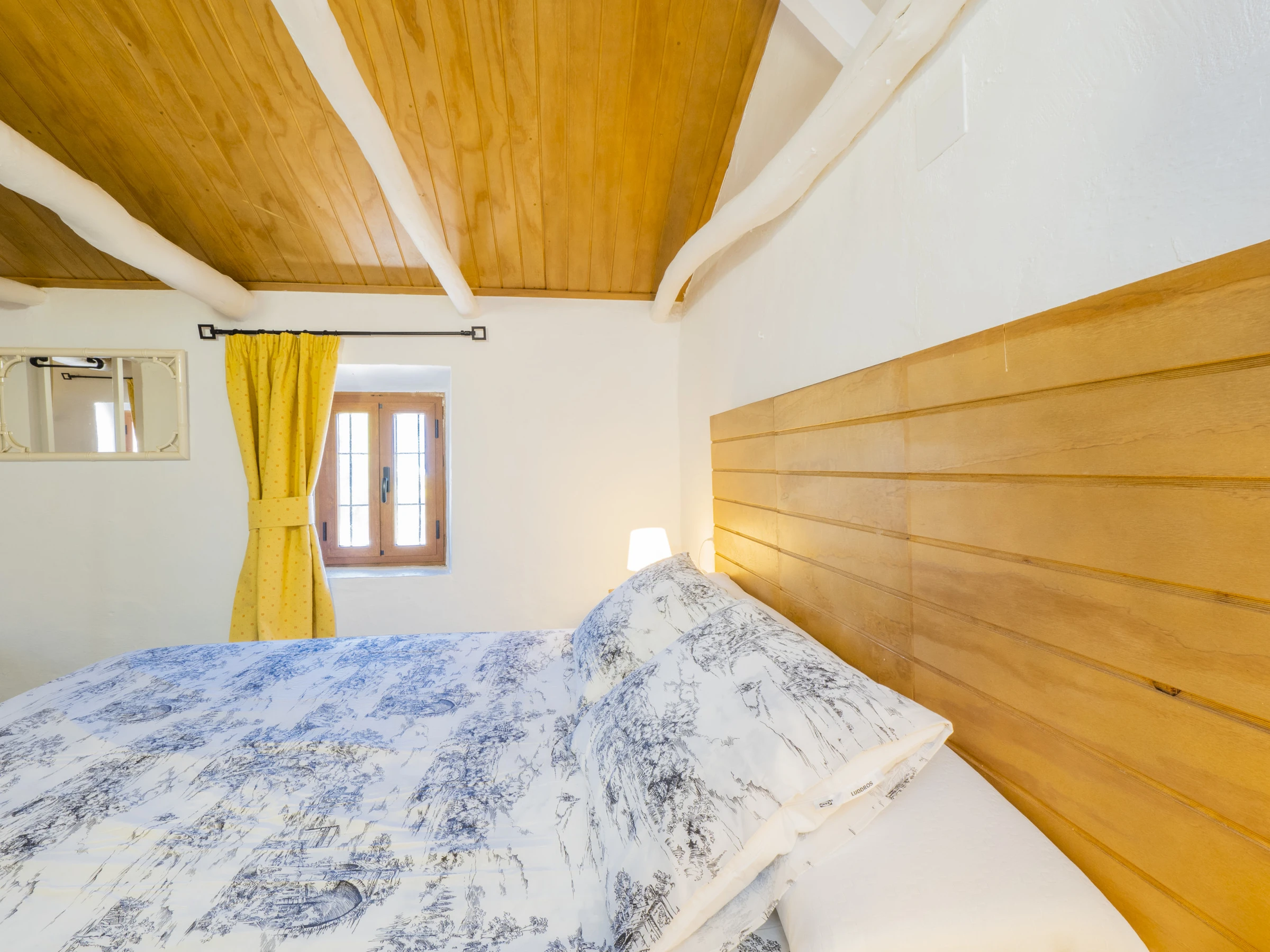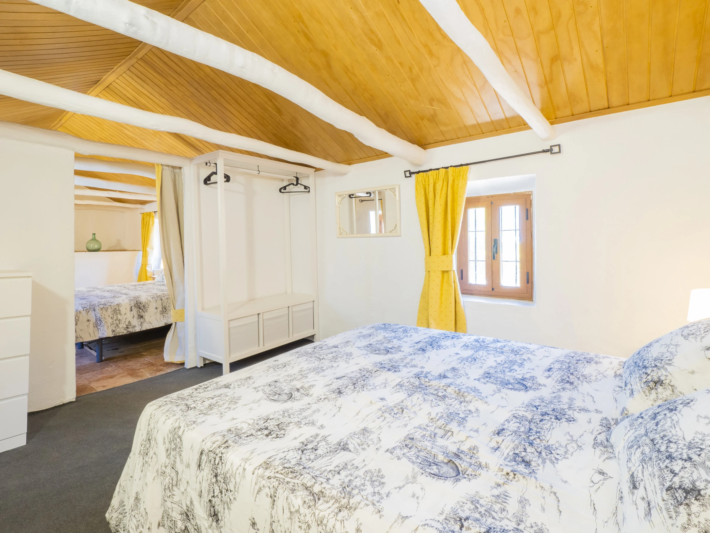 On the upper floor, an attic-style space with wooden ceilings and original beams, the spacious bedrooms are located: one with a double bed and two single beds, separated by curtains, sharing air conditioning with heat pump for maximum comfort. The house is not adapted for people with reduced mobility.