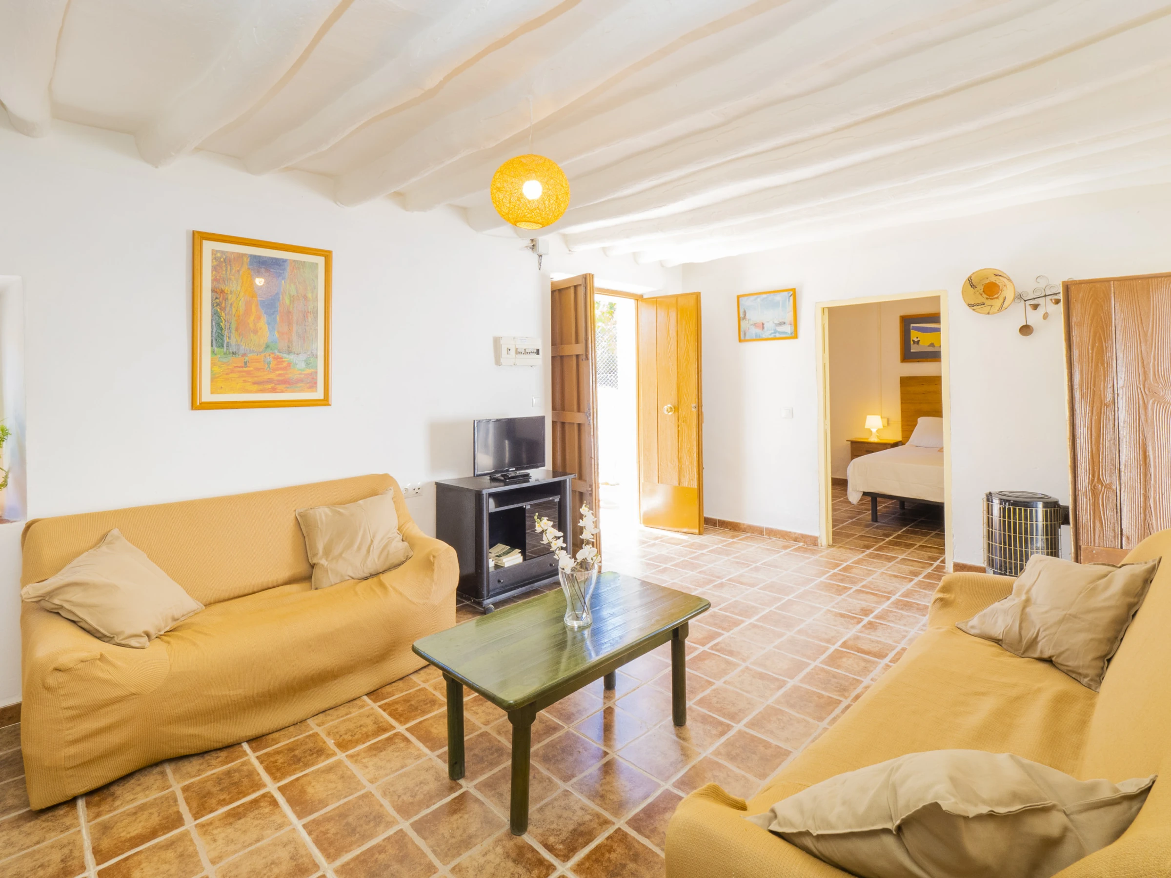 The house is distributed over two floors with a design that preserves the original spirit of the farmhouse. On the ground floor, you will find a bright living room that connects to an outdoor patio, ideal for fresh dinners and night-time chats. The American kitchen is equipped with the essentials for preparing your meals, including a ceramic hob, fridge, microwave, freezer, washing machine, kitchen utensils and coffee maker, next to a small dining table. In addition, this floor has a bedroom with a double bed, air conditioning and space to store luggage, and a bathroom with a shower tray.