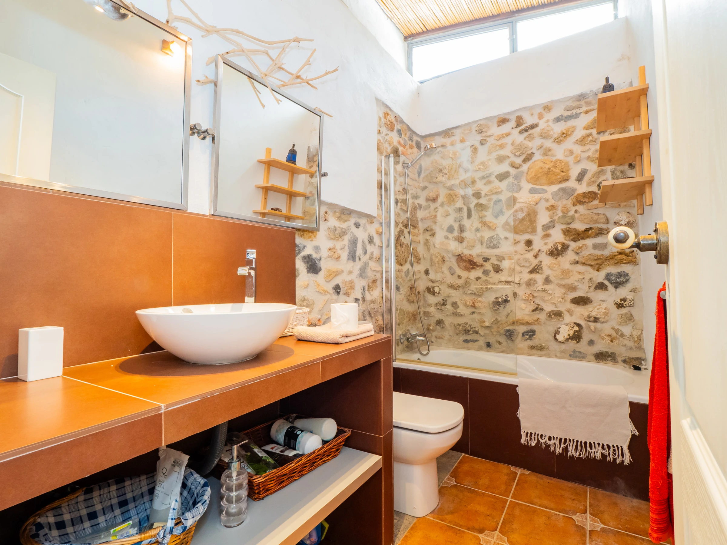 The house has two bedrooms: one with a spacious double bed and access to the outside, and another with a bunk bed and a single bed, both with comfortable space to store luggage. Additionally, it has a full bathroom with a bathtub, ideal for relaxing after a day exploring the area. 🛏️🛁