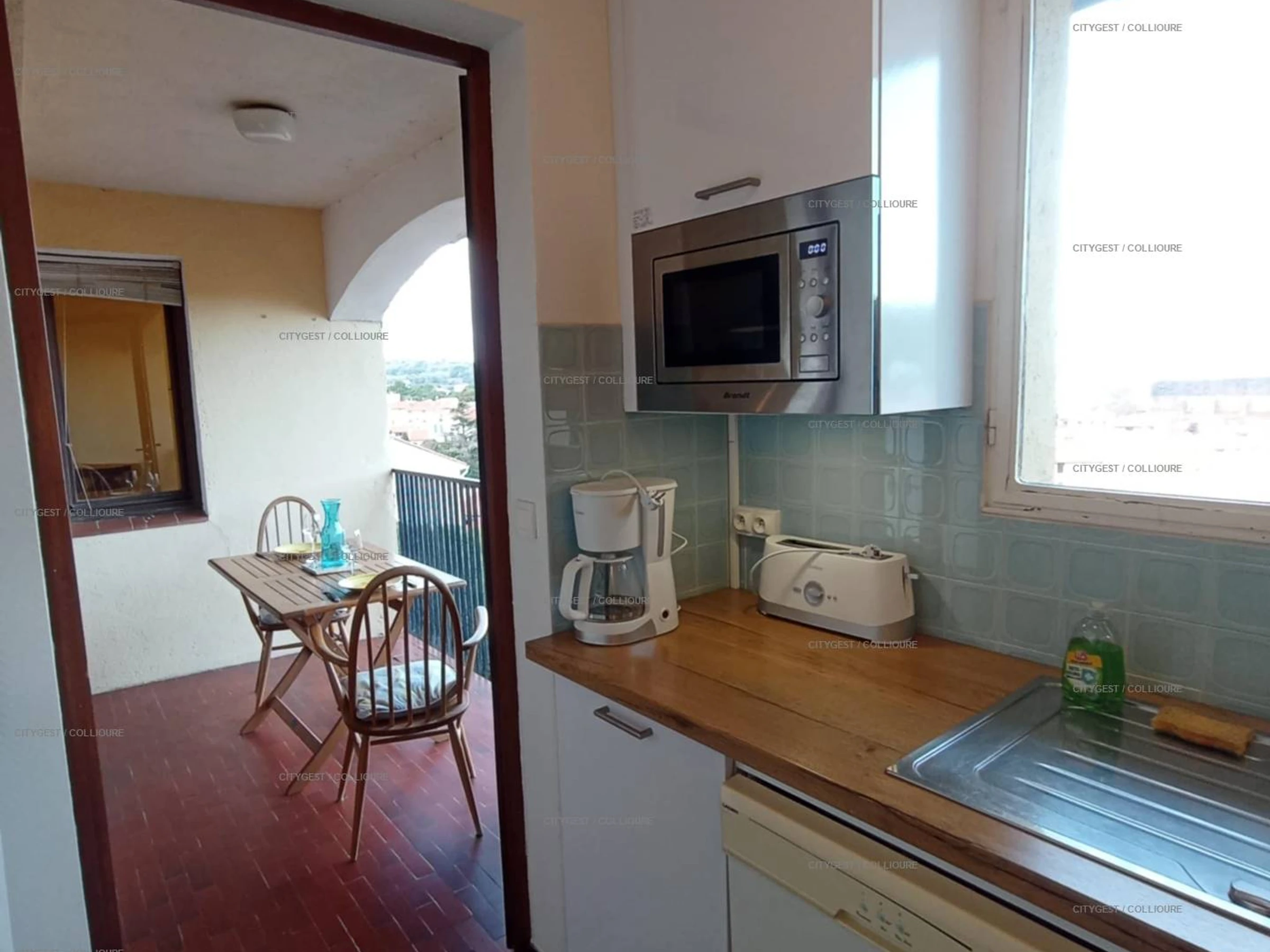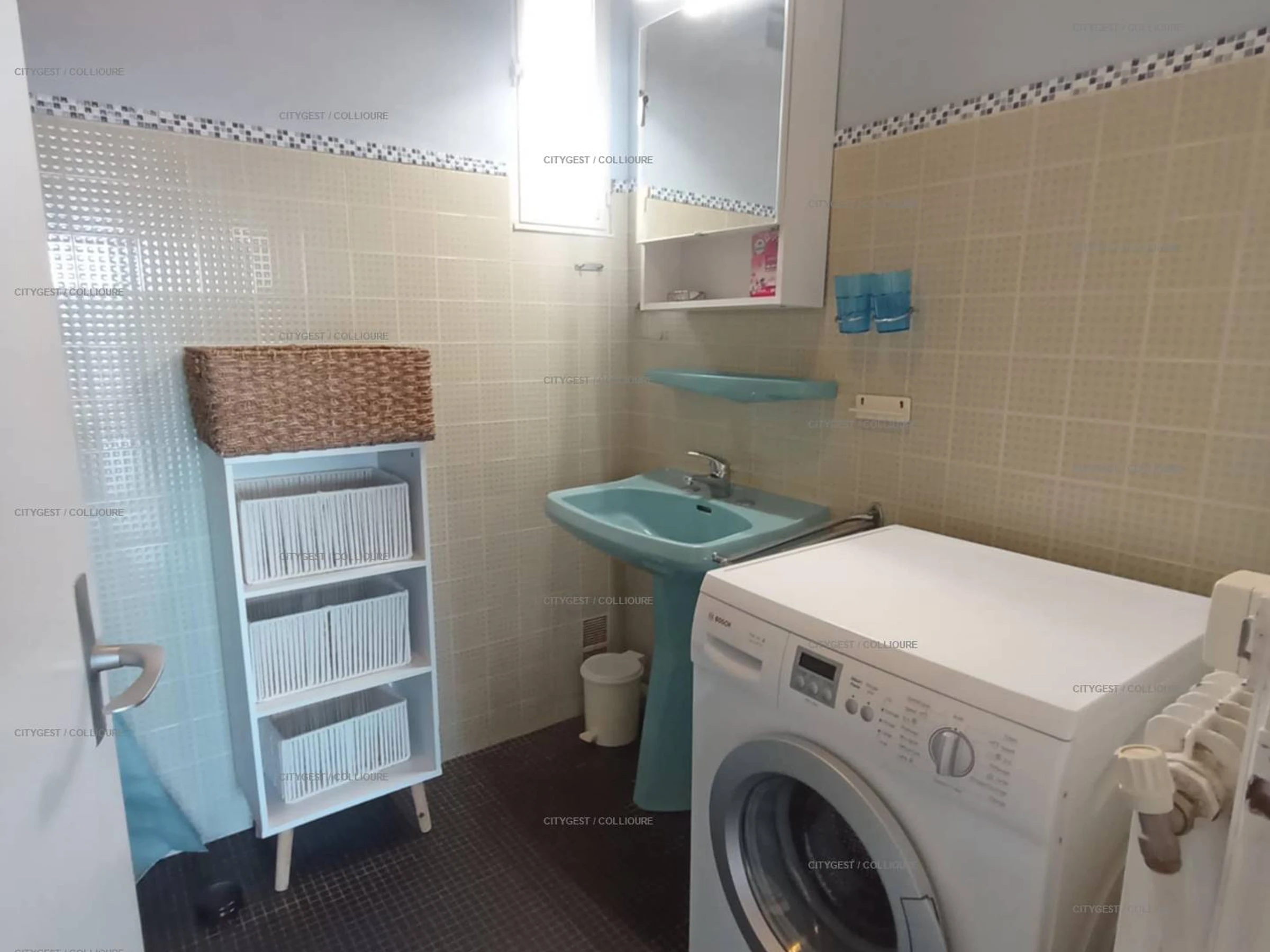 Large F3 type apartment equipped for 5 people, with a beautiful view of the bay of Collioure, located on the 3rd floor of a building at the top of the Val St. Elme residence composed of an entrance, living room with loggia, kitchen separate (microwave, oven, gas hob, dishwasher, washing machine), 1 bedroom with 140 cm bed, 1 bedroom with 2 90 cm beds, bathroom, separate toilet. Free non-nominative parking in the residence accessible only with a badge.