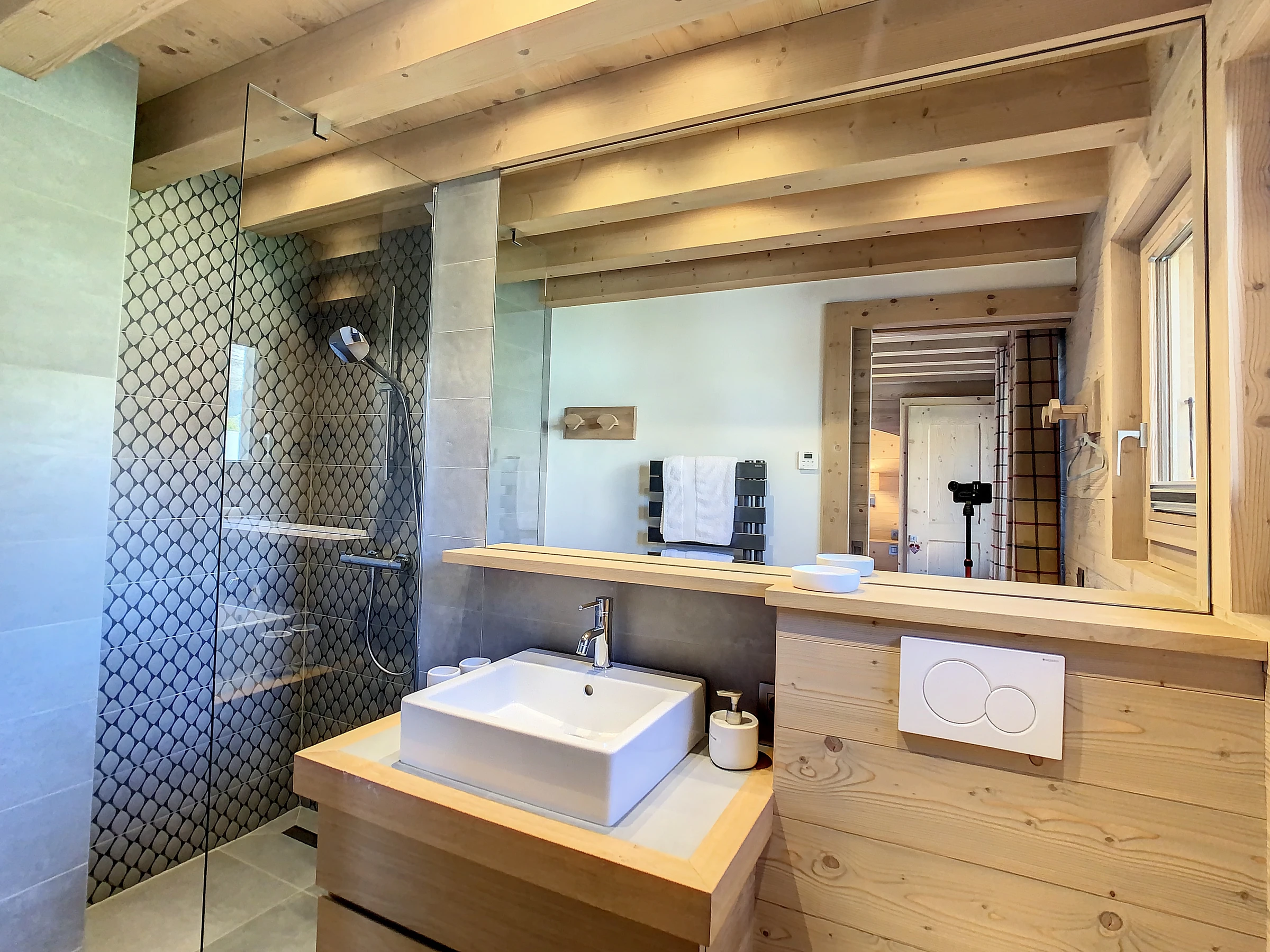 Located 3 km from the village center of Combloux, this brand new 4-room duplex apartment with a mezzanine is situated on the ground floor of a chalet with two apartments. It offers 130 m² of living space and comprises: an entrance hall with WC and washbasin; a bedroom with a queen-size bed (160 cm) and en-suite shower room with WC; a beautiful open-plan living/dining room and fully equipped kitchen opening onto a lovely terrace with breathtaking views of Mont Blanc. Upstairs, there is a bedroom with a queen-size bed (160 cm) and an en-suite bathroom with shower, bathtub, and WC; a second bedroom with two single beds (90 cm) and its own shower room with WC; and a mezzanine. The apartment boasts refined décor and exceptional modern amenities!