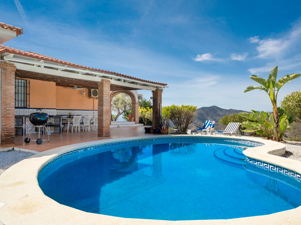 Sayalonga: Villa "Hallamos". Private: natural garden, swimming pool kidney shaped (9 x 6 m, depth 150 - 170 cm, seasonal availability: [hidden] - [hidden] In the house: washing machine. Steep, narrow motor access. Parking (for 3 cars). Shop 7 km. Please note: car recommended. The owner does not accept any youth groups. Loading and unloading of baggage is possible at the holiday house.