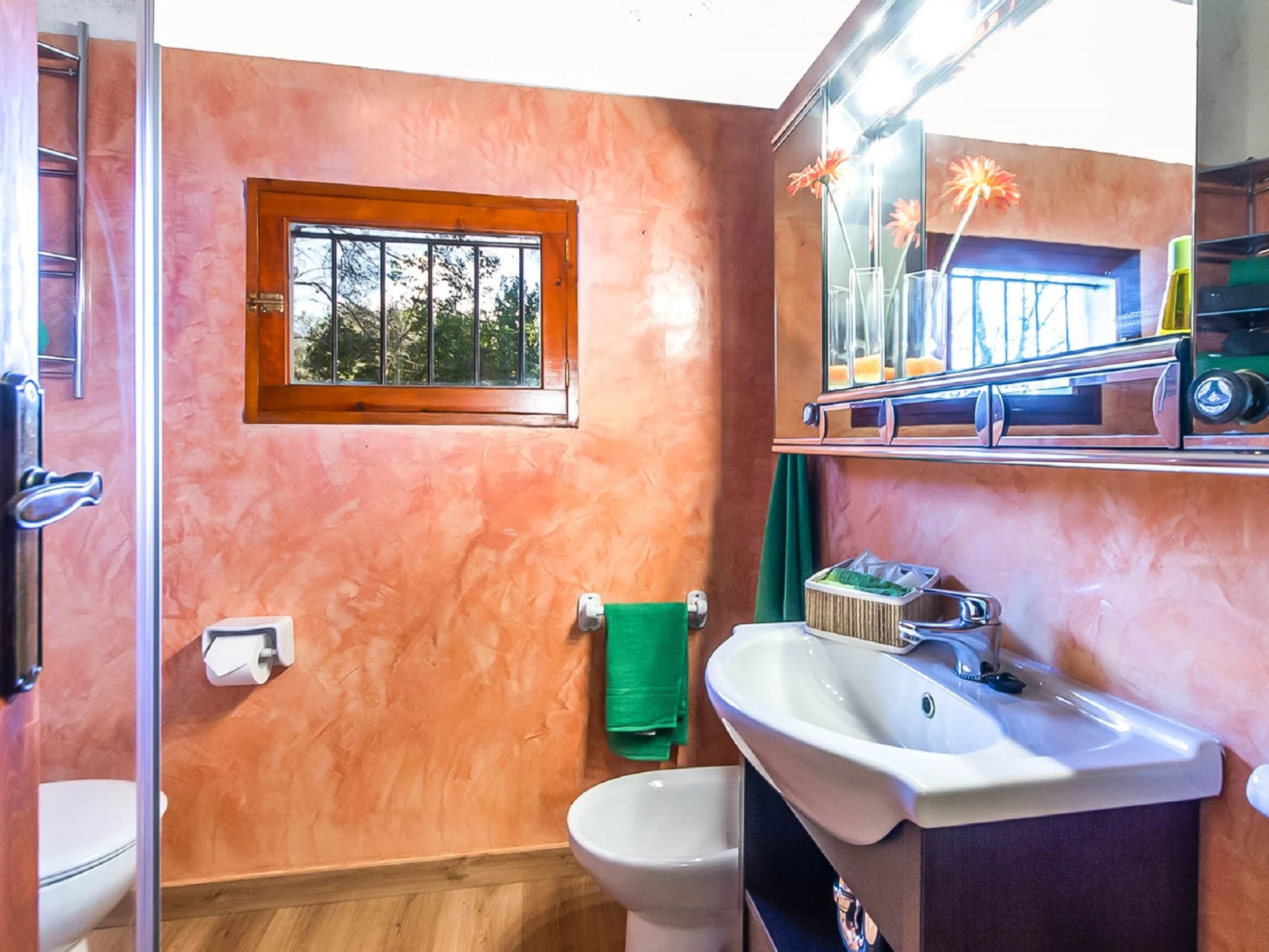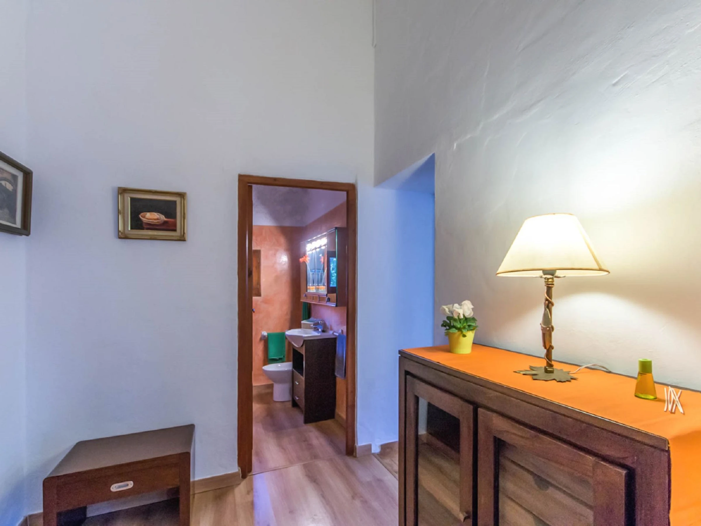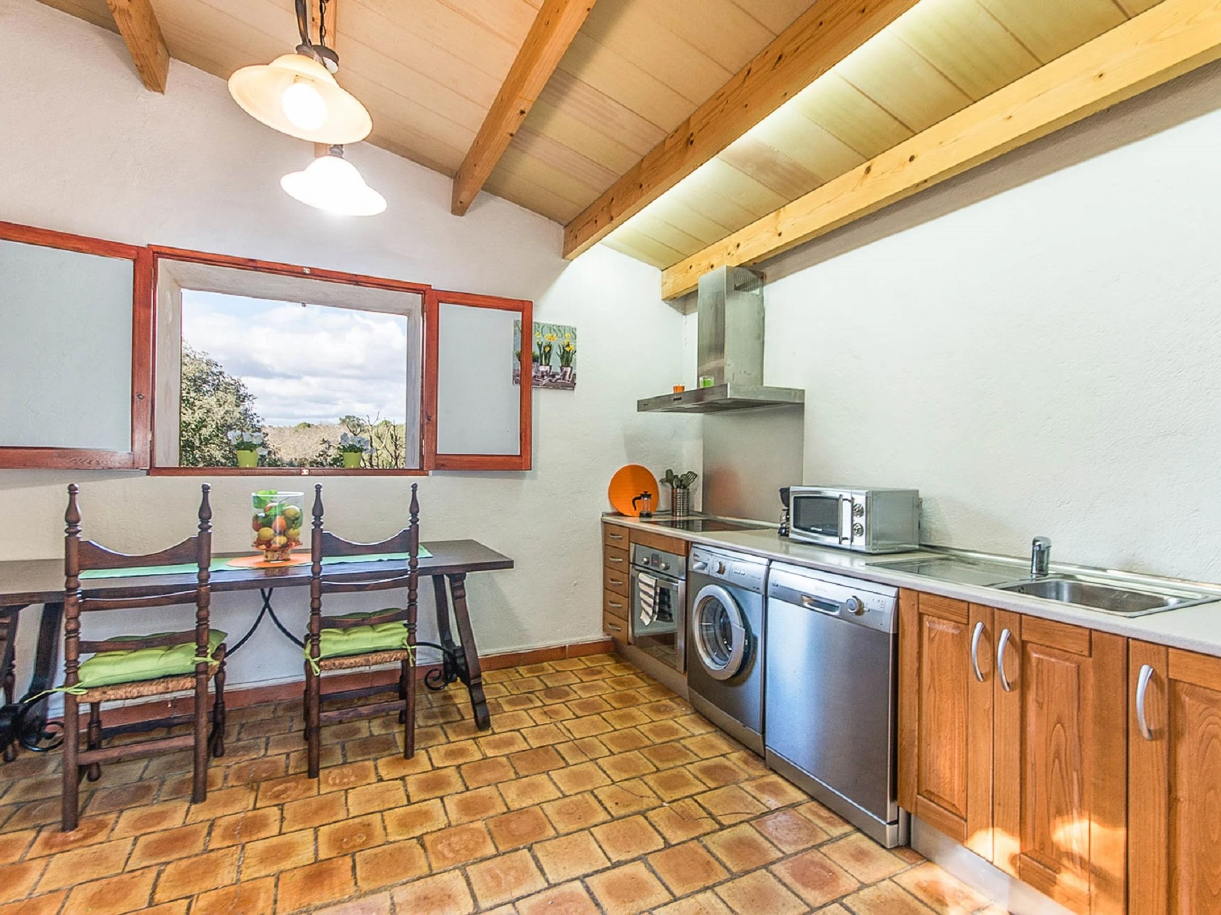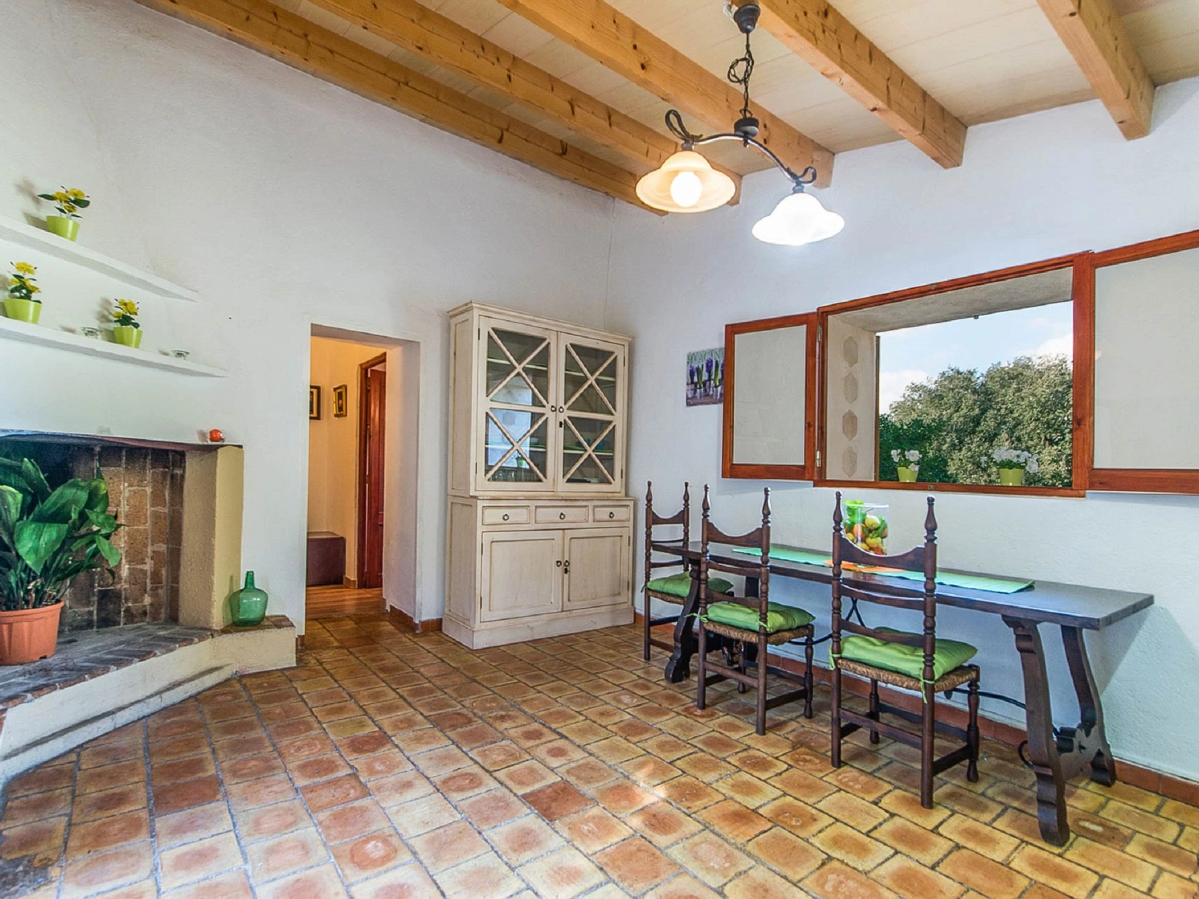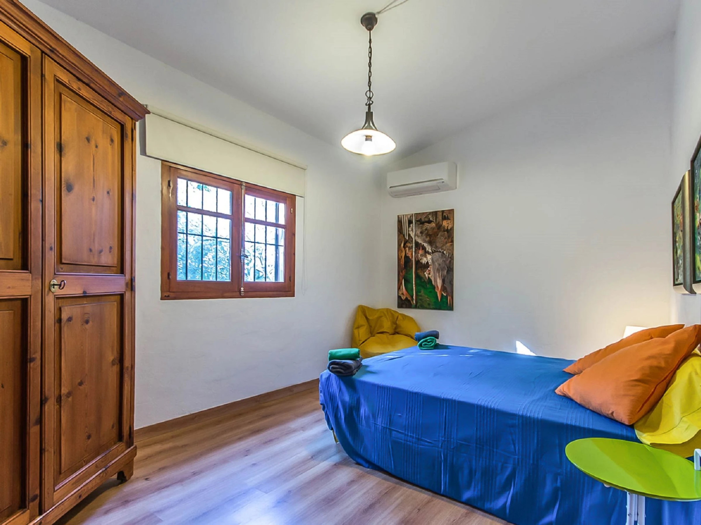 Costitx: Beautiful, cosy, rustic farm estate "Es Gorg", surrounded by trees and fields. Outside the resort Costitx, in a quiet, sunny position, 27 km from the sea, 27 km from the beach, in the countryside. Private: natural state property (fenced), flowers and trees, lawn for sunbathing, beautiful garden to relax, swimming pool angular (4 x 8 m, depth 100 - 200 cm, seasonal availability: [hidden] - [hidden] with salt water. Outdoor shower, patio, pergola, garden furniture, barbecue. In the house: internet access, WiFi, central heating system, air conditioning, washing machine. Parking at the house on the premises. Shop 2.5 km, grocery 2.5 km, supermarket 8 km, restaurant 8 km, bar 2.5 km, bakery 2.5 km, café 2.5 km, internet café 8 km, bicycle rental 9 km, pub garden 2.5 km, sandy beach "Ca'n Picafort" 27 km. Sports harbour 35 km, marina 35 km, golf course (18 hole) 38 km. Nearby attractions: Finca Son Bordils (Vineyards) 7 km, Mallorca Planetarium 3 km, Museo de Ciencia Natural 2.3 km. Please note: car recommended. Suitable for seniors baby equipment on request (included). Object suitable for 2 adults. Loading and unloading of baggage is possible at the holiday house. Airfield 30 km from the property.
