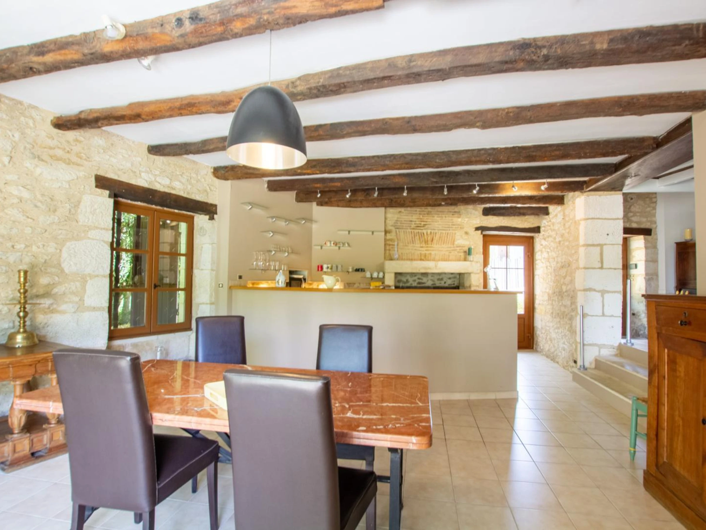 The countryside on the edge of town! That's the promise of this charming, tastefully renovated stone cottage. The house is on several levels: from the entrance hall, you'll find the living room (via three steps) and the sleeping area on the same level. Three more steps lead down to the kitchen/dining room. The living room is fully equipped with a corner sofa, a television, and a wood-burning stove. Two of the bedrooms have a double bed (140x190cm). There is also a bathroom with a bathtub, shower, and double vanity, as well as a separate toilet. Finally, upstairs, you'll find the third bedroom, with a sloping ceiling, and two single beds (90x190cm). From the fully equipped kitchen and dining area, you can access the terrace overlooking the garden of over 3000m² and the private, heated, 11x3m, 1.5m deep saltwater swimming pool, open from June to the end of September and secured by a roller shutter. In the heart of the Isle Valley, the gîte is ideally located for exploring the entire department. You'll be equidistant (45 minutes) from the Bergerac region (vineyards, fortified towns), the Vézère Valley (caves, troglodytic sites, chasm), and the lovely walks of the Périgord Vert, and just an hour from Sarlat and the sites of the Dordogne Valley (castles, gardens). Don't miss Brantôme, only 30 minutes away!