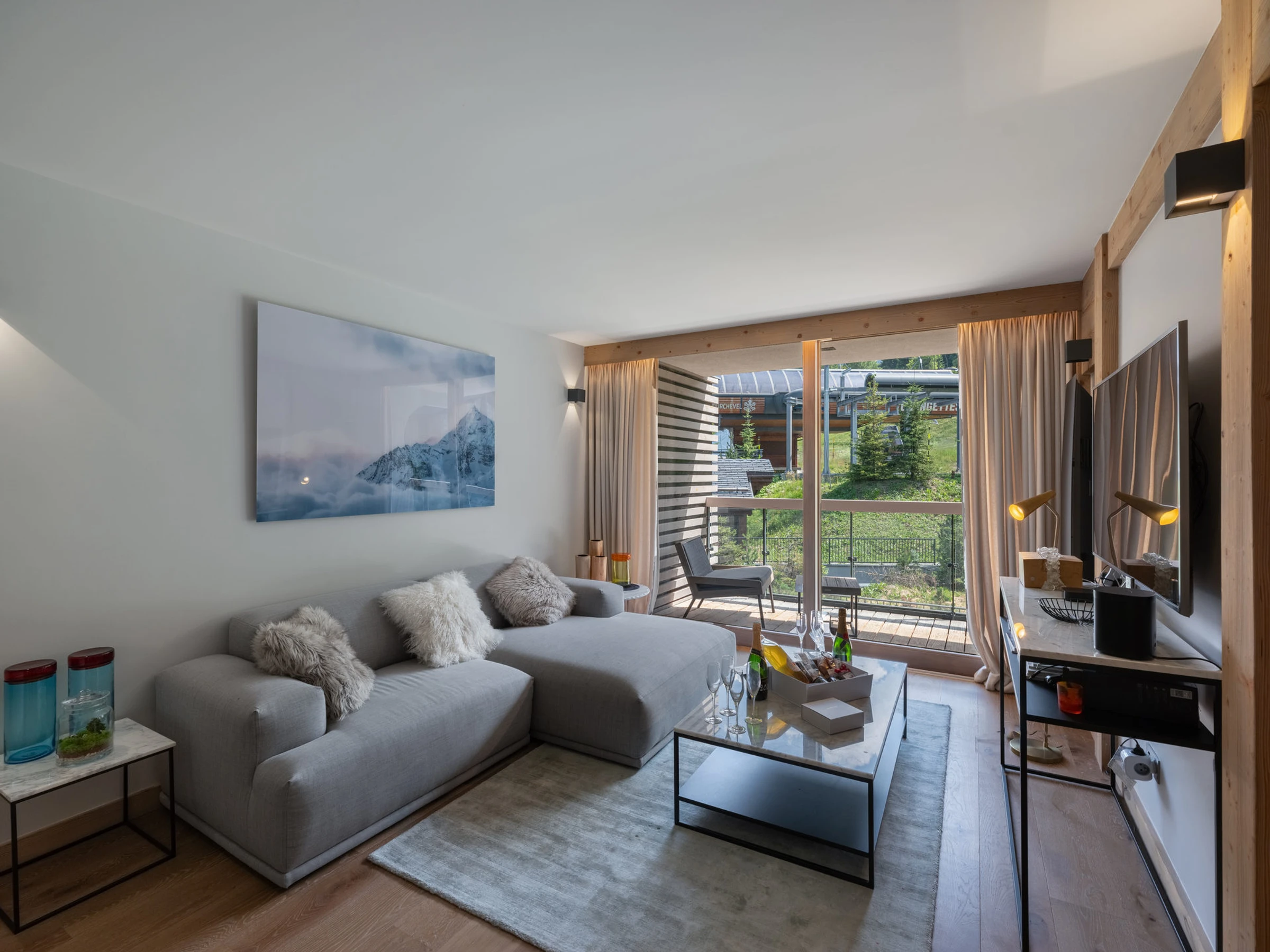 Located in the new Phoenix residence, flat Phoenix 205 is close to the ski lifts and shops. In the heart of Courchevel Village, this modern 133m² flat can accommodate 6 adults and 4 children.