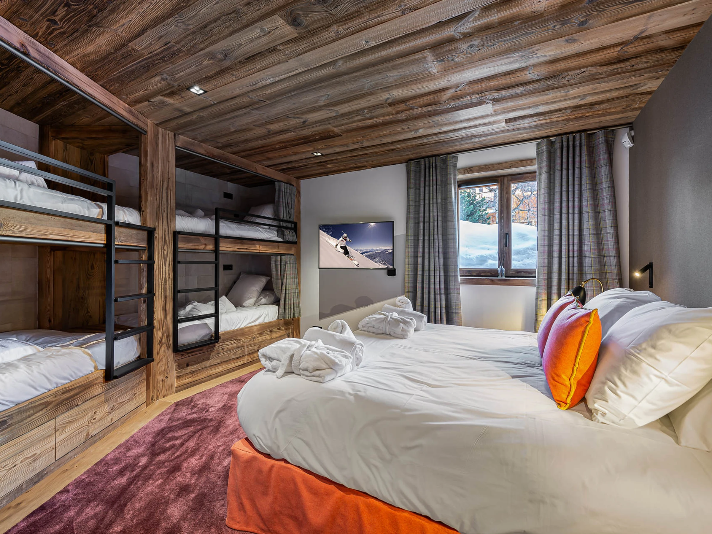 NEW BRANDED chalet with a modern ambiance, the chalet CARCENTINA welcomes you on [hidden], nearby the center of Courchevel Village, very close to the ski slopes. This chalet can accomodate up to 10 adults and 4 children.