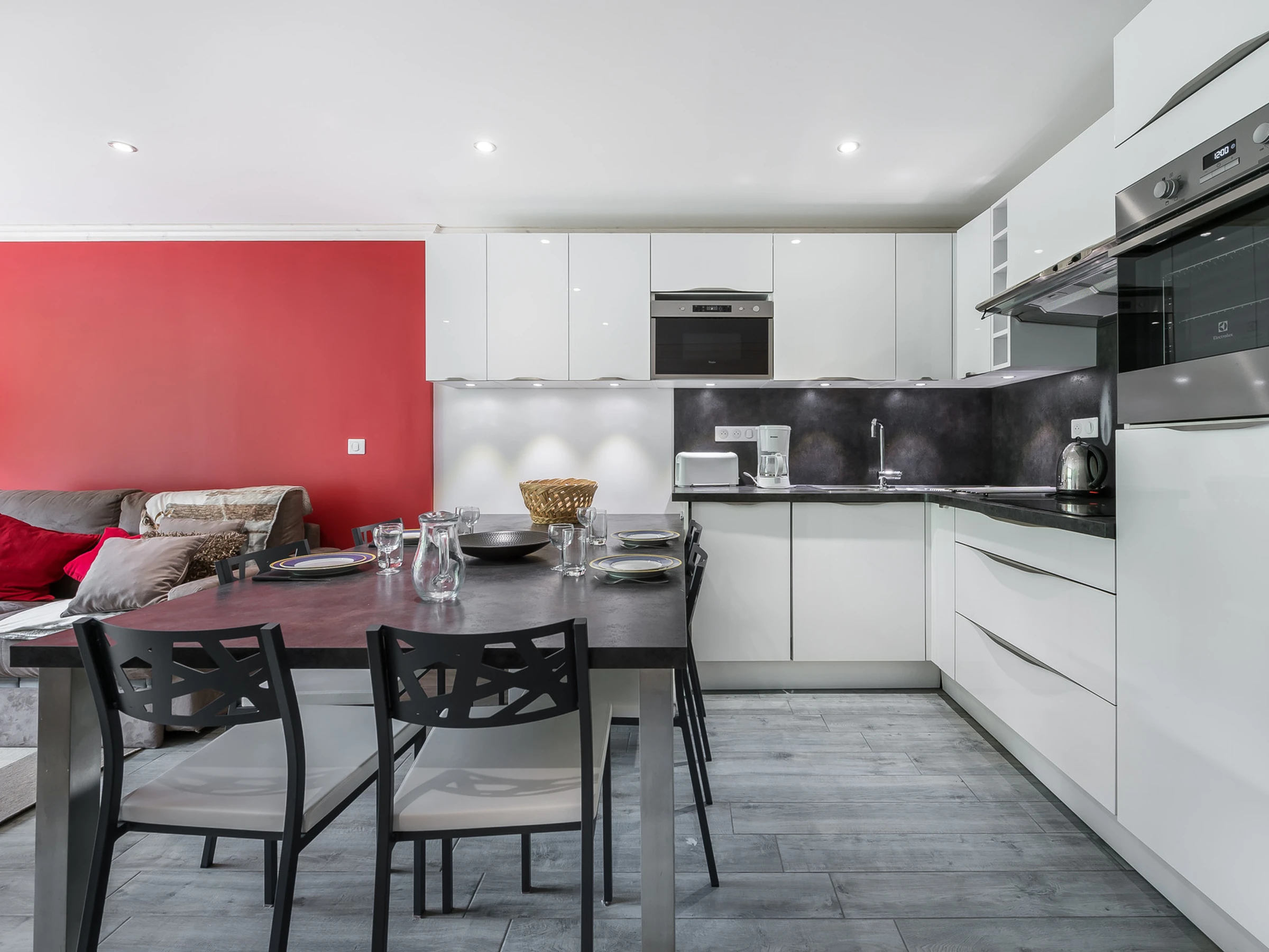 Apartment 405 is a recently renovated 2-bedroom apartment with a surface area of 57m². Equipped for 6/7 people it is located on the 4th floor of the Ourse Bleue residence. From its south-facing balcony it offers a beautiful view over the ski area and the summits.