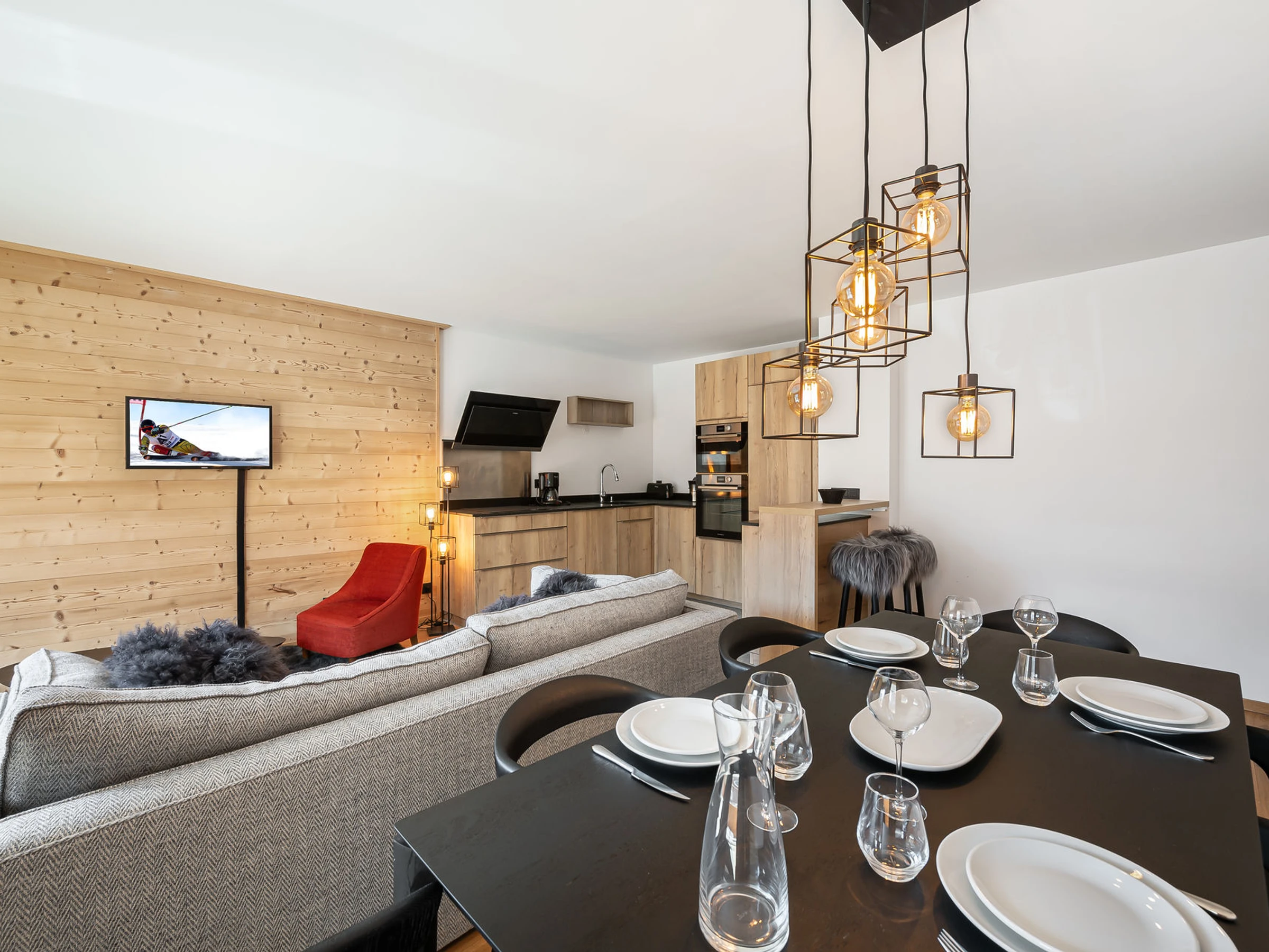 - Fully equipped open kitchen : oven, microwave oven, fridge-freezer, kettle, toaster, nespresso and filter coffee makers, dishwasher, hood