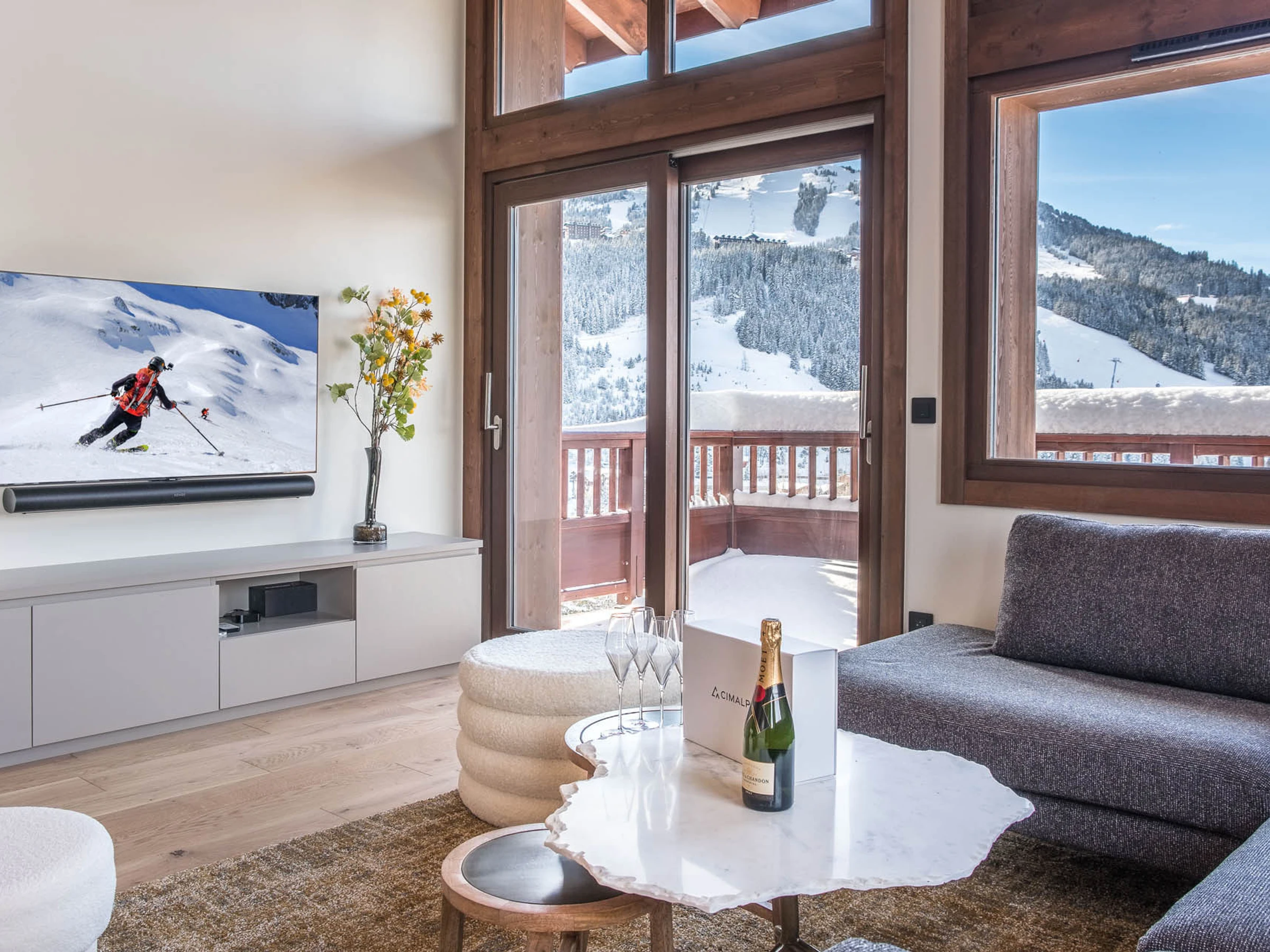 Apartment ARCELIN 4 is an outstanding 105m² duplex on the 1st floor of a 4-unit chalet, located in the "Glaciers" private estate at the entrance of Courchevel Moriond. Made up of 2 levels, it can accommodate 4 adults and 4 children with its 3 suites.