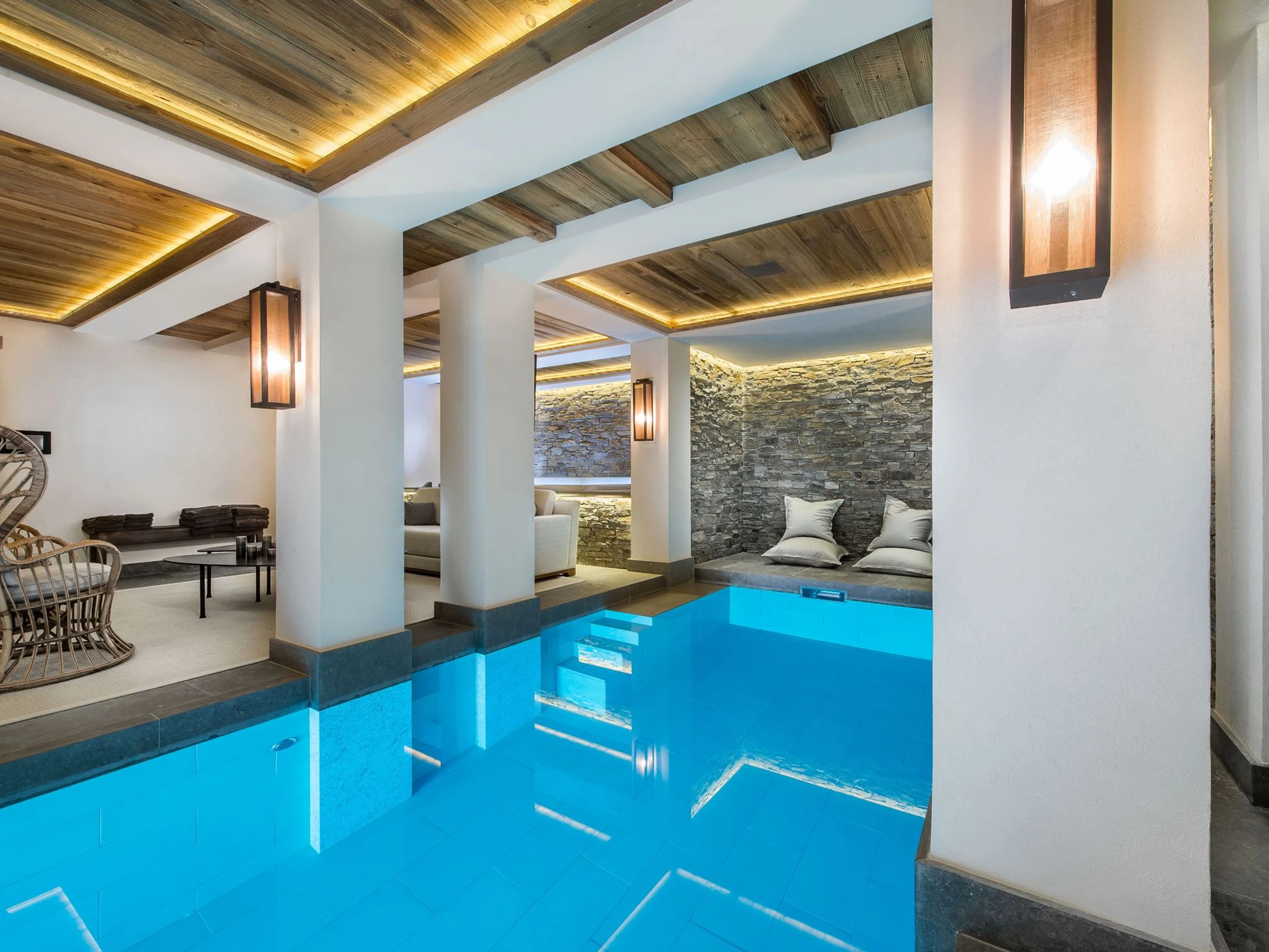 The Cryst'Aile chalet is located in the centre of the renowned Chenus neighborhood. Its' 850m2 offers the opportunity to host up 12 people. Jacuzzi, hammam, pool, half-board and living room with a berathtaking view on the tarentaise uplands.