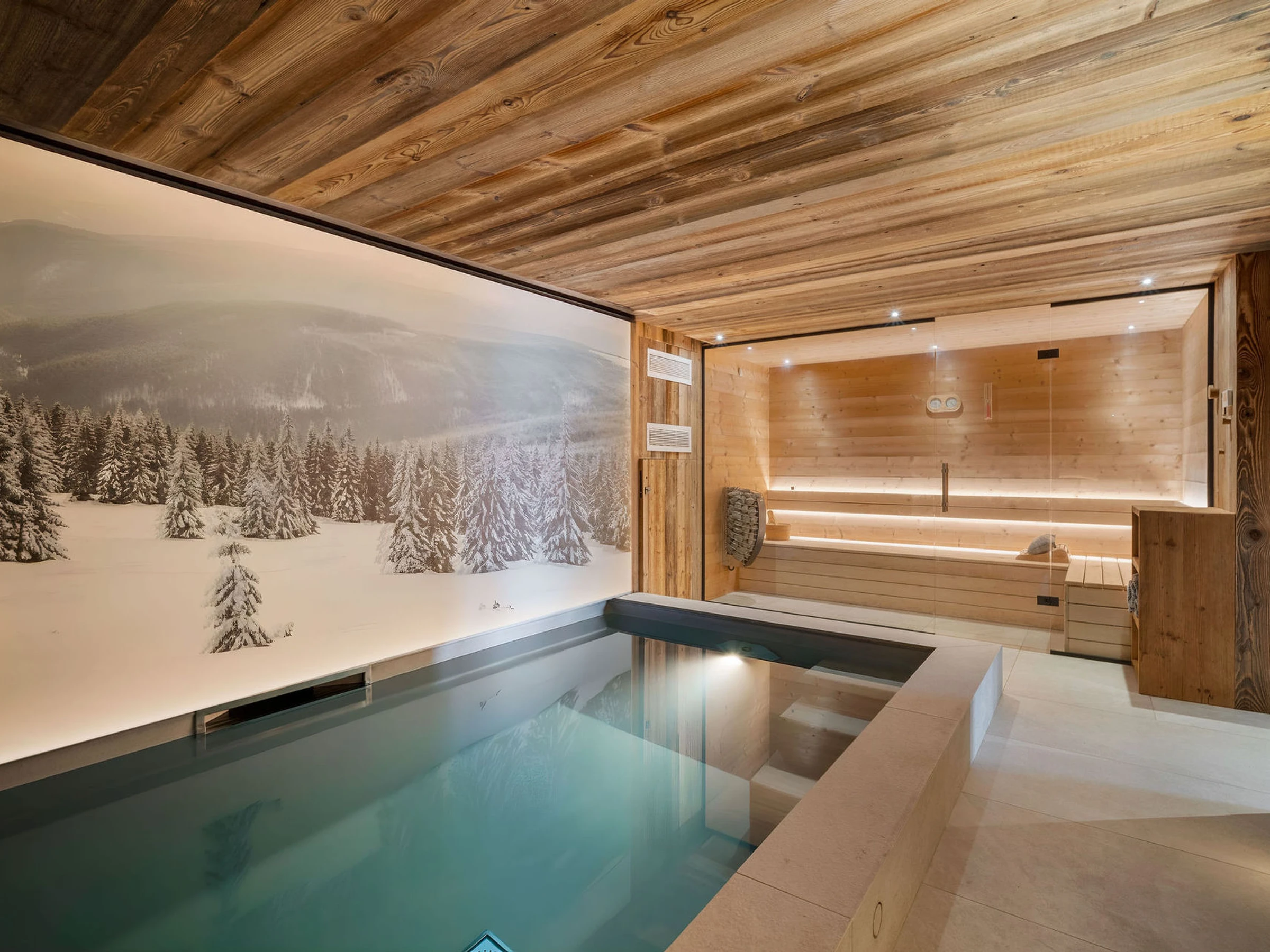 Wellness area with indoor swimming pool and sauna
