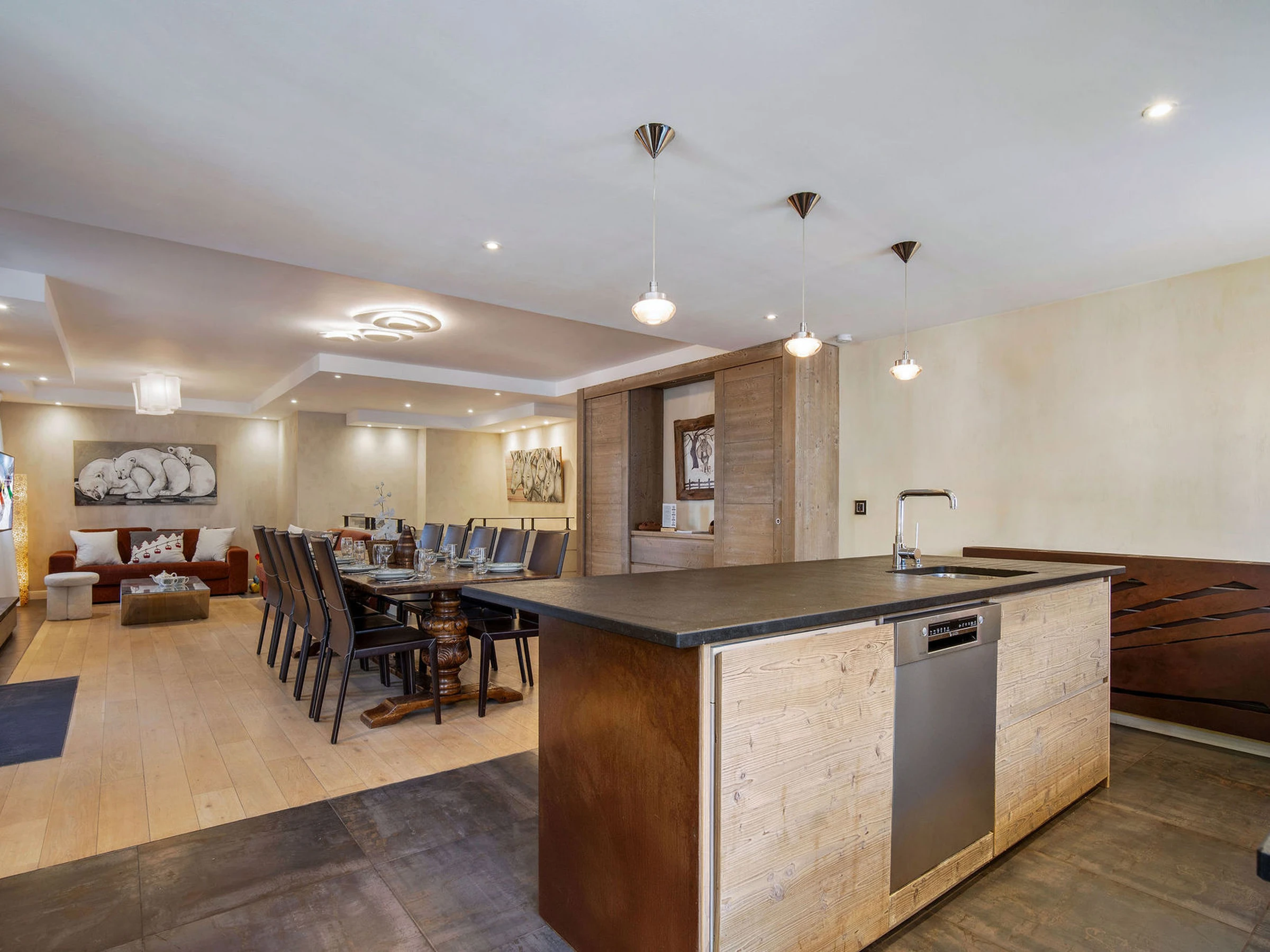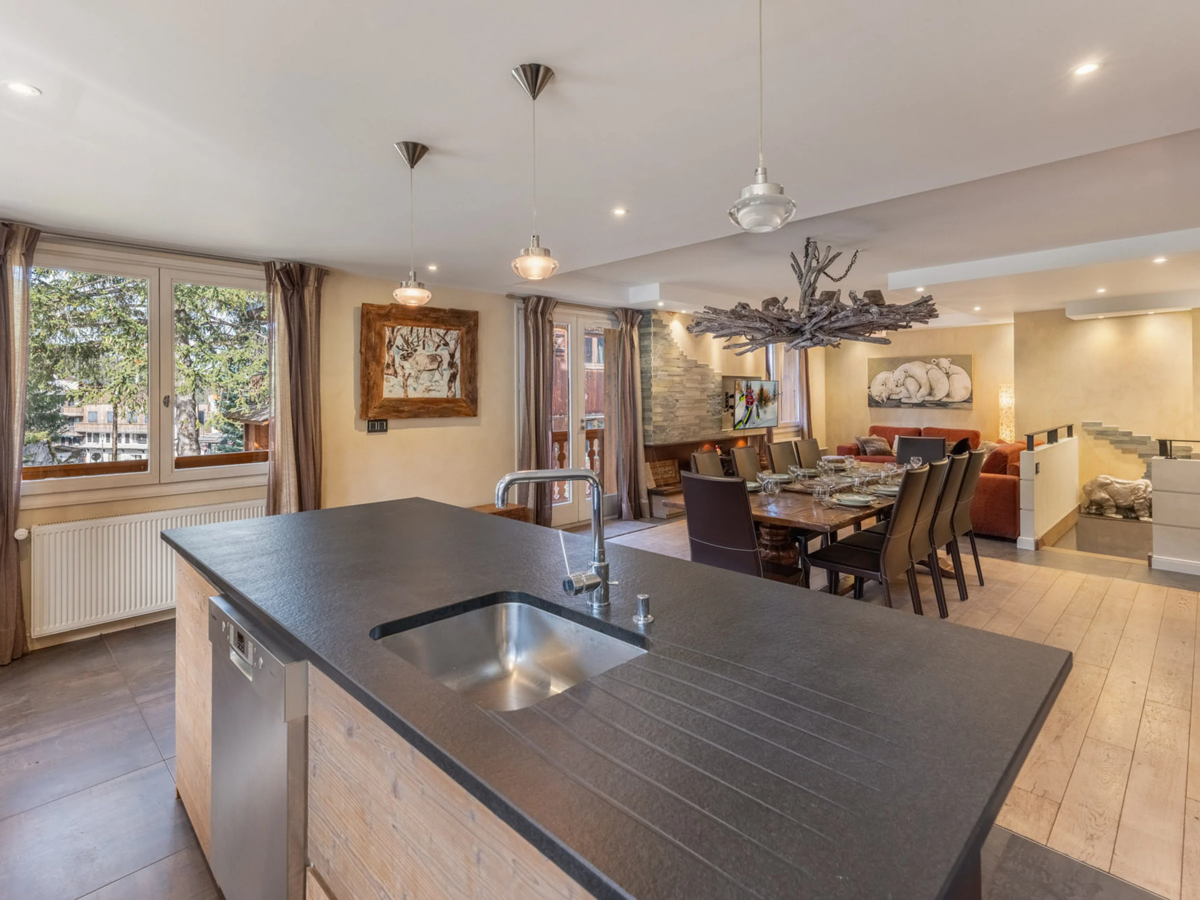 Appartement de standing de 120m2 pour 8 personnes. A front de neige et en plein centre de Courchevel. Comfort chic et Label Montagne de Rêve pour cette propriété à moins de 200m2 des pistes et remontées mécaniques. Services à la carte.