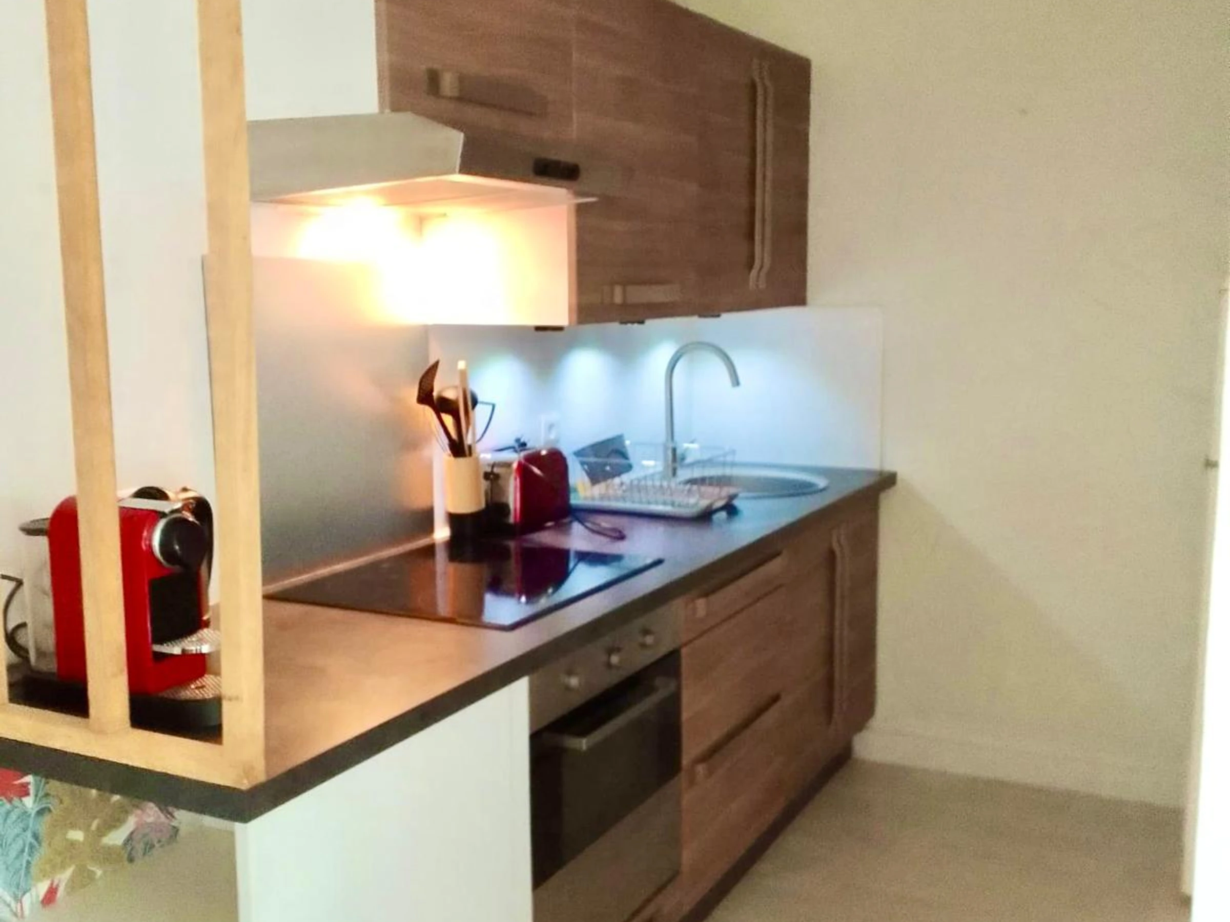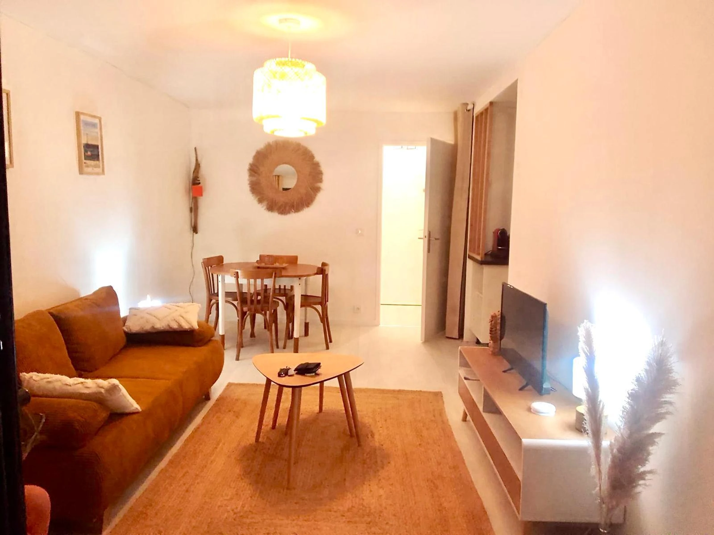 Appartement situé dans une station balnéaire à 500m de la mer et des commerces dans une résidence sécurisée, en rez-de-chaussée avec jardin privatif exposé sud-ouest comprenant une entrée, séjour avec canapé convertible, télévision, cuisine ouverte équipée avec four, micro-onde, plaque vitro, grille pain, bouilloire, une chambre avec un lit double de 140x190 et dressing, une salle de bains avec machine à laver, w-c indépendant.