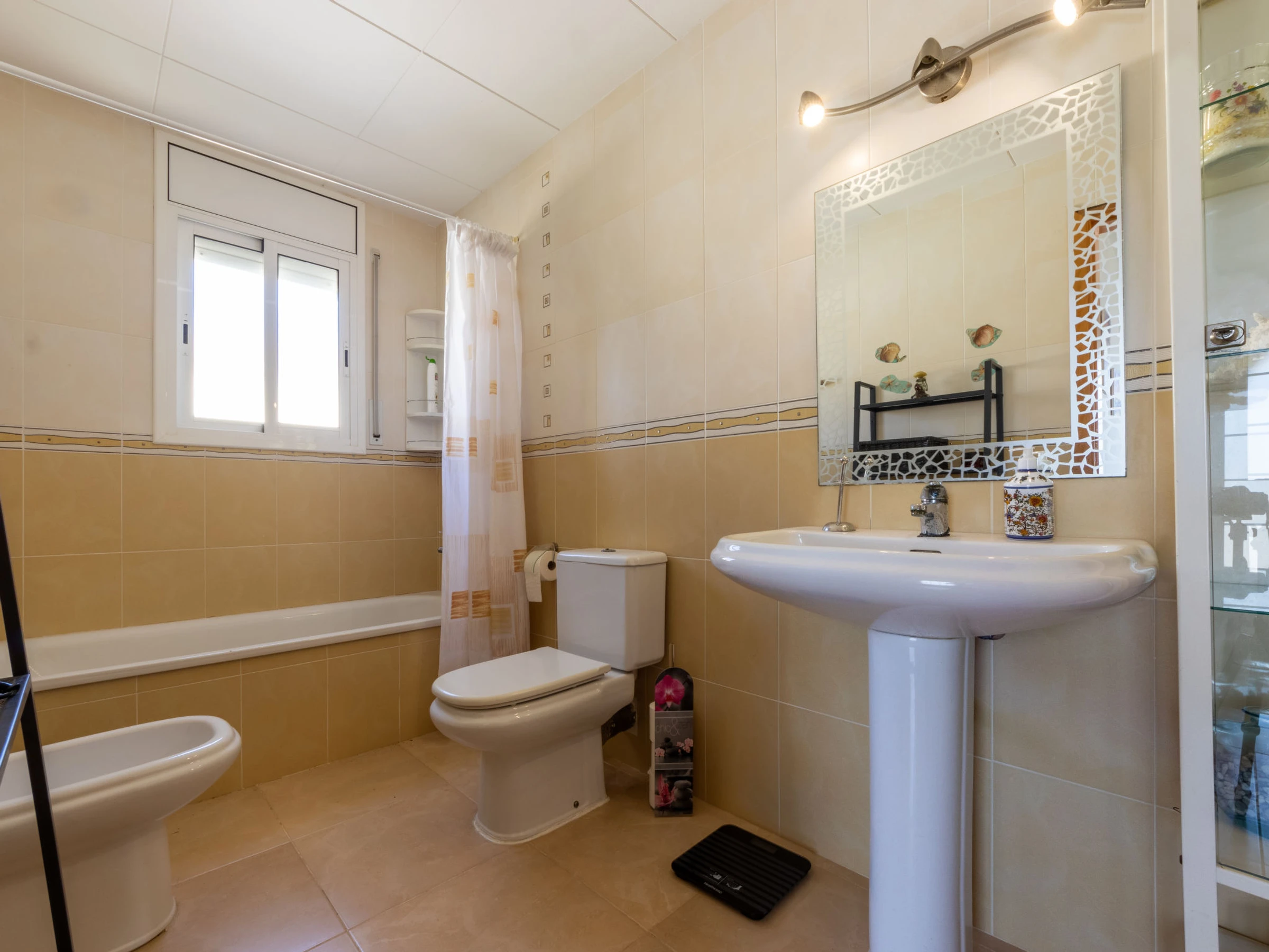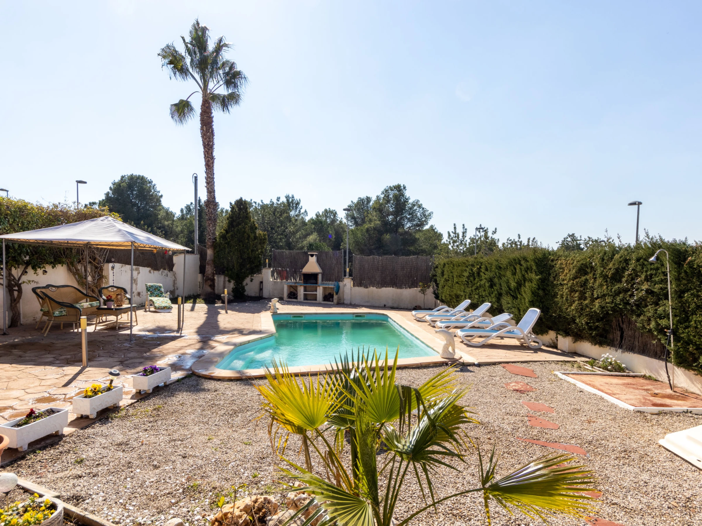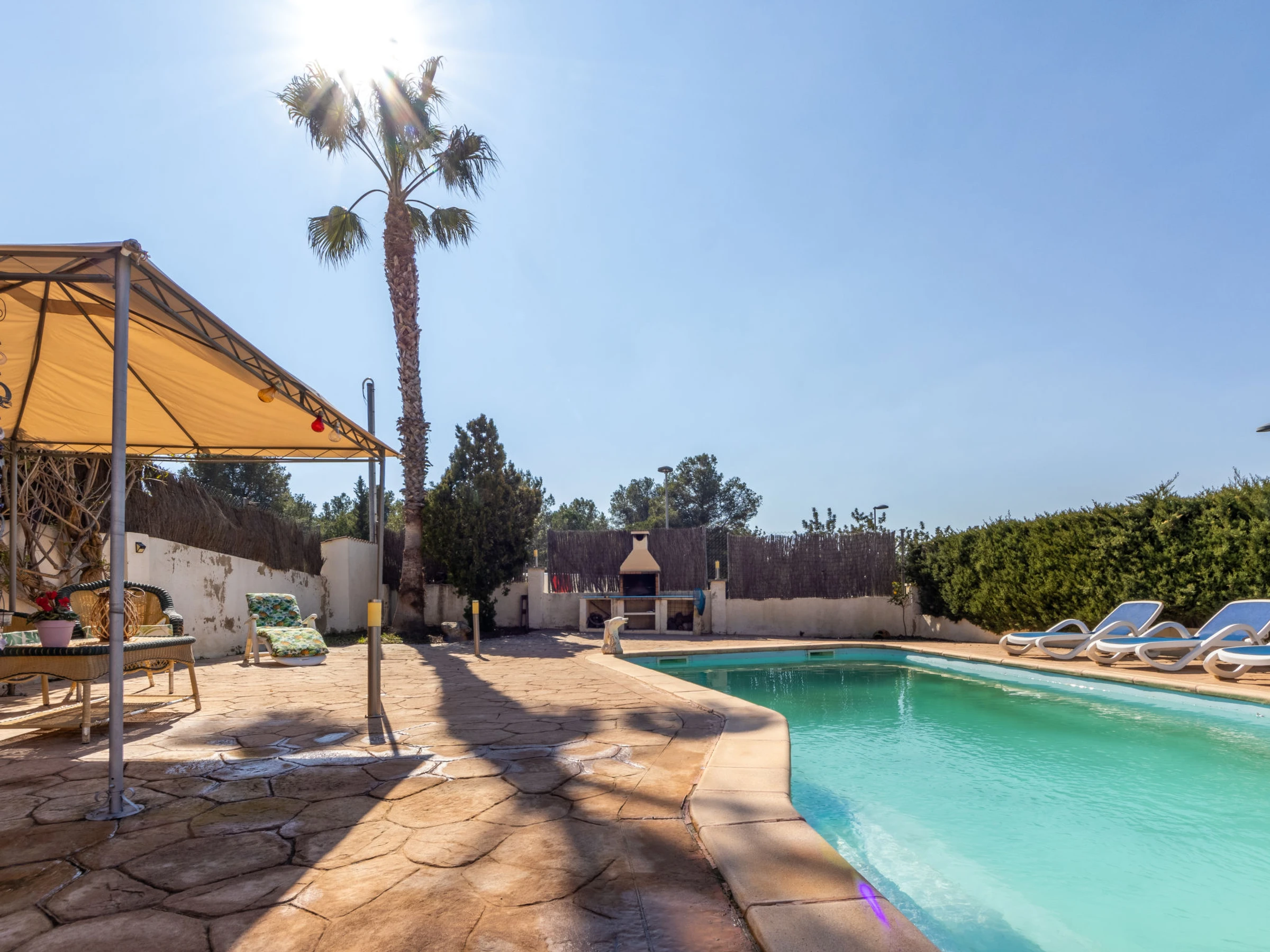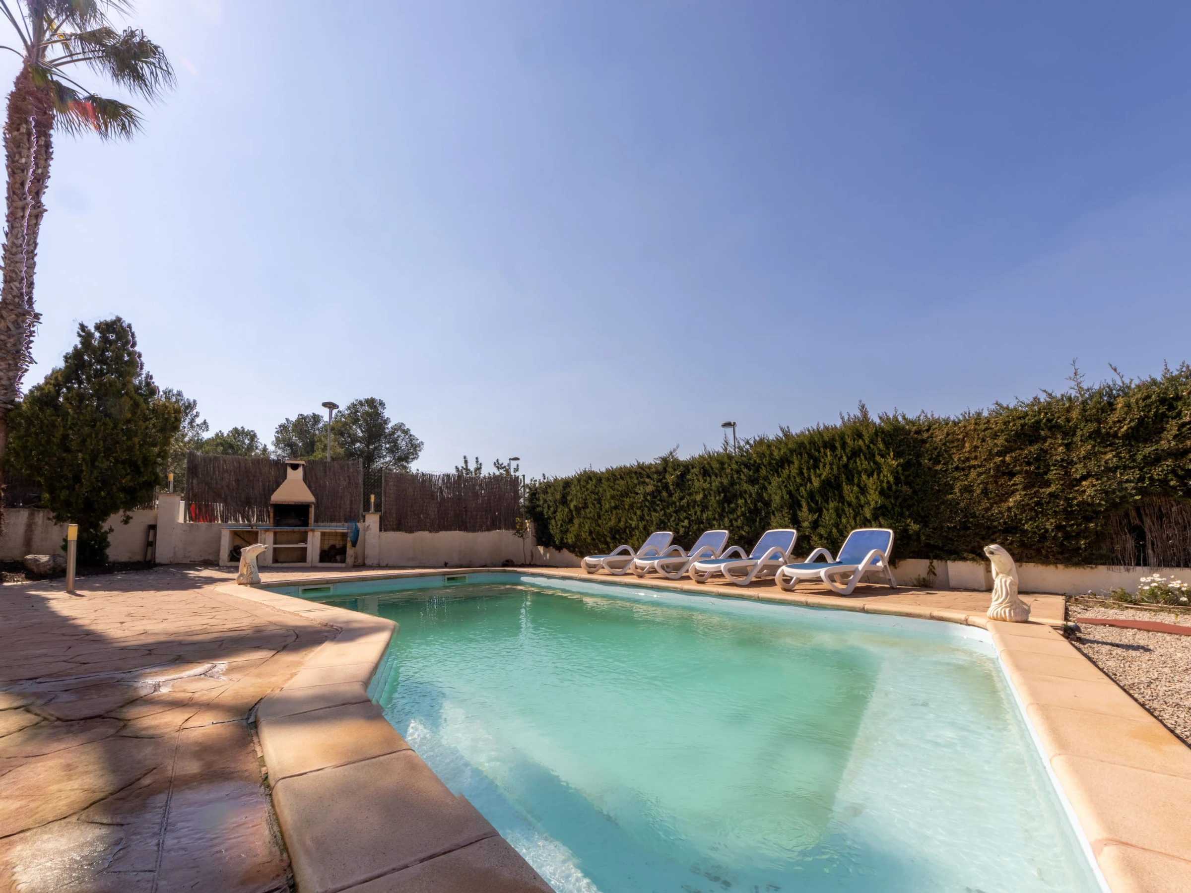 La Coma 3 km from Creixell Playa/Beach: Single-family house "La Coma", 2 storeys. Outside the resort Creixell, in a quiet, sunny position, 3 km from the sea, 3 km from the beach. Private: garden, swimming pool angular (7 x 4 m, depth 110 - 170 cm, seasonal availability: [hidden] - [hidden] Outdoor shower, terrace, garden furniture, barbecue, parking at the house on the premises. Shop 1 km, grocery 1 km, supermarket 3 km, restaurant 1 km, bar 1 km, bakery 1 km. Sports harbour 7 km, marina 7 km, golf course 16 km, riding stable 8 km. Nearby attractions: Port Aventura 35 km, Tarragona 20 km. Object suitable for 3 adults + 3 children. The owner does not accept any youth groups. Neighbourhood highly sensitive to noise. Quietness and good behaviour expected.