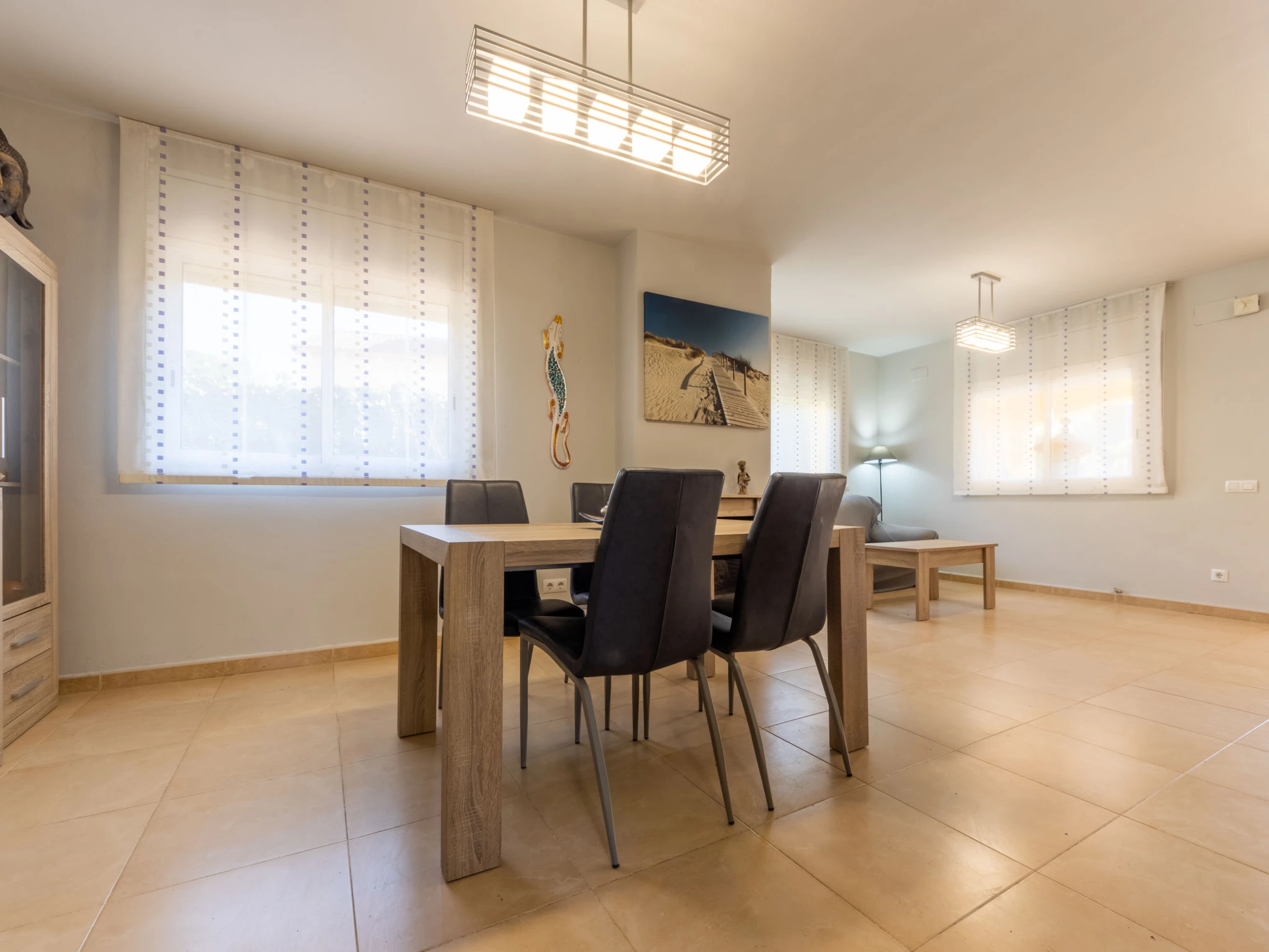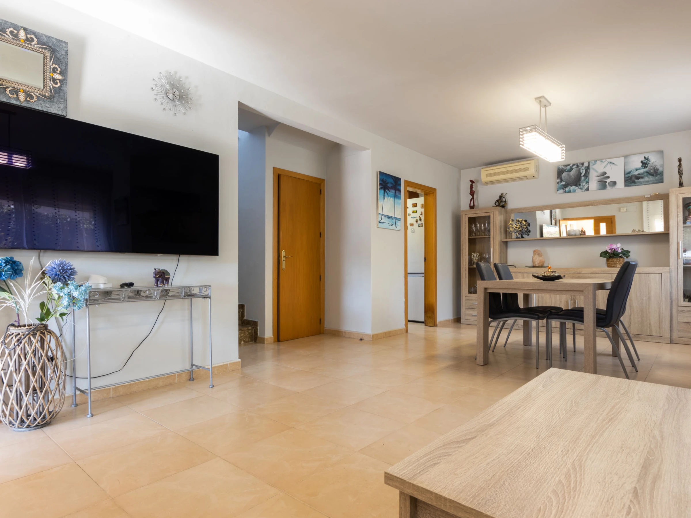 "La Coma", 4-room house 102 m2. Object suitable for 3 adults + 3 children. Practical and cosy furnishings: living/dining room with TV and digital TV (flat screen), air conditioning. Exit to the patio, to the swimming pool. Kitchen (oven, dishwasher, 3 ceramic glass hob hotplates, toaster, kettle, microwave, electric coffee machine). Sep. WC. No heating option. Upper floor: 1 room with 1 french bed (150 cm, length 190 cm), bath/WC and TV (flat screen). Exit to the terrace. 1 room with 1 bed (90 cm, length 190 cm), 1 x 1 bunk beds (135 cm, length 190 cm). Exit to the terrace. 1 room with 1 bed (90 cm, length 190 cm). Bath/WC. Terrace, patio. Barbecue, deck chairs (6). View of the mountains and the swimming pool. Facilities: washing machine, iron, children's high chair, baby cot for up to 3 year olds, hair dryer. Internet (WiFi, free). Reserved parking. Please note: suitable for families. Non-smoking house. TV only ES. The pool mentioned in the description is for private use. [hidden]
