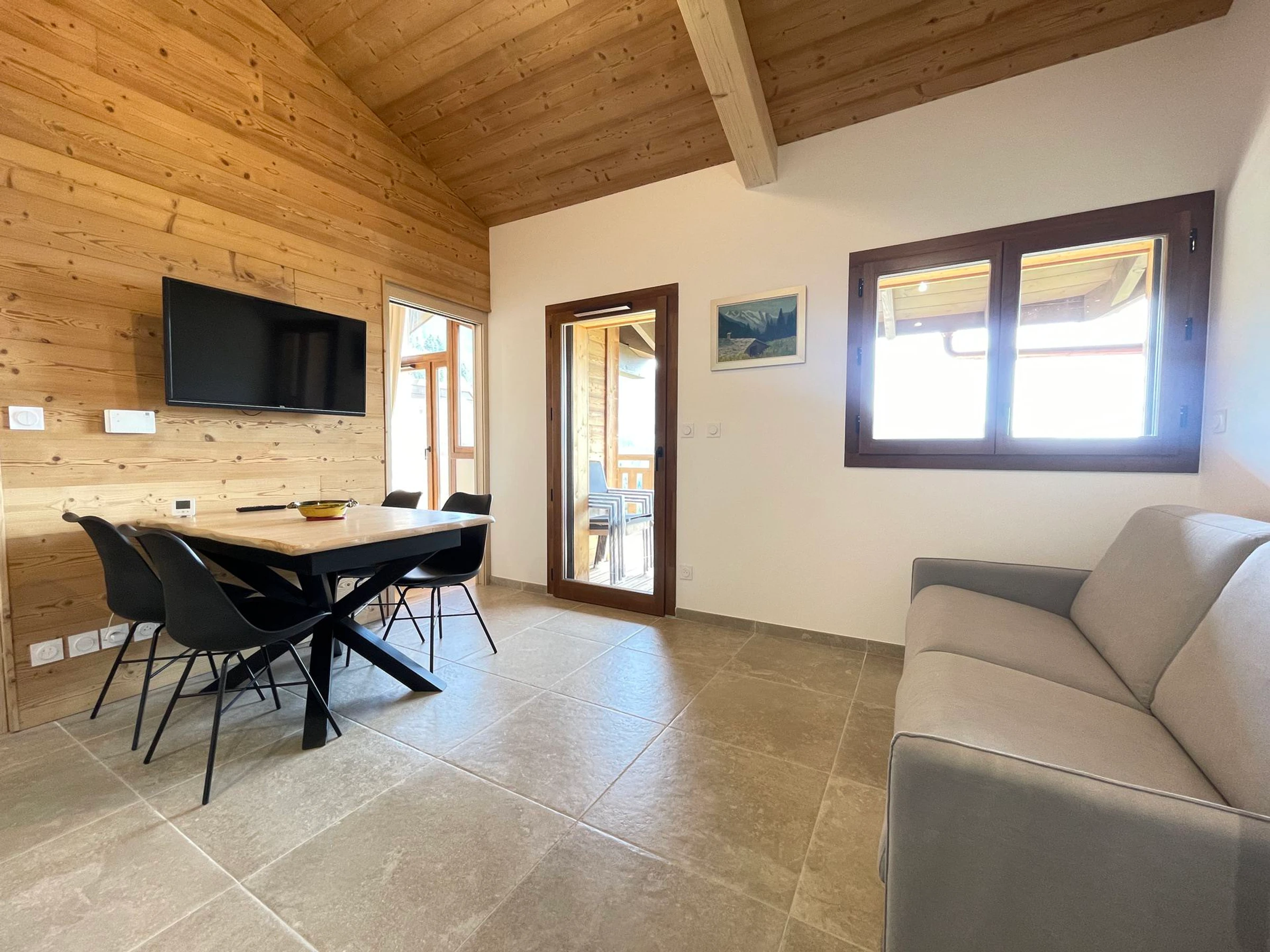 This beautiful new apartment of approximately 35 sqm is located near the Place du Cernix. It has a furnished south-facing terrace, ideal for enjoying outdoor lunches. It is designed to accommodate four people, ideally 2 adults and 2 children. Located on the 3rd floor, the apartment offers an unobstructed view of the Aravis mountain range (residence with elevator). The Canopée residence, made up of 2 buildings, is located approximately 500m walk from local shops and the Cernix chairlift. Holidaymakers will also appreciate the free shuttle located just 100 meters away, facilitating access to the slopes.