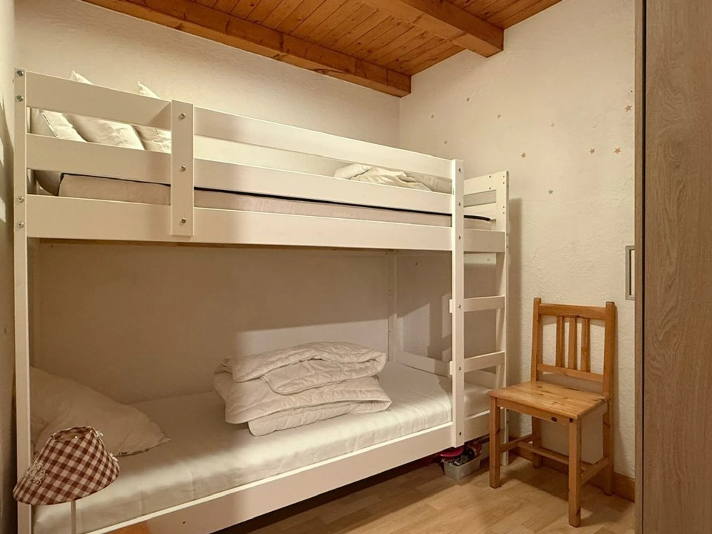 Sleeping alcove with bunk beds (2 single beds 90x190 cm) (2 pillows + duvet 140x200 cm)