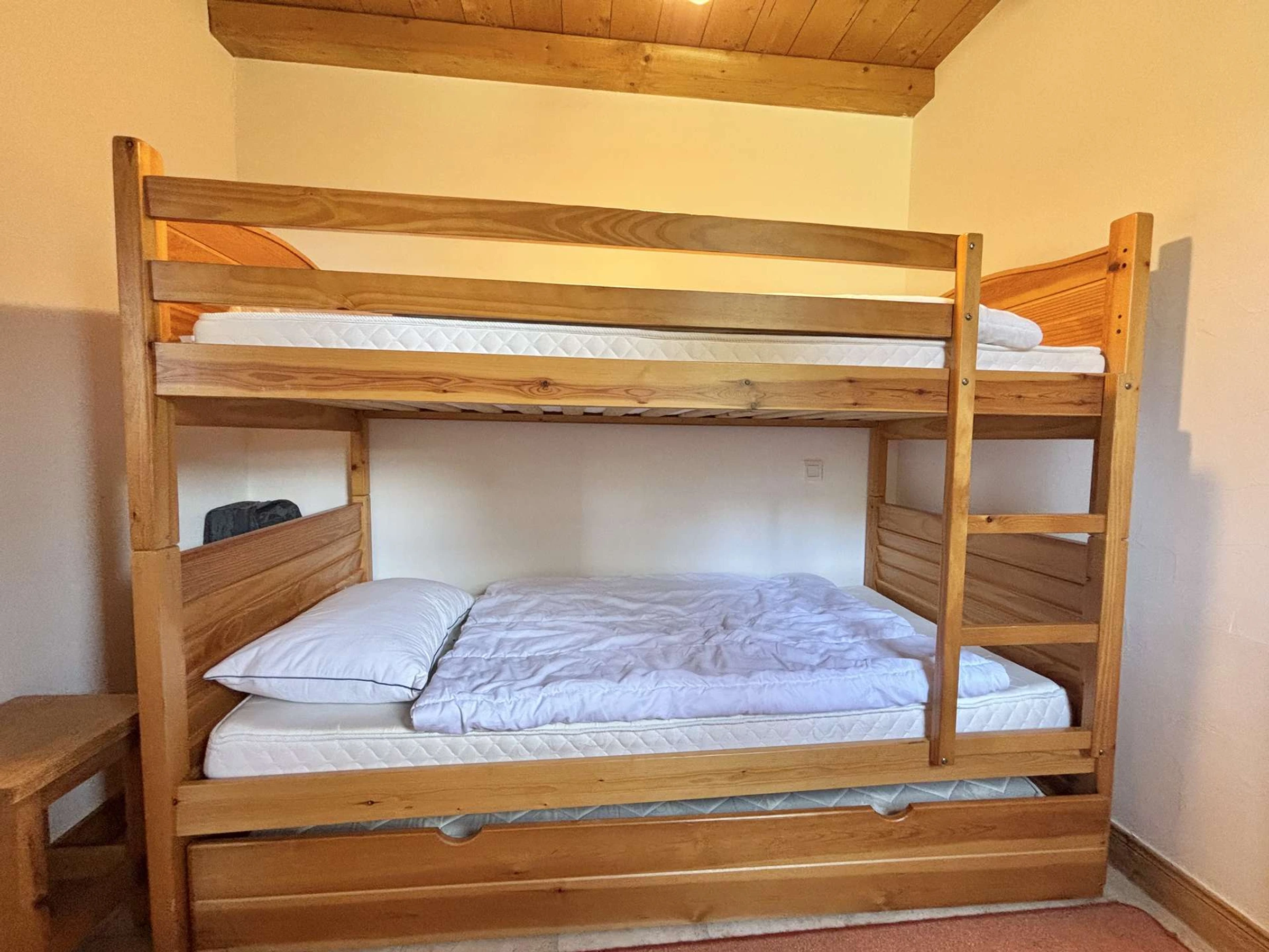 This 38 m² holiday flat is located on the ground floor (access to the flat: down one floor) without a lift, comprises a living room with a sofa bed for two people, a kitchenette, a bedroom with a foldaway bed for two people, a cabin with two bunk beds (NB: the top bunk is not suitable for children under six years old) and a pull-out bed for one person, a shower room and a separate toilet.