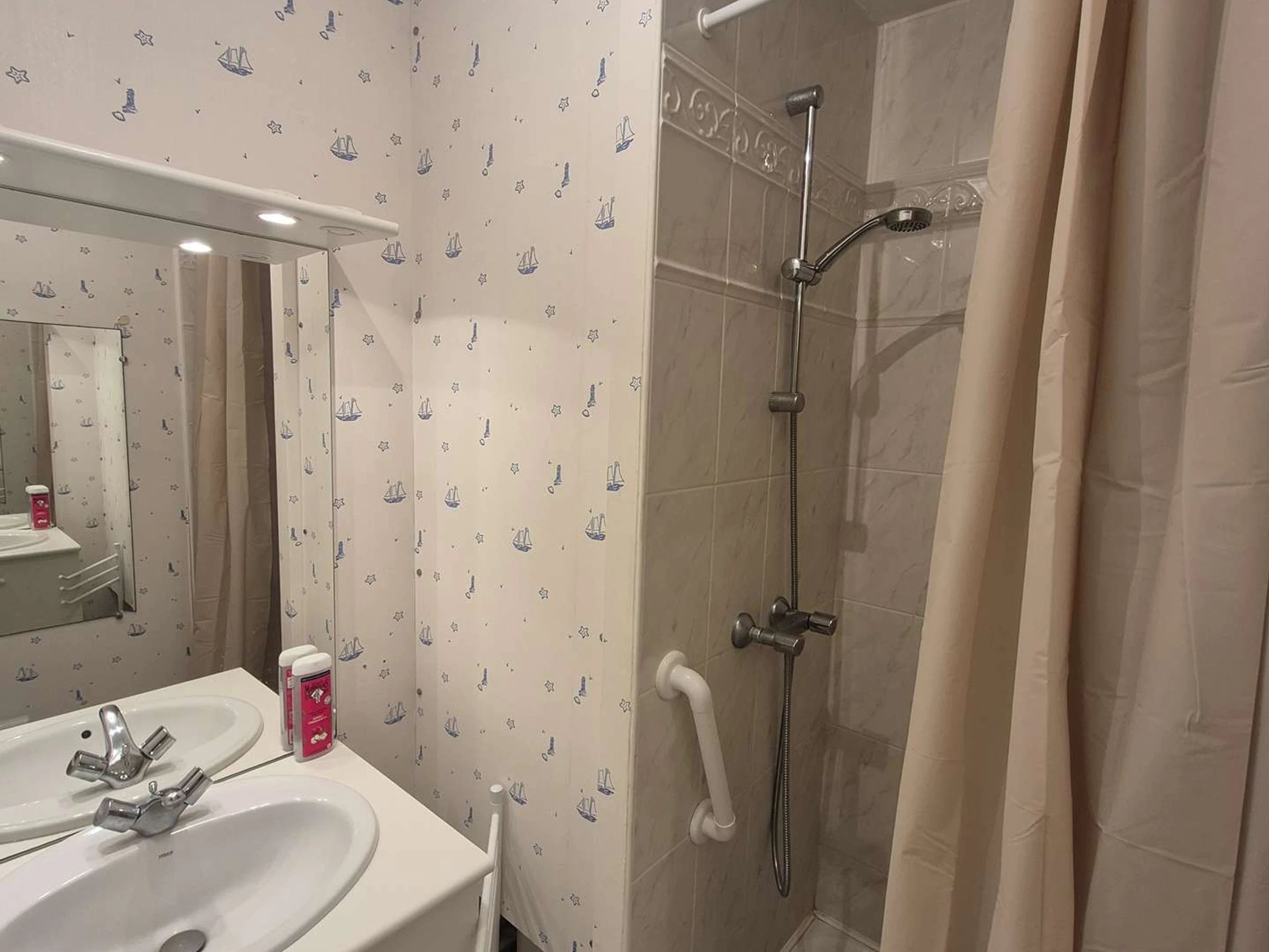 Apartment with sea view and 3 bedrooms located on the 4th floor of the LE SUNNY BEACH residence in STELLA. It features a bedroom with a double bed (140cm), a second bedroom with two single beds (90cm), and a third bedroom with a single bed (90cm). It also includes a living room with a kitchen (stovetop, microwave, oven, dishwasher, etc.), two balconies (west and east), a TV, a bathroom with a bathtub, a shower room with a shower stall, and a washing machine. A separate toilet is also available. Reference LS128