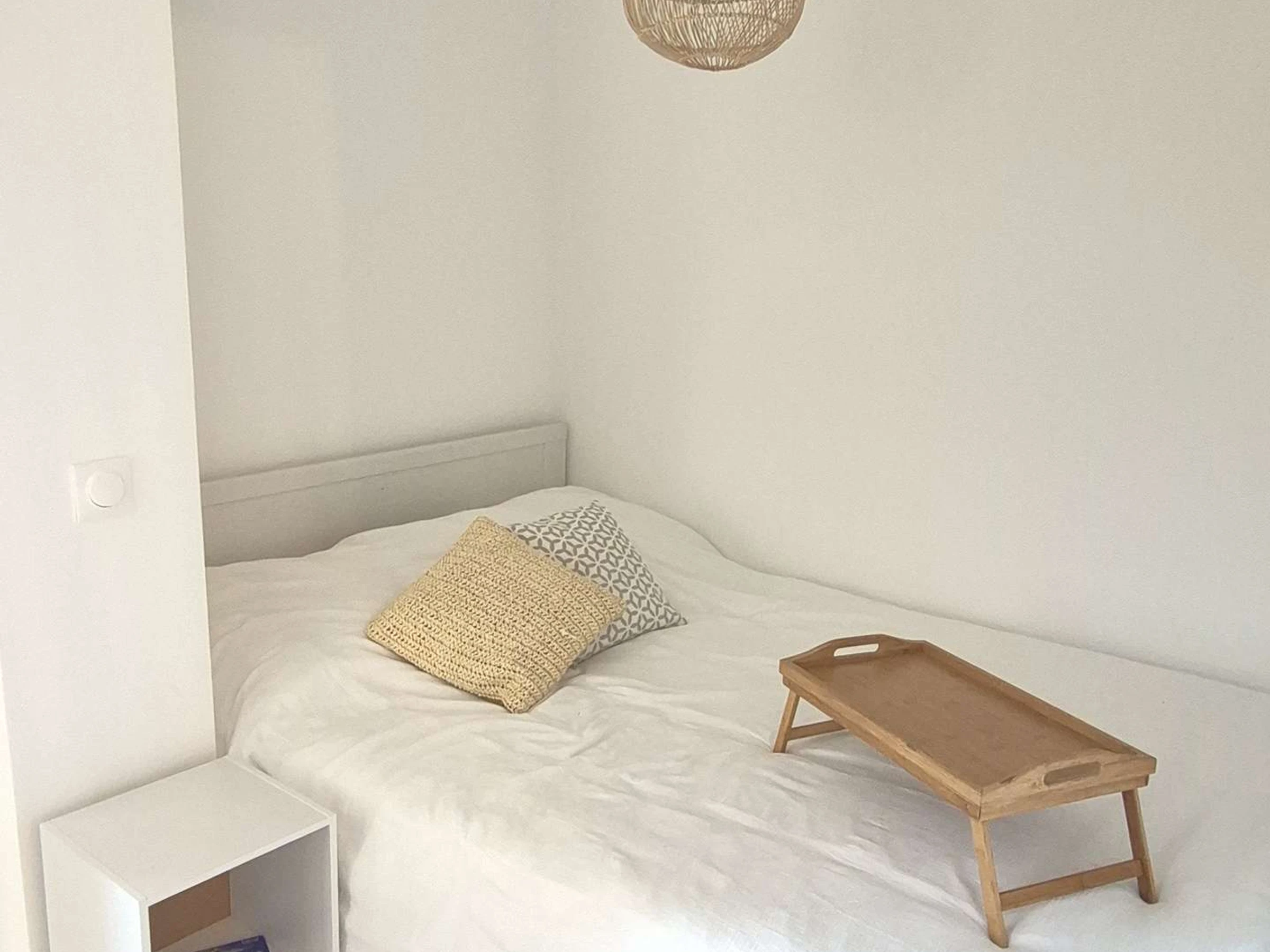Beautifully decorated studio apartment for 2 people, located on the second floor (with elevator) of a recent and secure building. It comprises an entrance hall, a pleasant living area with a kitchenette, a bathroom with shower and toilet, a sleeping alcove with a double bed (140 cm), an east-facing balcony, and one underground parking space (number 31).