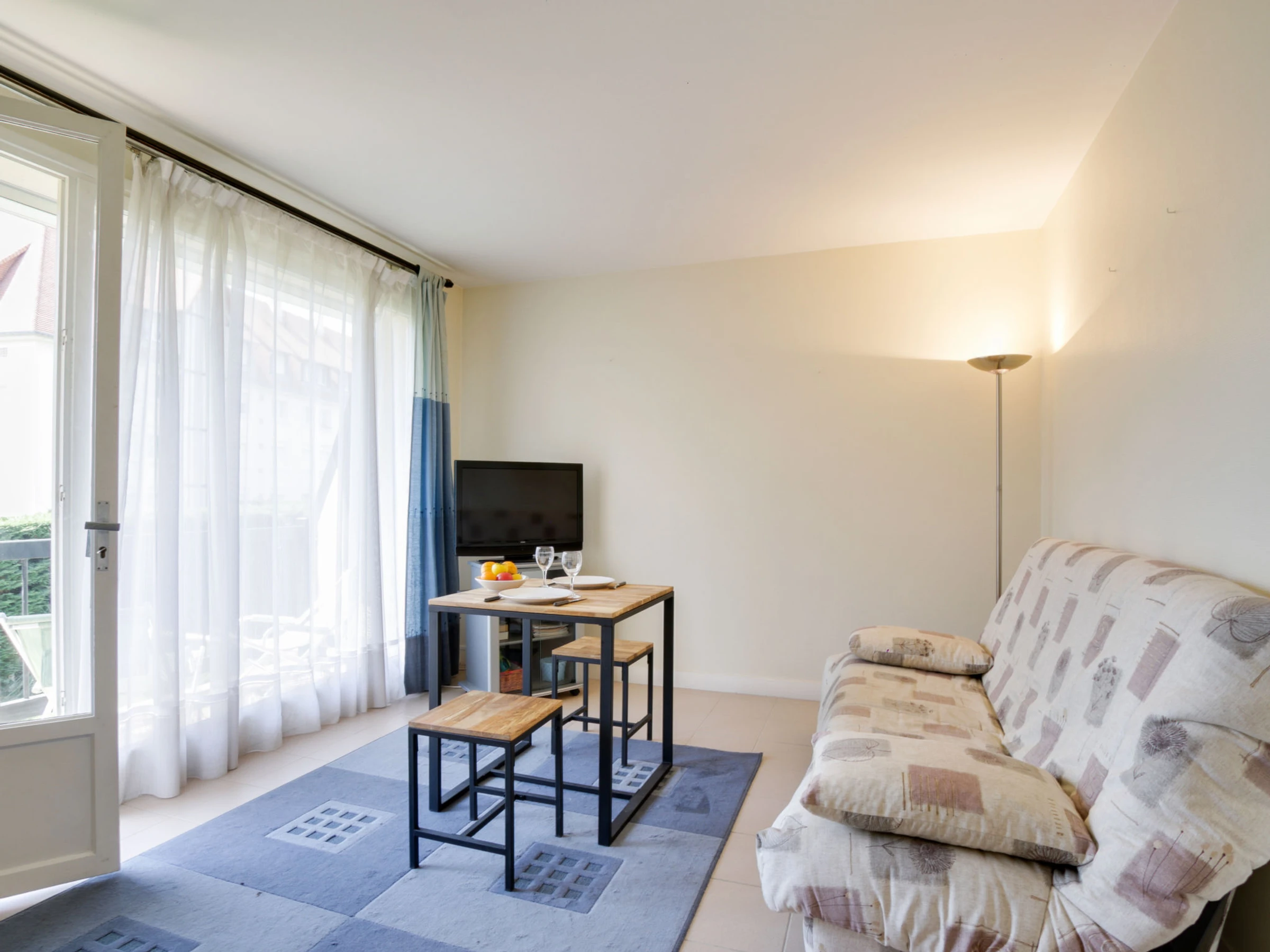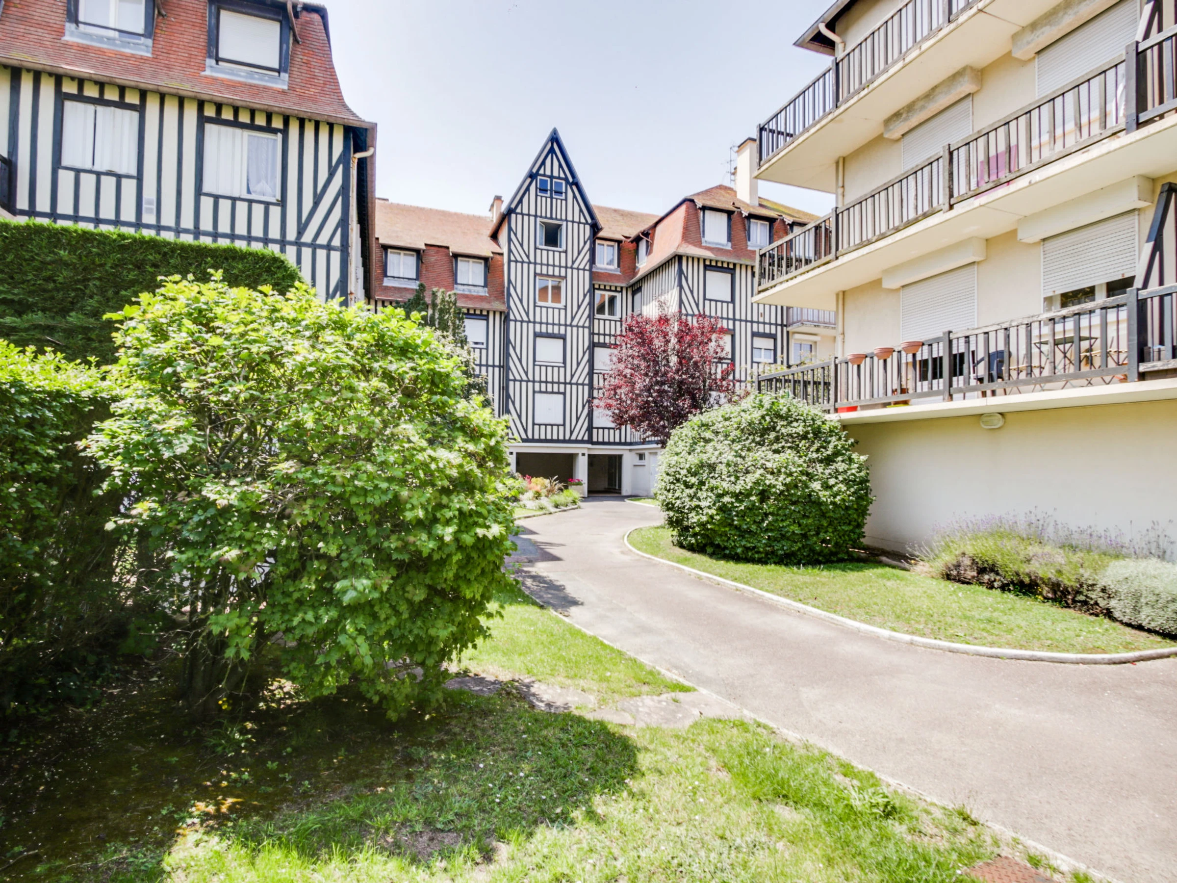 Deauville: Residence "Les Prairies", 3 storeys. In the district of de l'hippodrome, in a quiet position residential area (villas), 700 m from the sea, 700 m from the beach. In the complex: lift. Supermarket 650 m, bakery 250 m, bus stop "Avenue des courses" 200 m, railway station "Deauville-Trouville" 1.6 km, thermal baths "thalasso" 1.1 km. Golf course (18 hole) 3 km. Nearby attractions: Casino de Deauville 900 m, Honfleur, village Normand 15 km, Mémorial de Caen 47 km, Plages du débarquement d'Arromanches 83 km. The keys‘ handover takes place by the agency in Deauville.