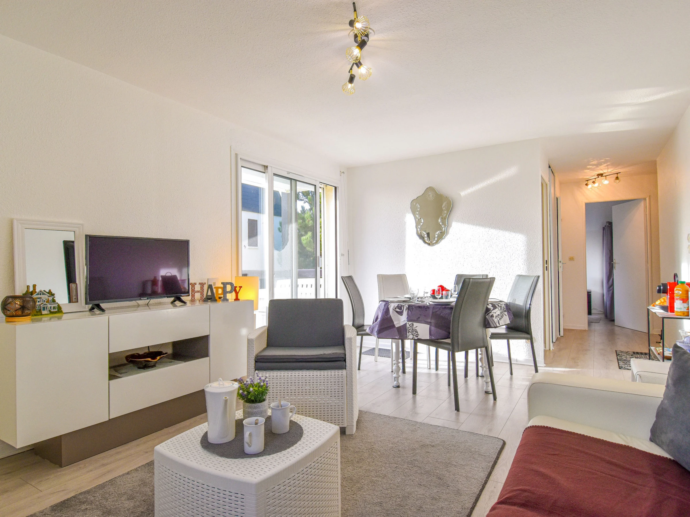 3-room apartment 52 m2 on 1st floor, south facing position. Bright: living/dining room with 1 double sofabed (1 x 140 cm, length 190 cm), dining table and TV (flat screen). Exit to the balcony. 1 room with 1 x 2 bunk beds (90 cm, length 190 cm). 1 room with 1 french bed (1 x 140 cm, length 190 cm). Small kitchen (dishwasher, 2 ceramic glass hob hotplates, combination microwave). Shower, sep. WC. Electric heating. Balcony 7 m2. Balcony furniture. Facilities: washing machine, dryer. Internet (WiFi, free). Parking. Please note: fridge without freezer, non-smokers only. Smoke alarm, no lift. [hidden]