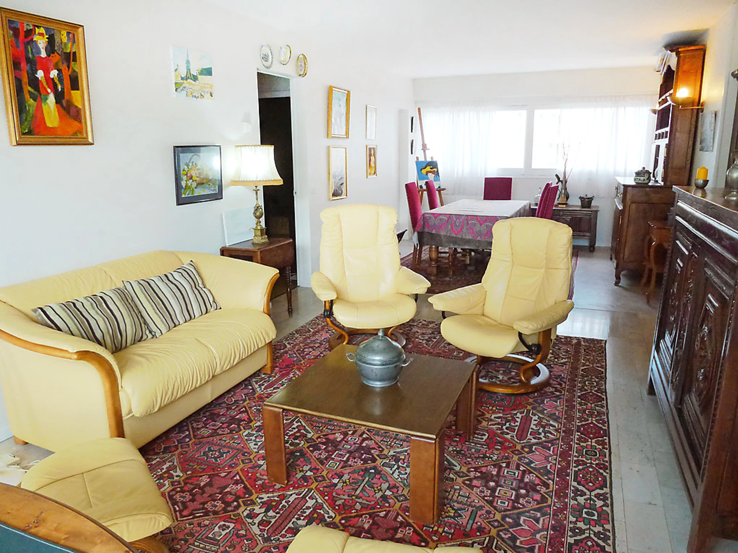 "Villa Hoche", 3-room apartment 67 m2 on 1st floor. Entrance hall. Living/dining room with TV (flat screen), DVD. Exit to the balcony. 1 room with 1 french bed (140 cm). Exit to the balcony. 1 room, window onto the courtyard with 1 french bed (140 cm). Kitchen (4 hot plates, mini-oven, dishwasher, microwave, freezer, electric coffee machine). Bathroom, sep. WC. Balcony 8 m2, west facing position. Facilities: washing machine, dryer. Reserved parking (roofed). Please note: apartment street side.
