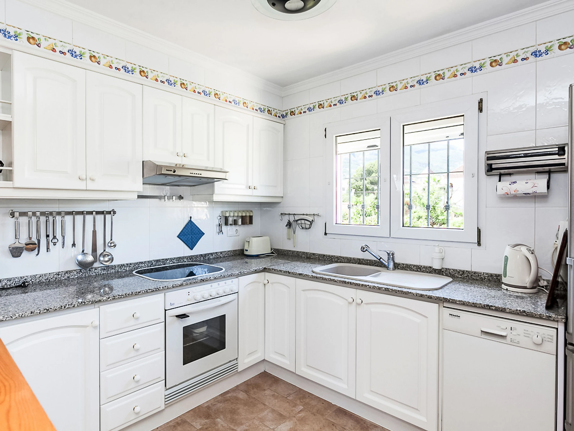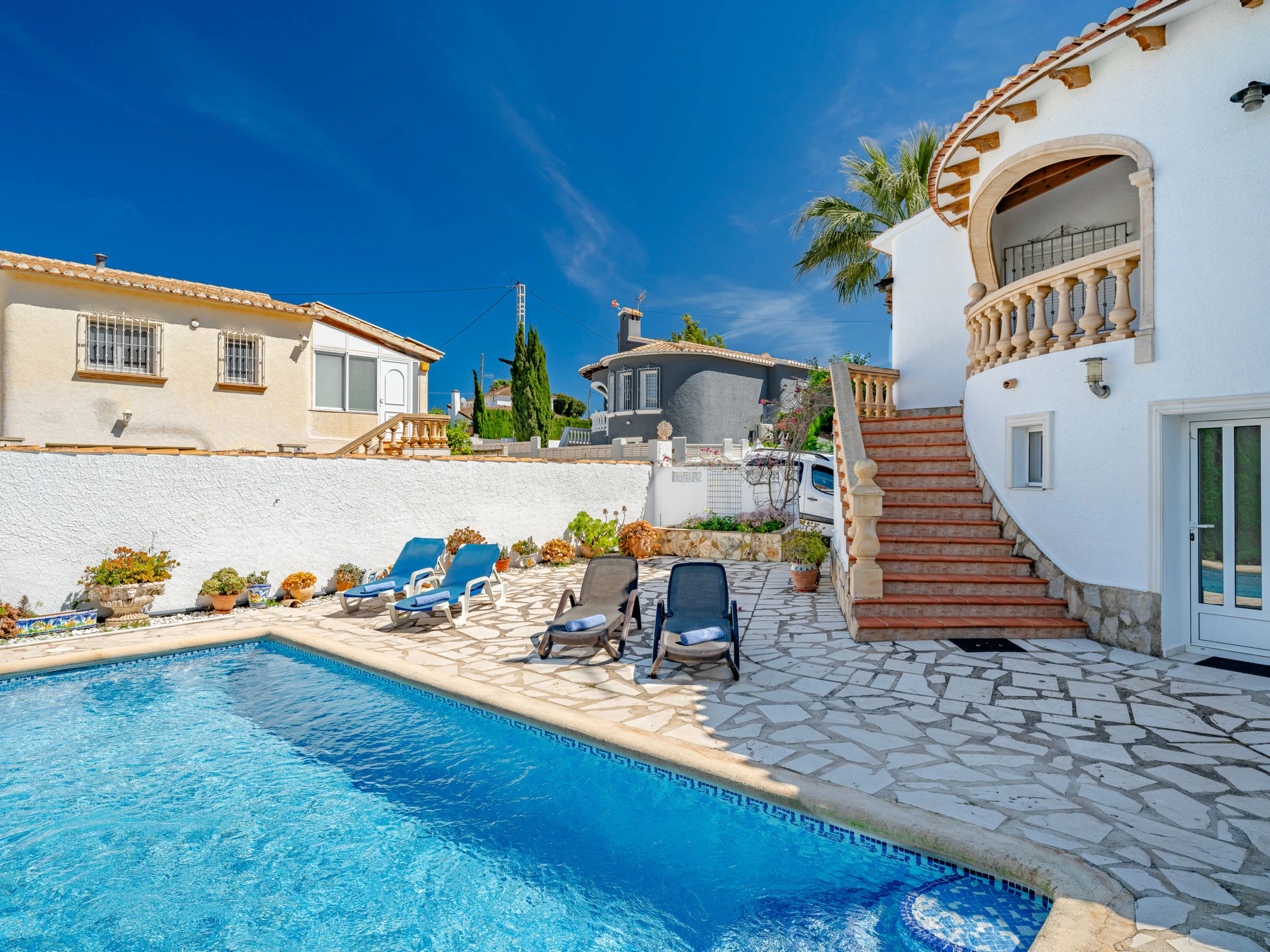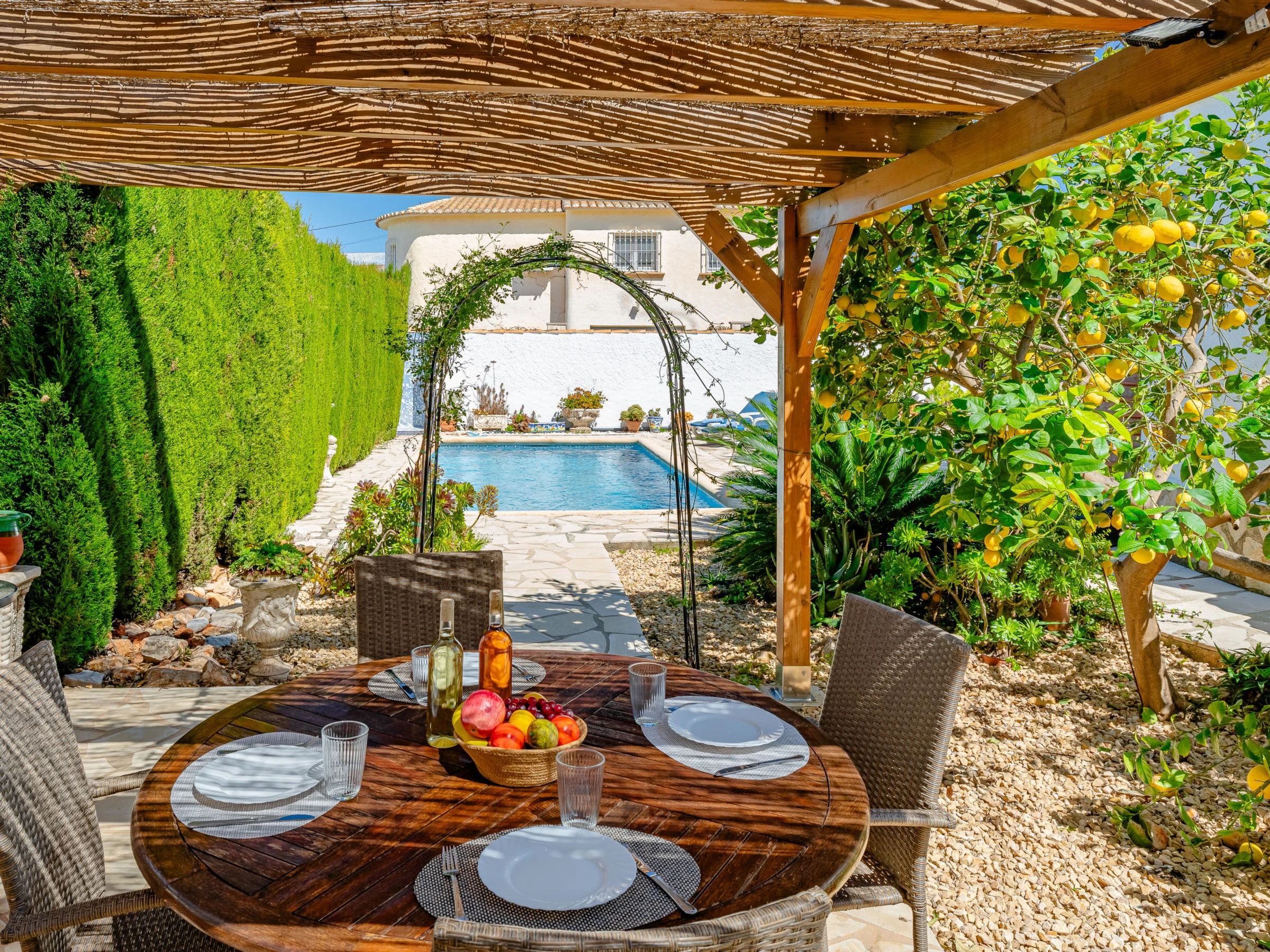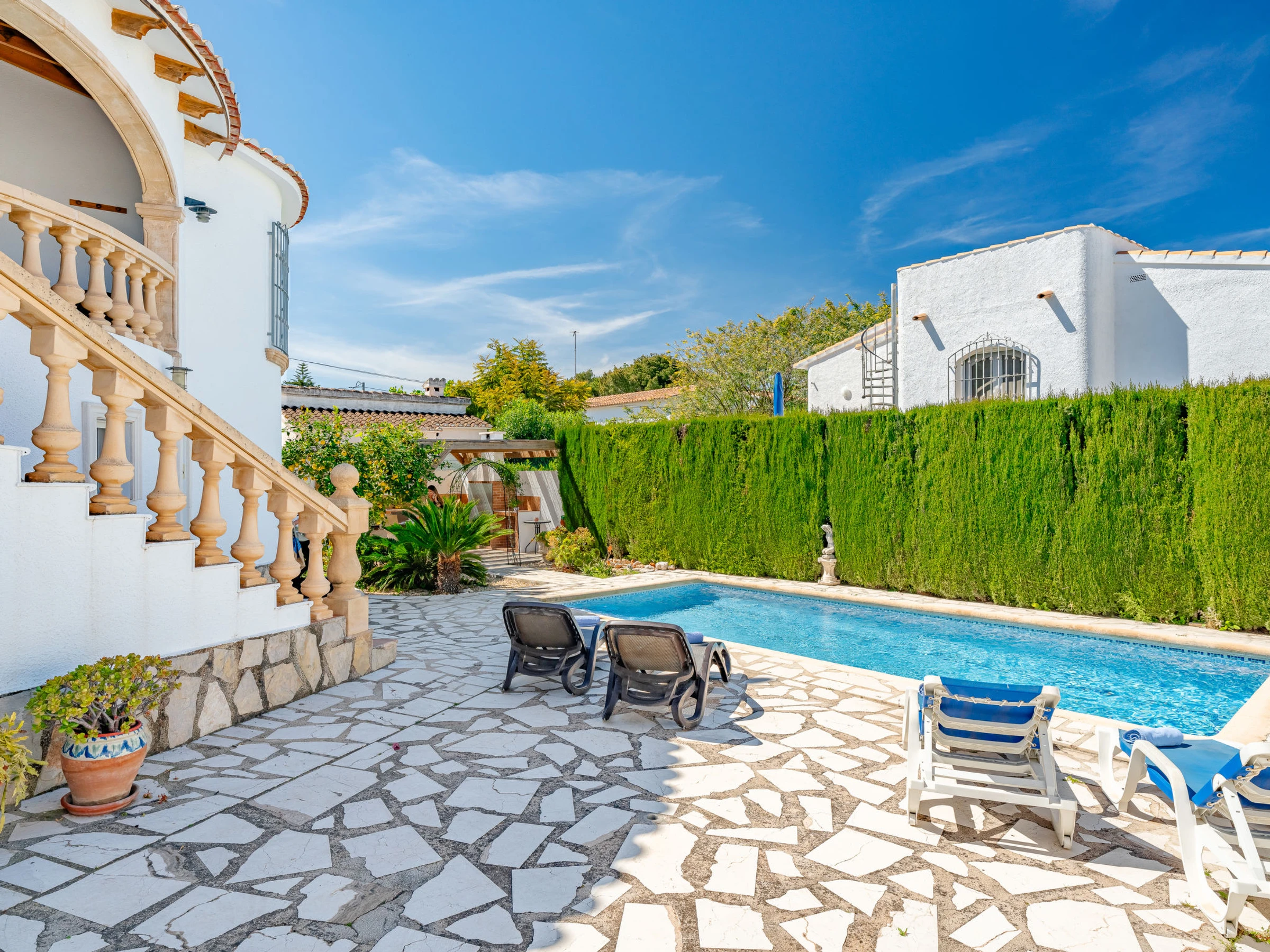 Cosy, very comfortable villa "Tulipanes". In the resort 500 m from the centre of de Dënia, in a quiet, sunny position residential area (villas). Private: beautiful, well-kept garden (fenced) with flowers and trees, swimming pool angular (4 x 8 m, depth 180 cm, seasonal availability: [hidden] - [hidden] Outdoor shower, arbour, garden furniture, pool maintenance by the owner/gardener. Stepped path (13 steps) to the house. Parking on the premises, single garage. Supermarket, shopping centre, restaurant, bar 300 m, bus stop 1.8 km, railway station 1.8 km, ferry 3.6 km. Sports harbour 800 m, surf school, sailing school. The owner does not accept any youth groups.