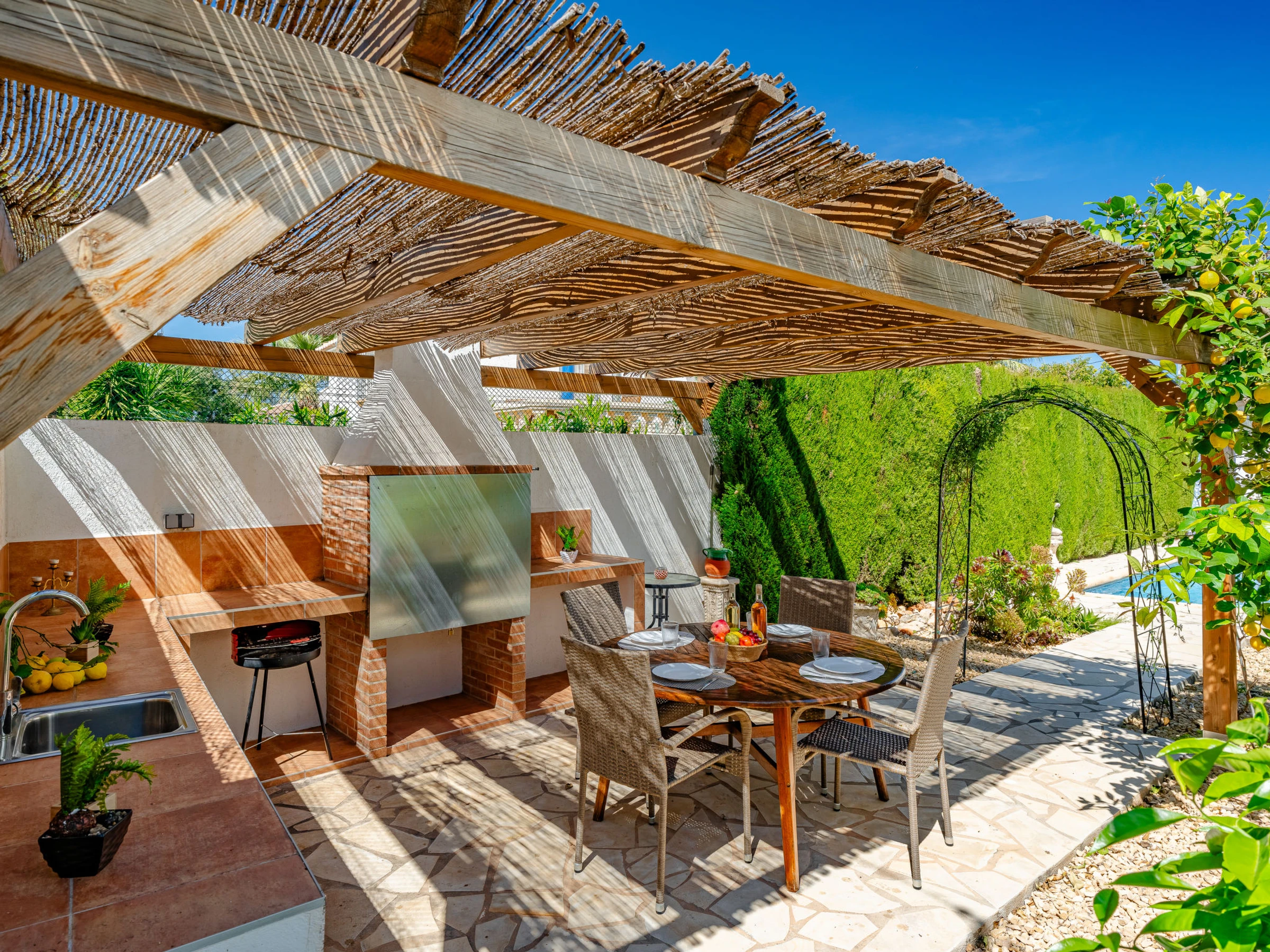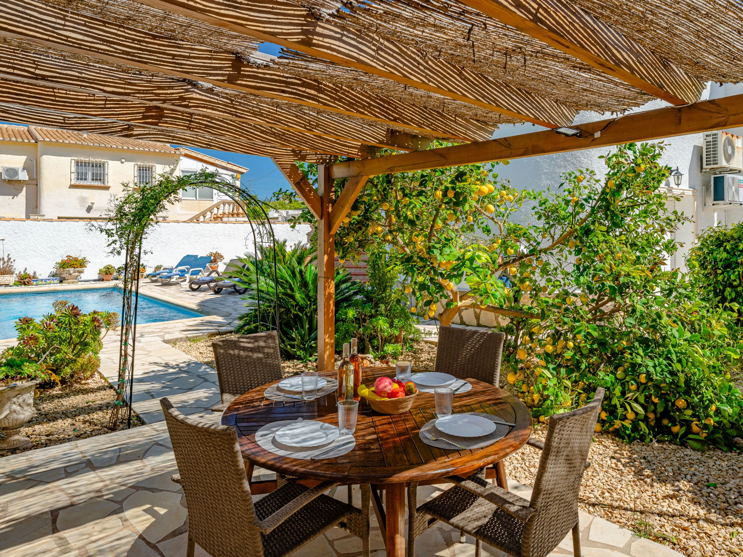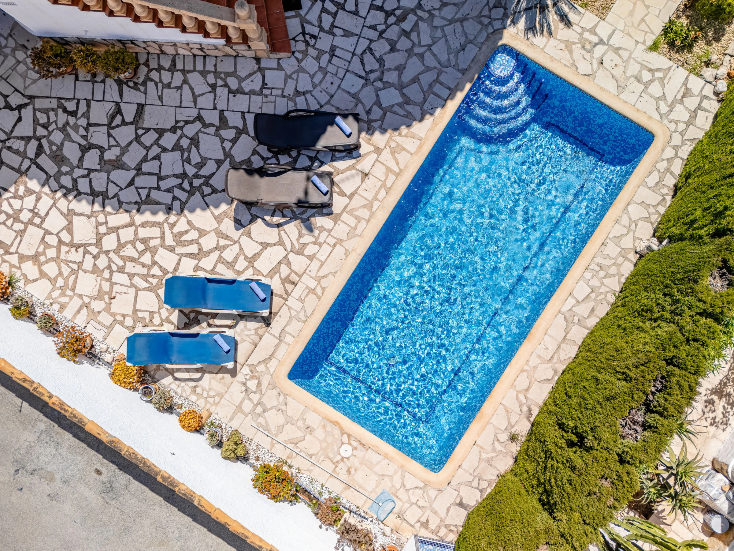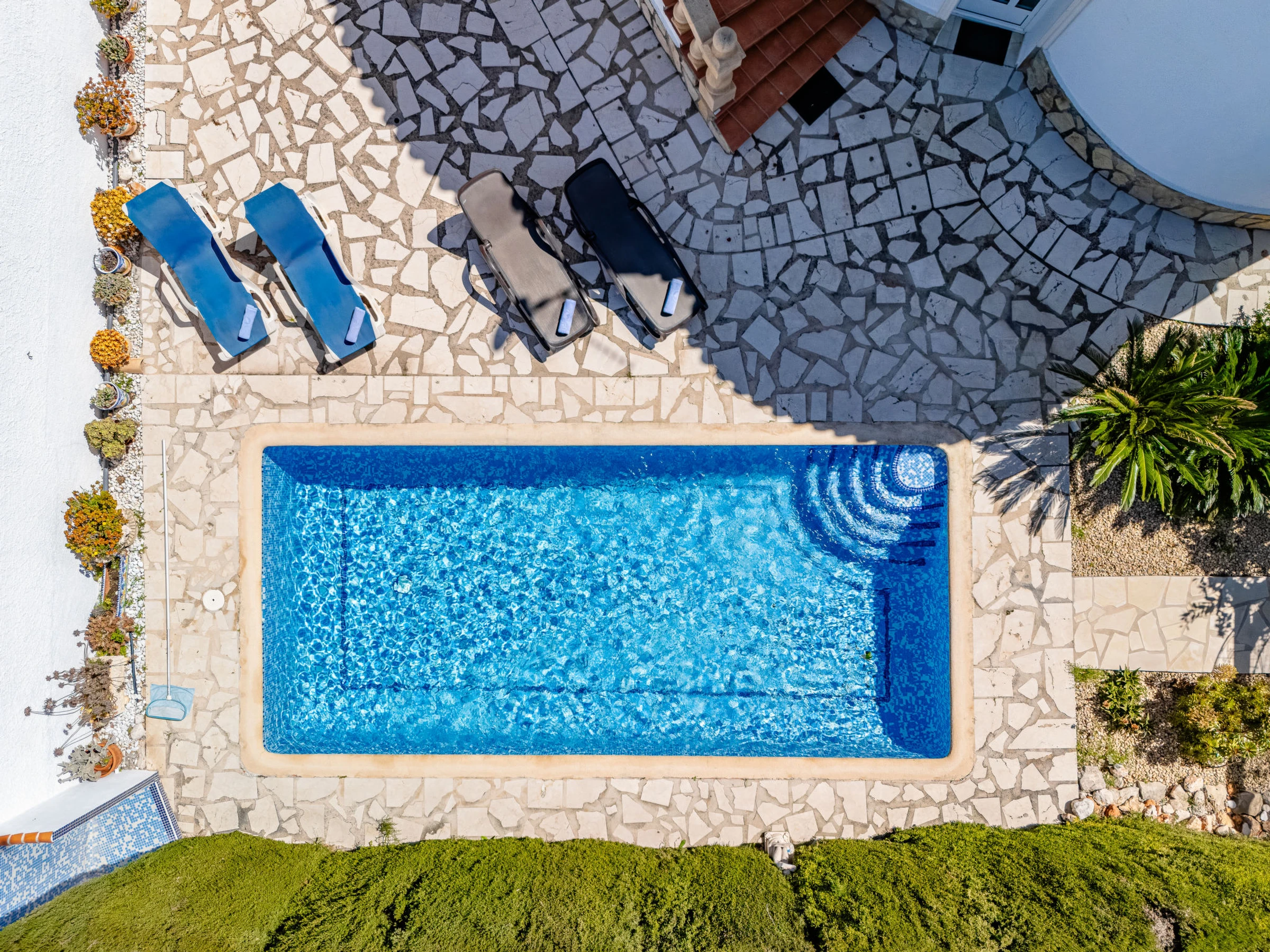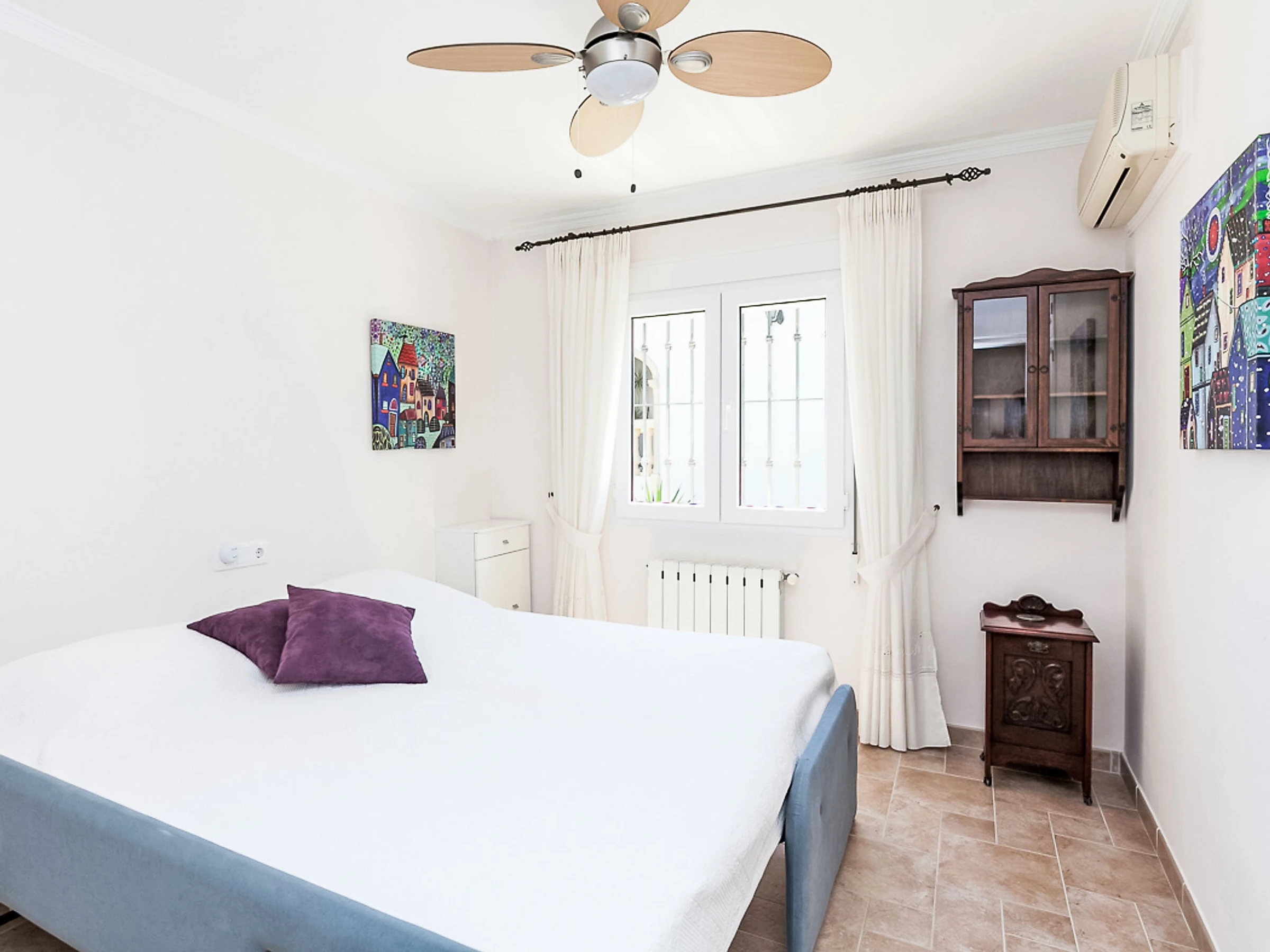 Cosy, very comfortable villa "Tulipanes". In the resort 500 m from the centre of de Dënia, in a quiet, sunny position residential area (villas). Private: beautiful, well-kept garden (fenced) with flowers and trees, swimming pool angular (4 x 8 m, depth 180 cm, seasonal availability: [hidden] - [hidden] Outdoor shower, arbour, garden furniture, pool maintenance by the owner/gardener. Stepped path (13 steps) to the house. Parking on the premises, single garage. Supermarket, shopping centre, restaurant, bar 300 m, bus stop 1.8 km, railway station 1.8 km, ferry 3.6 km. Sports harbour 800 m, surf school, sailing school. The owner does not accept any youth groups.