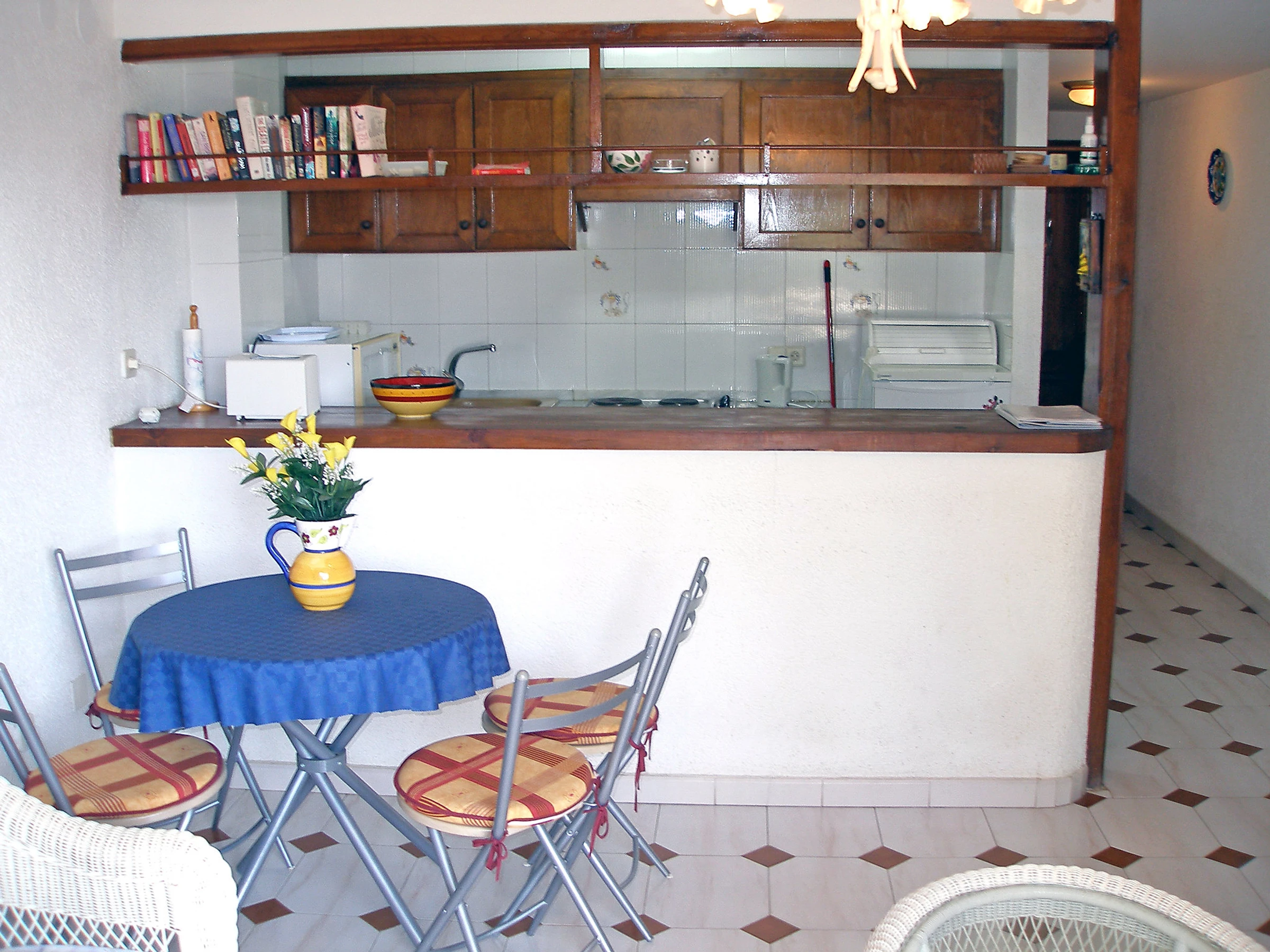 2-room apartment 55 m2 on 1st floor. Cosy furnishings: living/dining room with 1 sofabed. Exit to the terrace. 1 double bedroom with 2 beds (90 cm, length 190 cm). Exit to the balcony. Open kitchen (oven, microwave) with bar. Bath/WC. Terrace. Terrace furniture, deck chairs (1). Side view of the garden. [hidden]