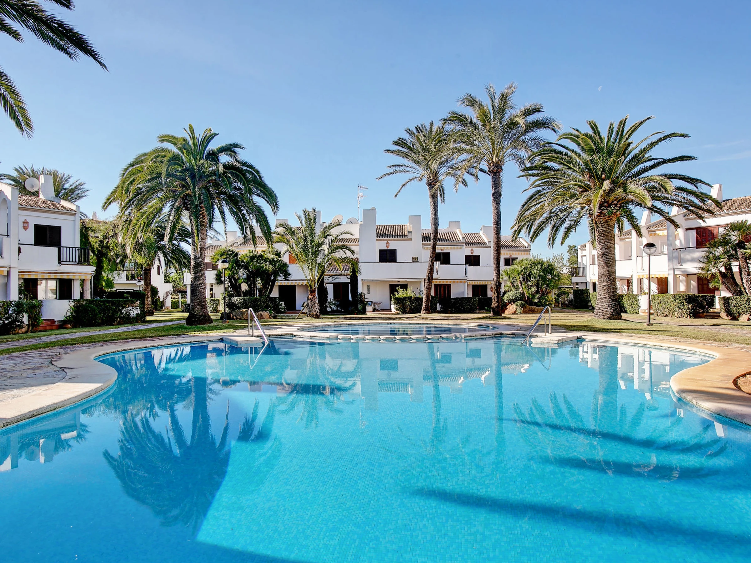 Very beautiful, cosy residence "Les Arenes". 51 houses in the residence. 2 km from the centre of Dénia, 50 m from the sea, direct access to the beach. For shared use: large, beautiful, well-kept garden with lawn and plants, swimming pool (01.01.-31.12.). Children's pool, outdoor shower, parking. Supermarket, restaurant, bar, café, bus stop 200 m, sandy beach 50 m. Tennis 2 km.