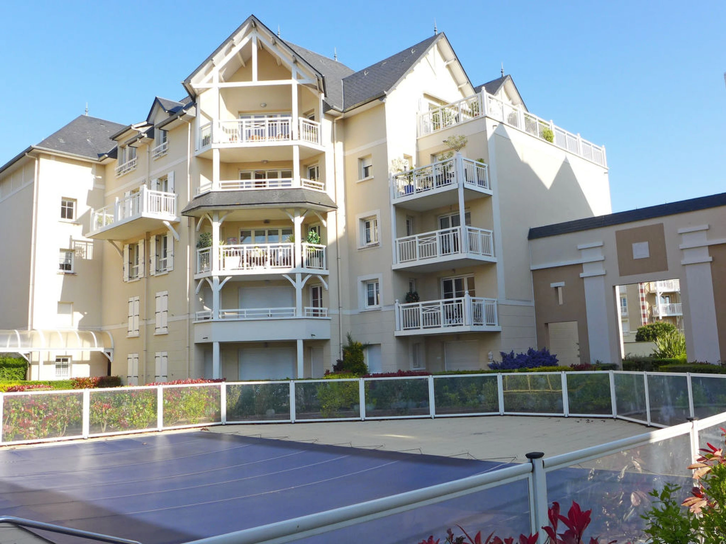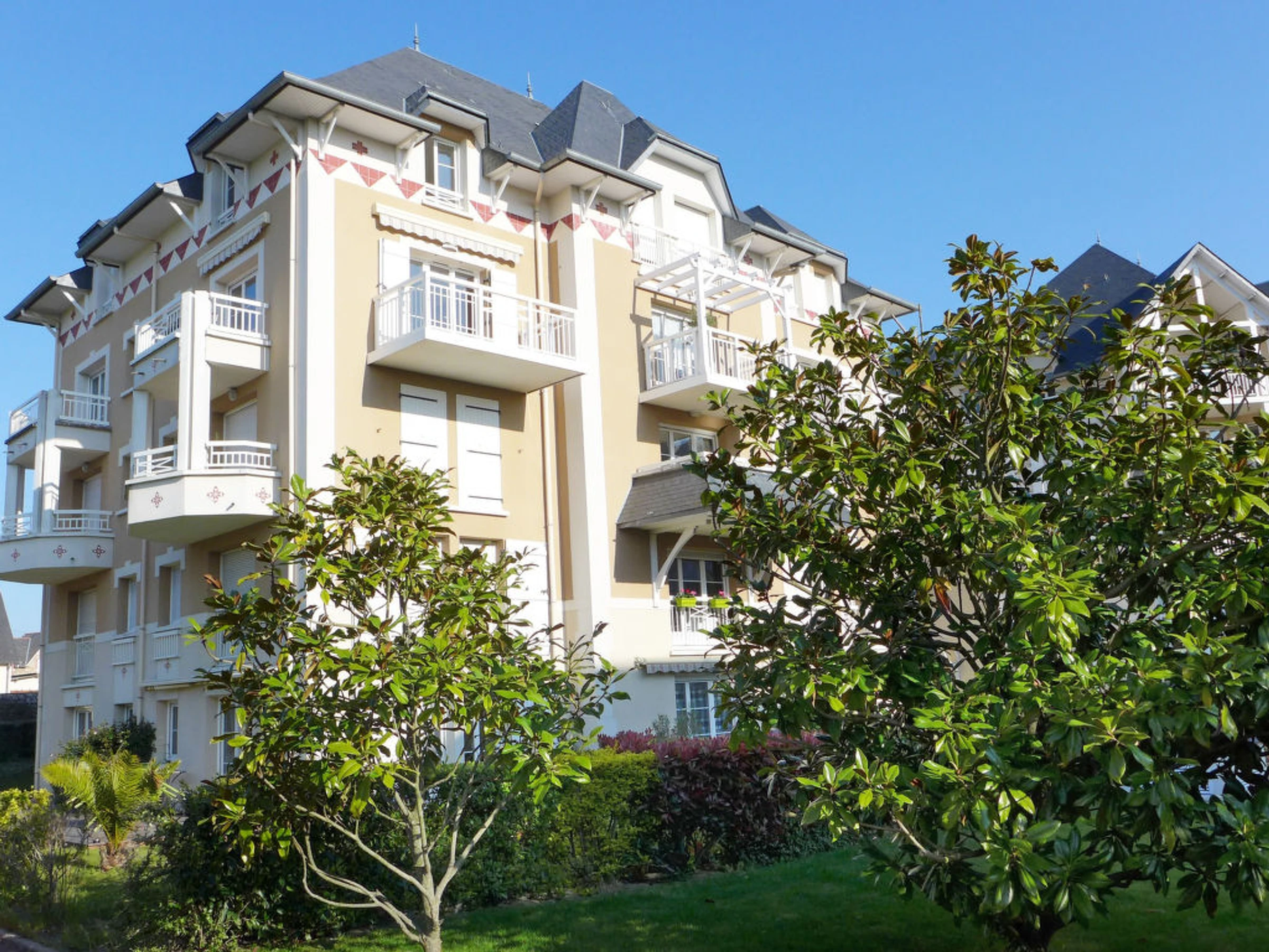 Beautiful residence "Clos des orchidées", 3 storeys. 1 km from the sea, 1 km from the beach. For shared use: swimming pool (15.06. and 15.09.). Shop 500 m, bus stop 100 m, sandy beach "Le prieuré" 1 km, park "Le port Breton" 1 km, thermal baths "Centre Thermal Novotel" 2 km. Golf course 2 km. Nearby attractions: Le mont st michel 65 km, Cancale 20 km, St briac et st lunaire 2 km, Dinan 10 km, Dol de bretagne 30 km, Aquarium de St Malo 10 km. Please note: 10 km. Airfield close by 4 km from the property.