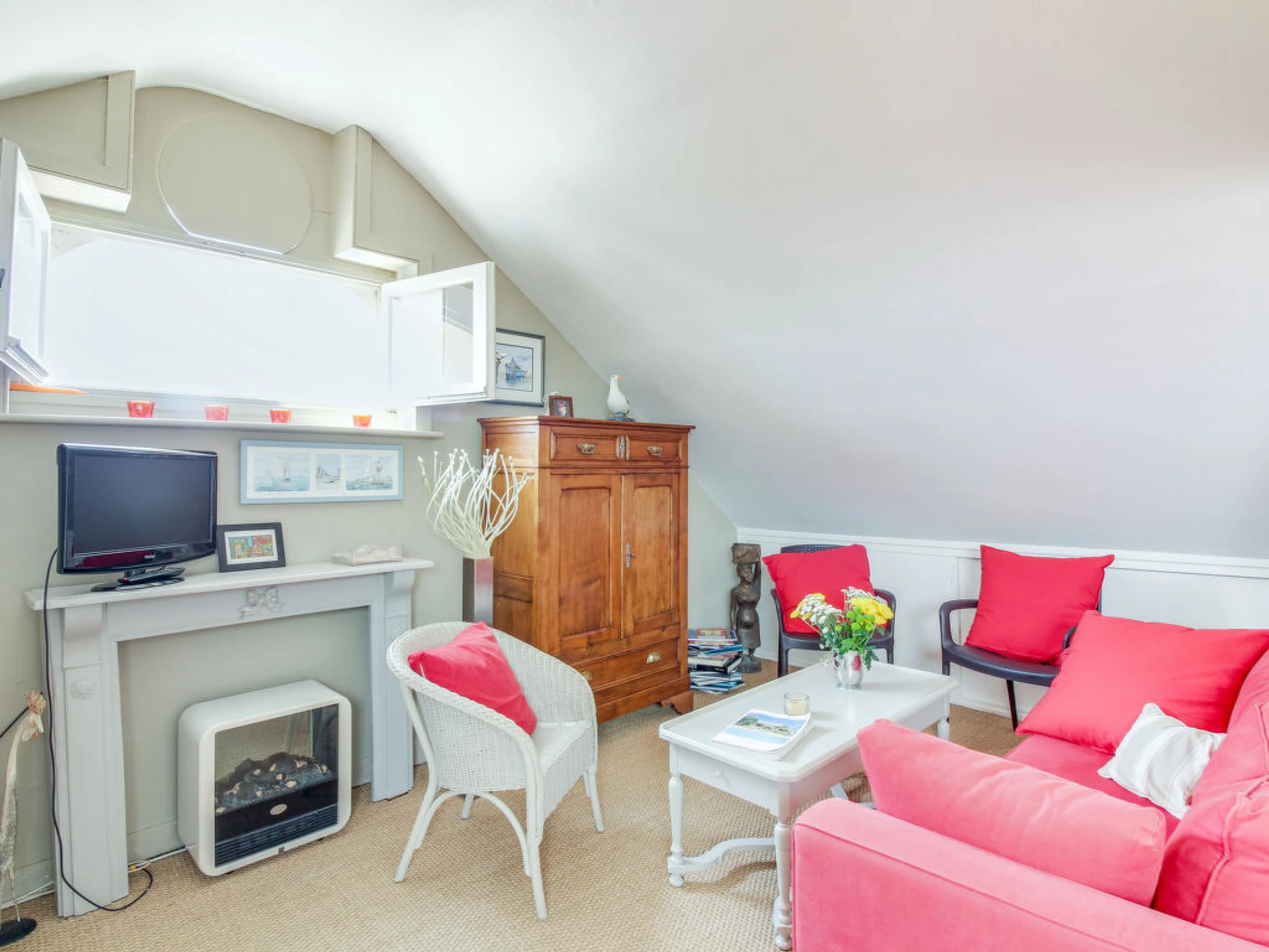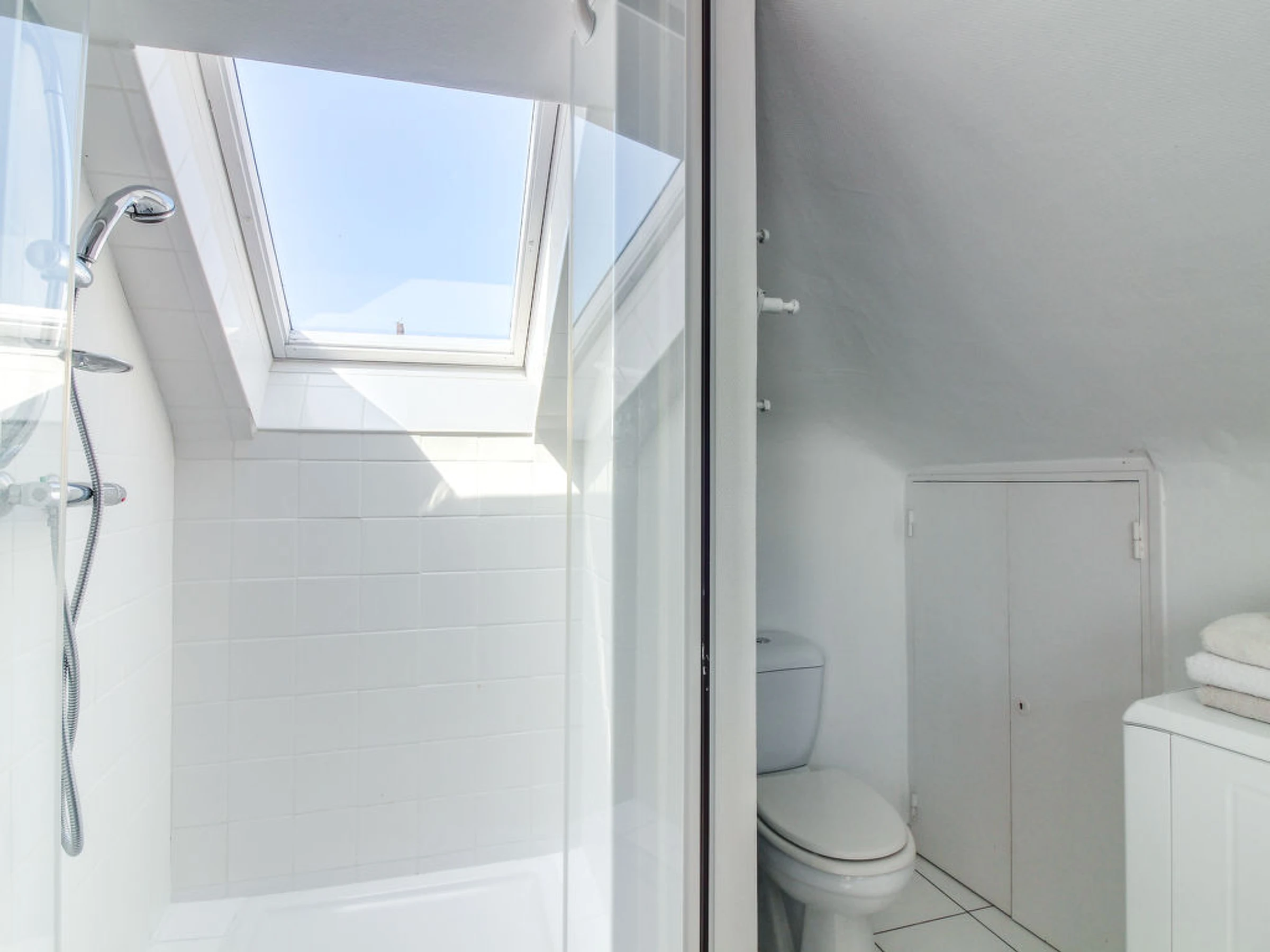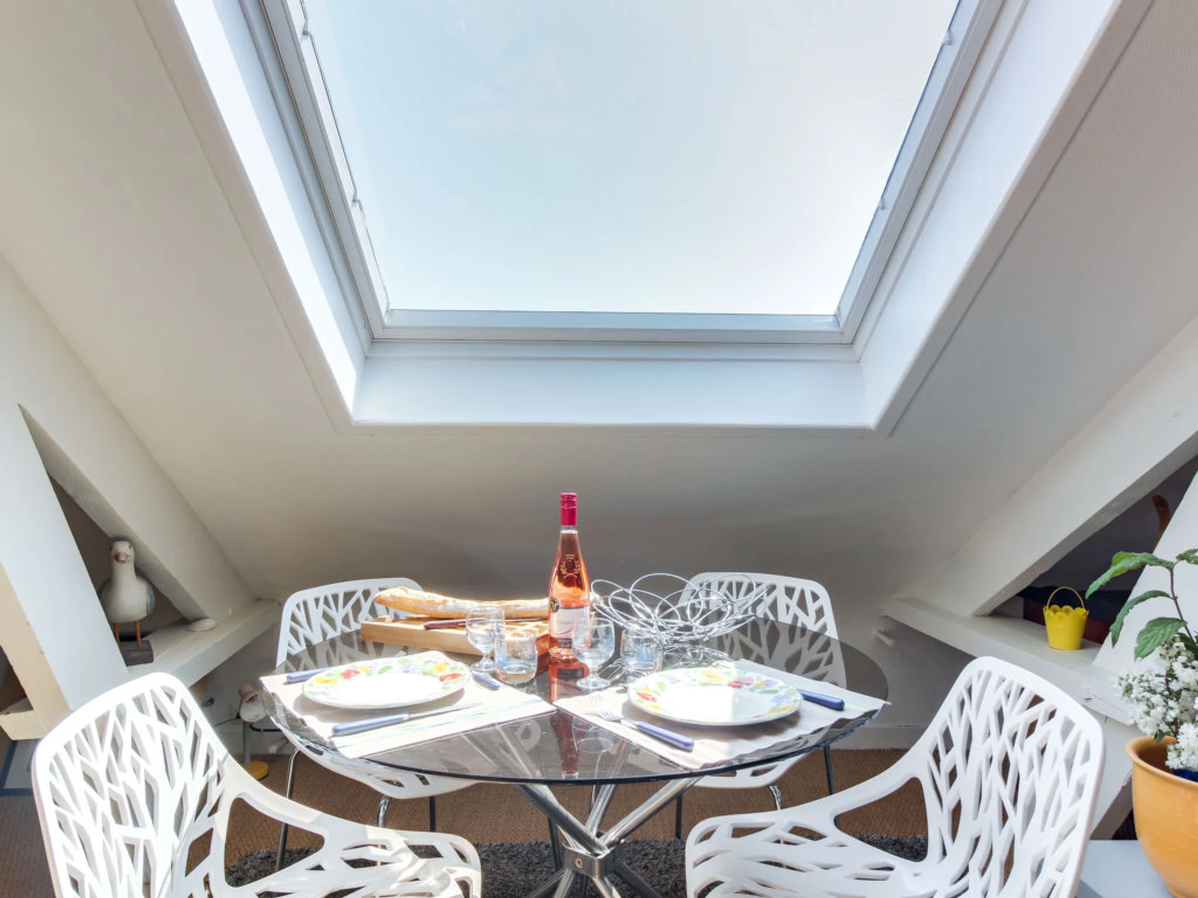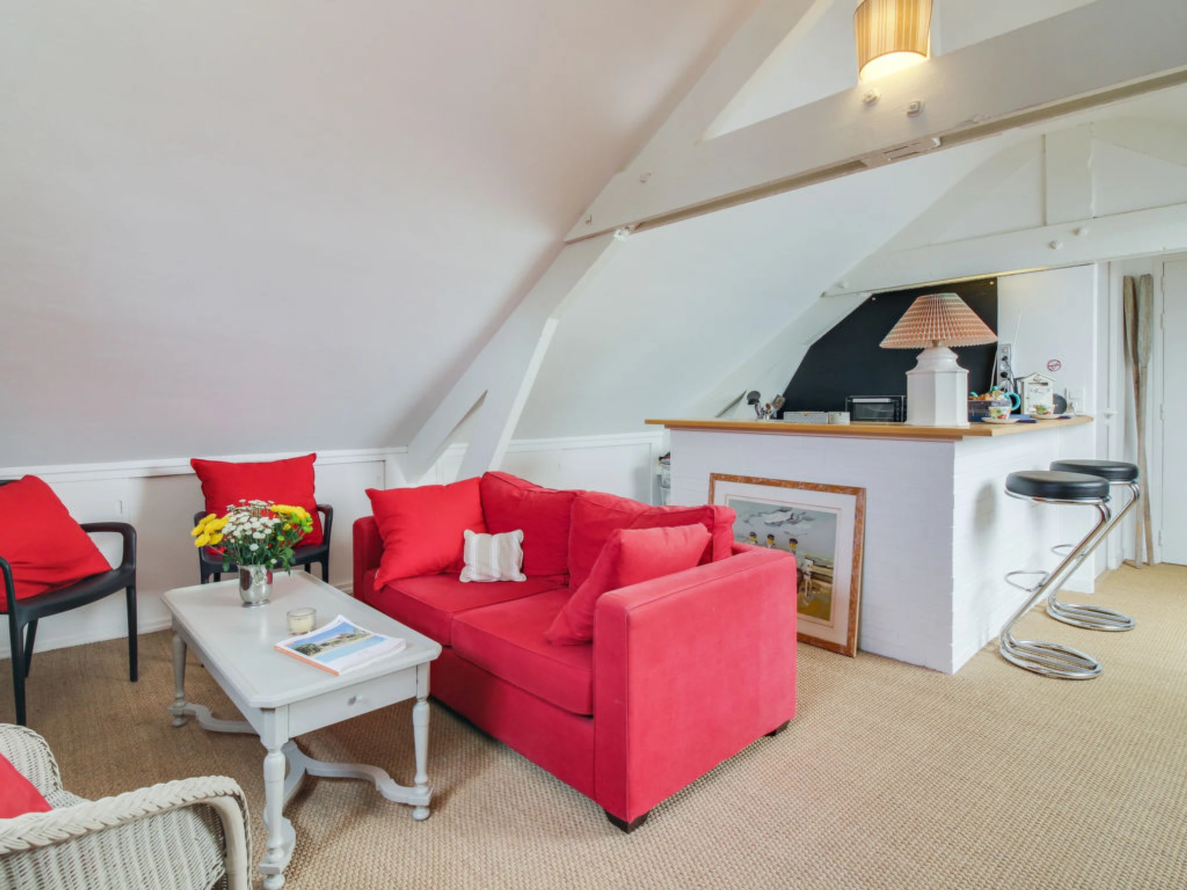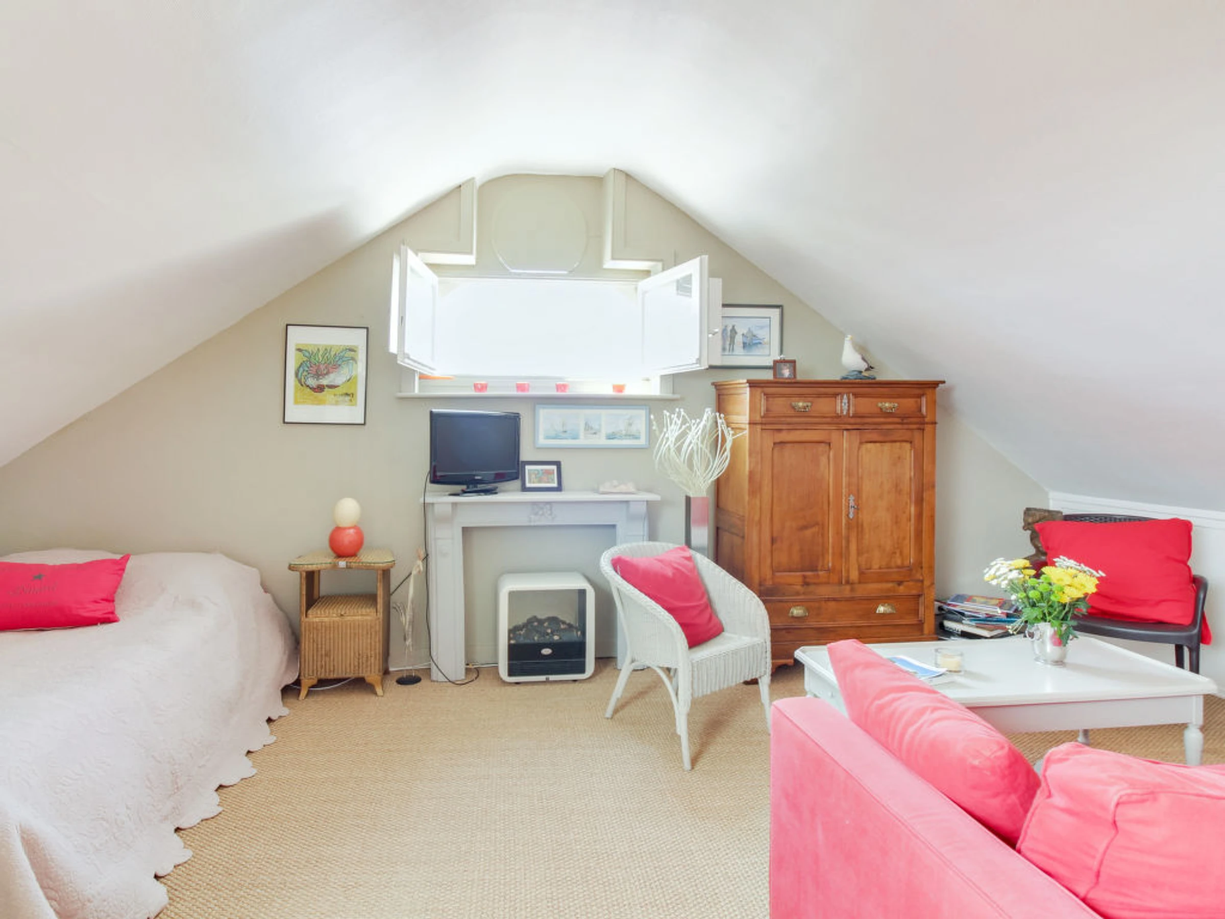 1-room studio 23 m2 on 3rd floor. With sloping ceilings, beautiful and romantic furnishings: living/dining room with 1 french bed (1 x 140 cm, length 190 cm), TV (flat screen). Kitchenette (mini-oven, dishwasher, 4 ceramic glass hob hotplates, microwave, electric coffee machine). Shower/WC. Facilities: washing machine. Internet (WiFi, free). Please note: non-smokers only. Smoke alarm.
