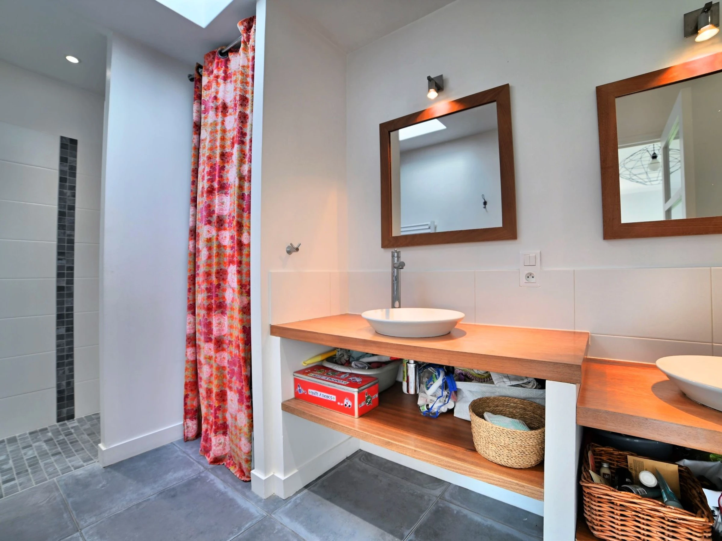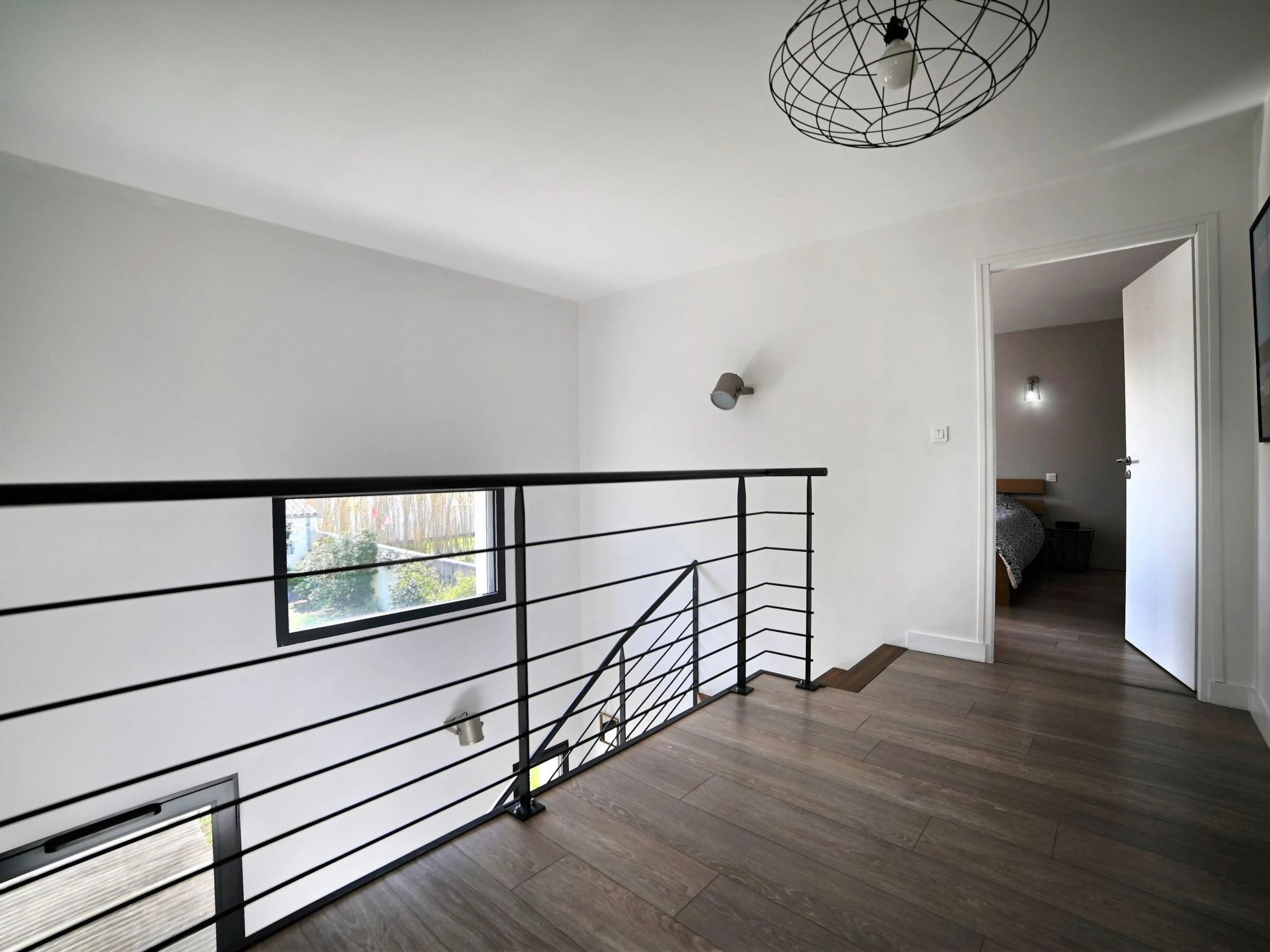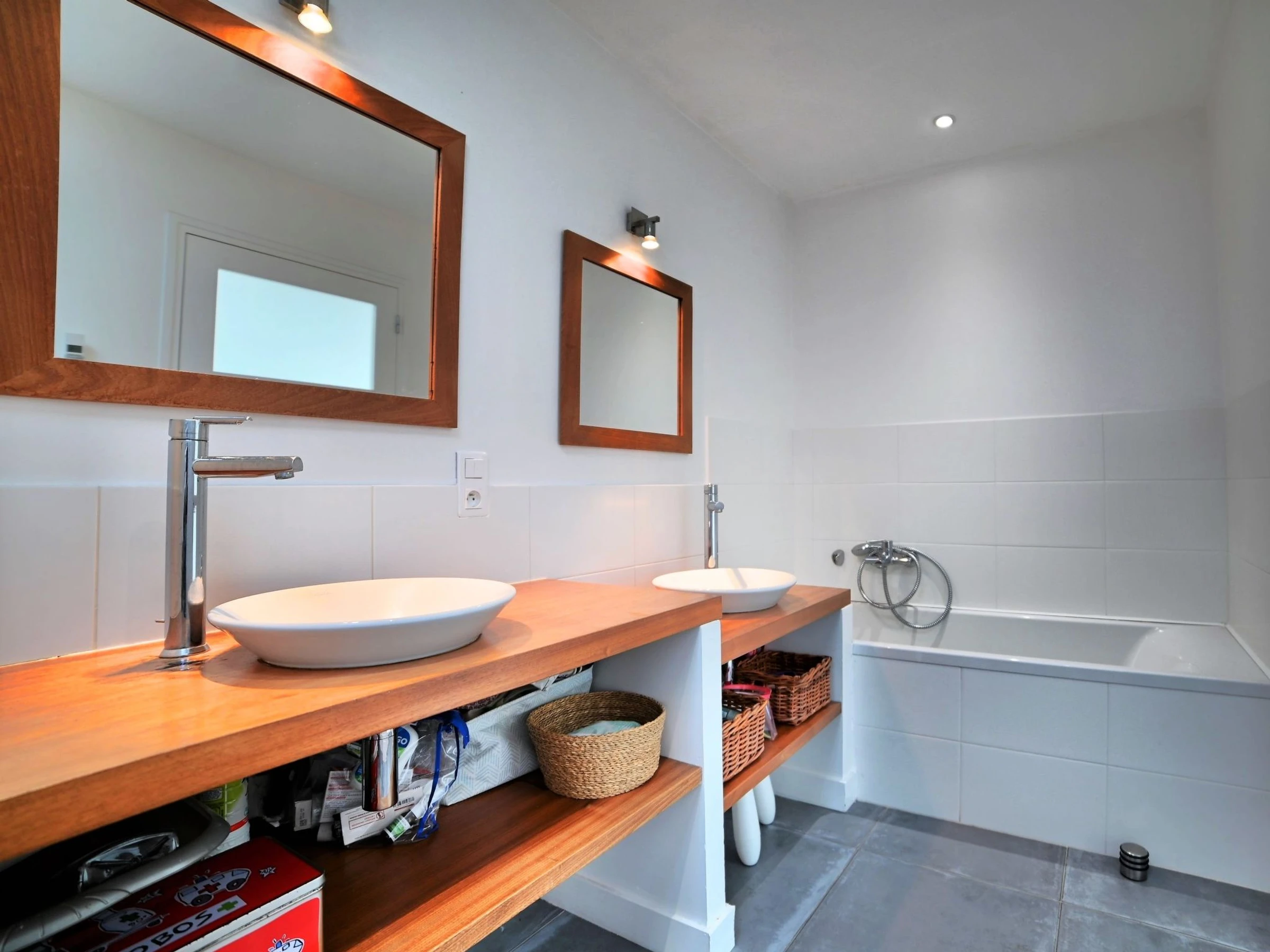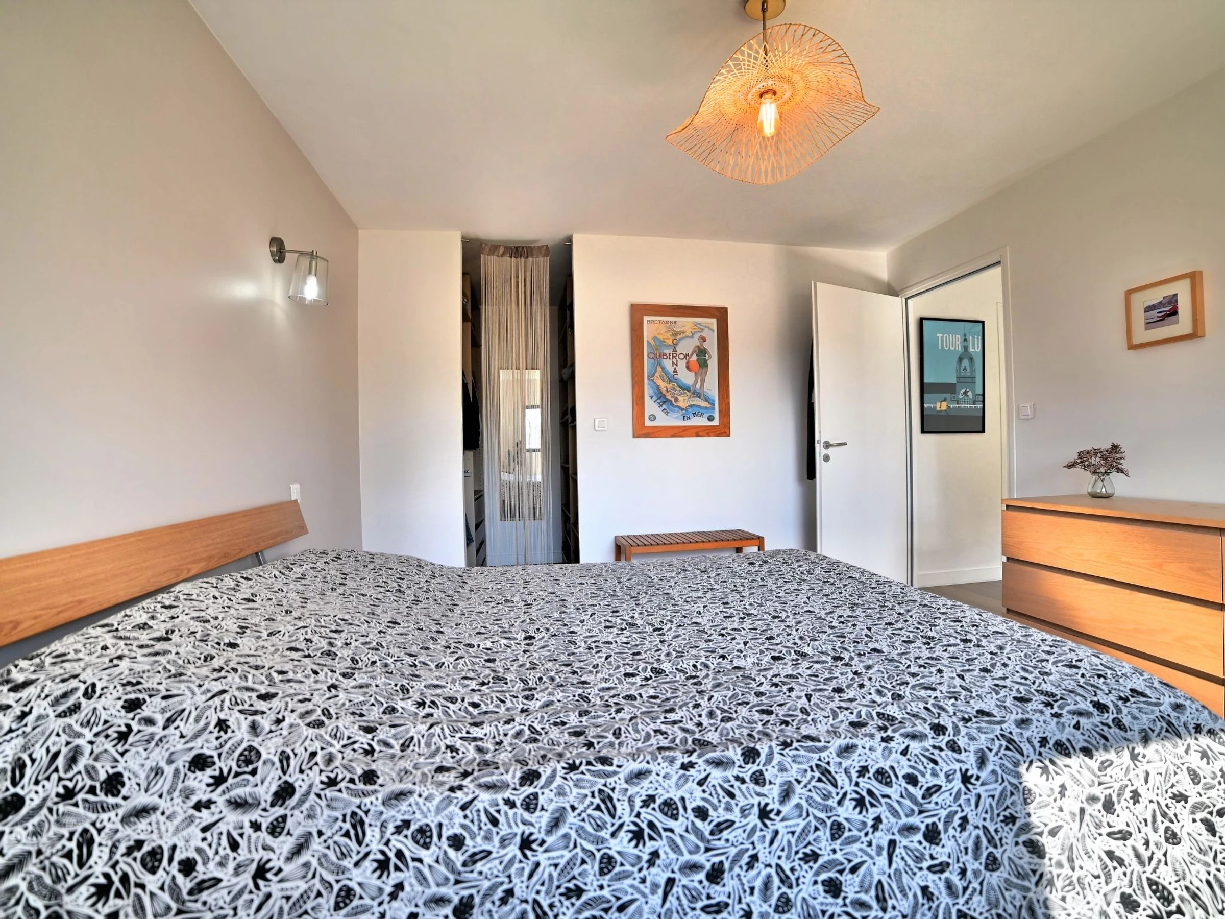 4-room house 165 m2 on 2 levels. Beautiful and cosy furnishings: large living/dining room 60 m2 with TV (flat screen), hi-fi system and DVD. Exit to the garden, to the terrace. Open kitchen (4 hot plates, oven, dishwasher, kettle, microwave, freezer, electric coffee machine). Shower, sep. WC. Electric heating. Upper floor: 1 room with 1 french bed (160 cm, length 200 cm). 1 room with 1 french bed (140 cm, length 190 cm). 1 room with 1 bed (120 cm, length 190 cm). Bath/shower, sep. WC. Electric heating. Large terrace 30 m2. Terrace furniture, barbecue, deck chairs (4). Facilities: washing machine, dryer, baby cot for up to 2 year olds. Internet (WiFi, free). Reserved parking (2 cars). Please note: non-smoking house. Smoke alarm. Offer by a private individual according to Art. 155, IV of CGI.