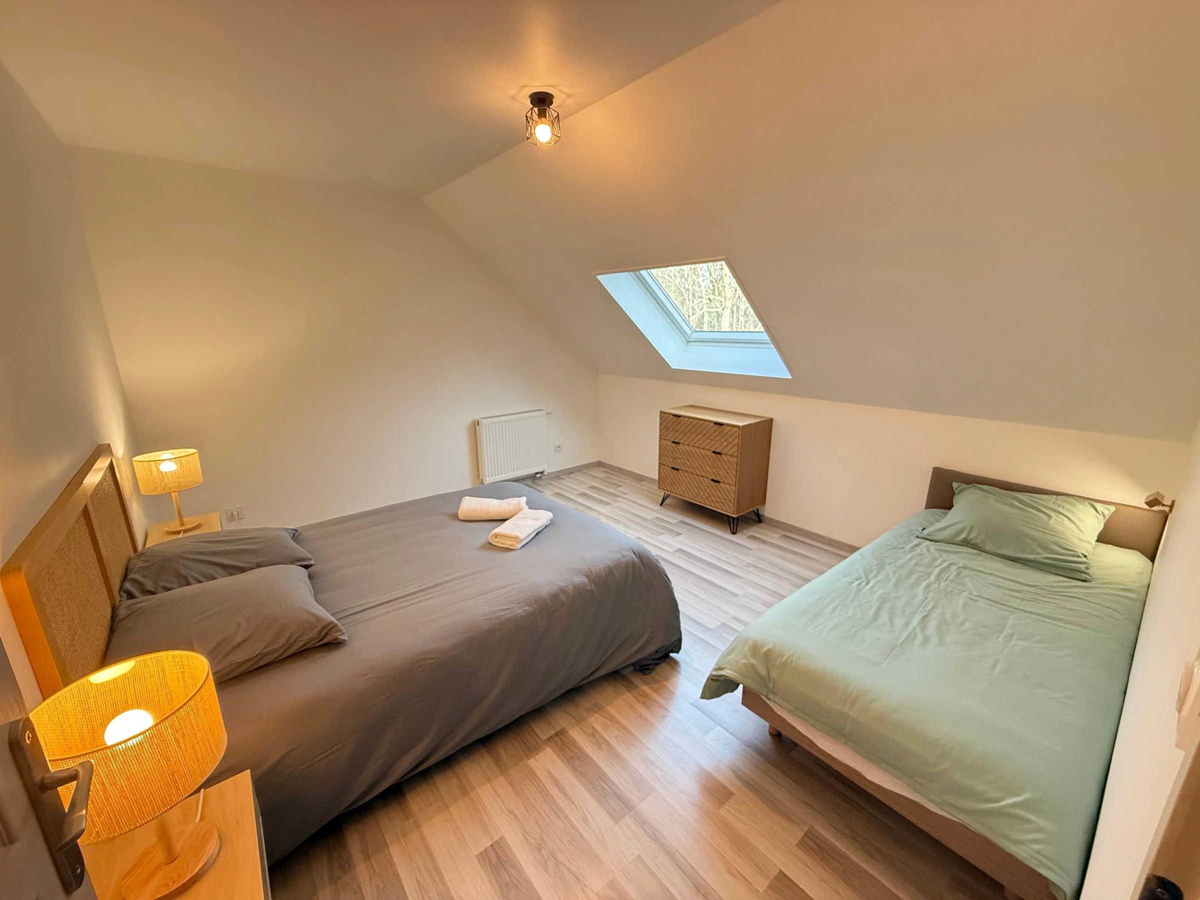 - Bedroom 3: One 140x190 cm double bed and one 90x190 cm single bed
