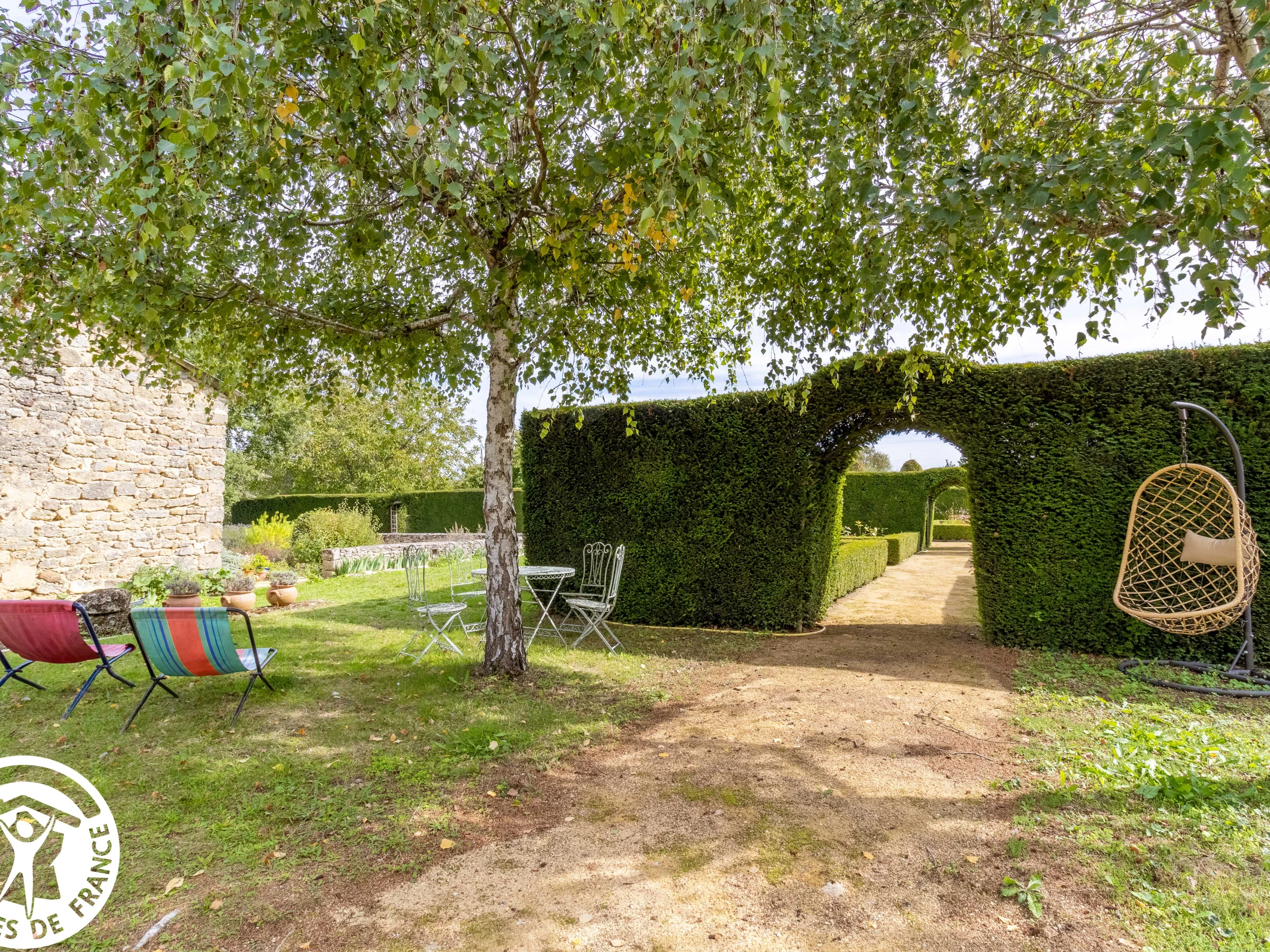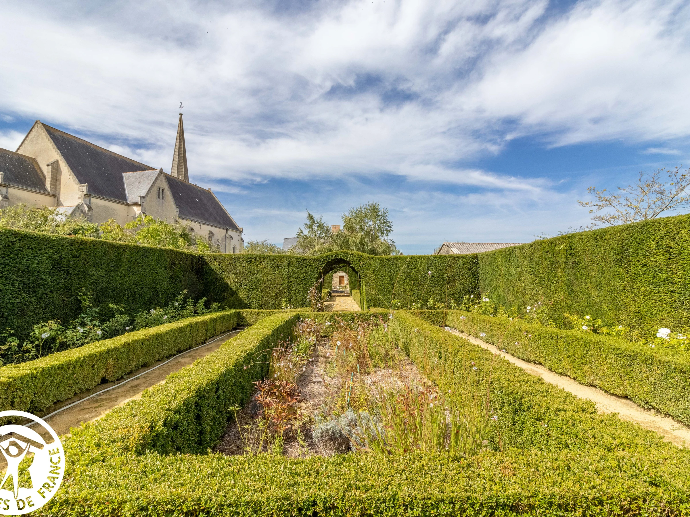The former priory, located behind the church, boasts magnificent gardens spanning nearly 6,000 m². Immerse yourself in the peaceful atmosphere. Admire the numerous roses, the herb garden, and the hedge-lined paths. Remarkable gardens in which you can walk, relax, meditate...