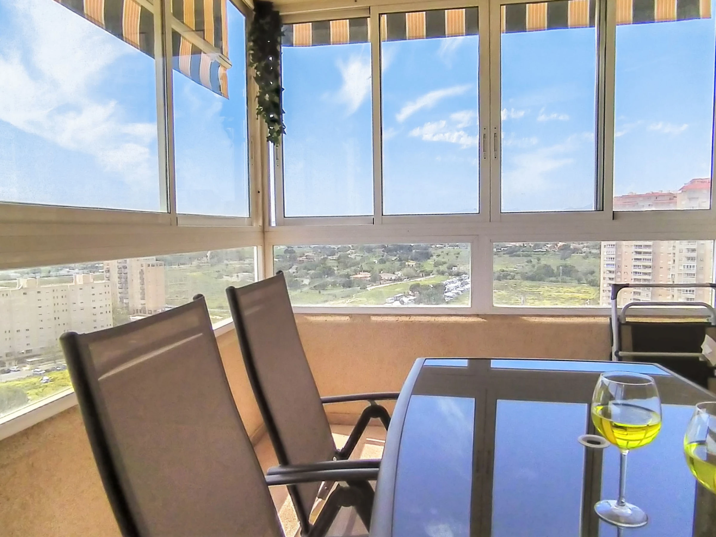 Playa Muchavista: It has an open pool and a heated pool. Very large, child friendly apartment block "Bitacoras", 18 storeys. In the resort, 150 m from the sea, 150 m from the beach. For shared use: property (fenced) with lawn, swimming pool, indoor pool heated (seasonal availability: [hidden] - [hidden] and [hidden] - [hidden] Shower/WC in the pool area, outdoor shower, patio, children's playground. In the complex: bar, fitness room, lift. Parking on the premises. Supermarket 100 m, restaurant 50 m, bar 100 m, tram "Benidorm-Campello-ALicante" 150 m, bus stop "Mongomit – Fabraquer" 200 m, sandy beach "Muchavista" 150 m. Nearby attractions: Terra Mitica Benidorm 31 km, Acualandia Benidorm 33 km, Alicante 12 km, Aeropuerto Alicante 25 km, Elche 42 km, Valencia 172 km. Please note: baby equipment on request. The owner does not accept any youth groups. Neighbourhood highly sensitive to noise. Quietness and good behaviour expected.