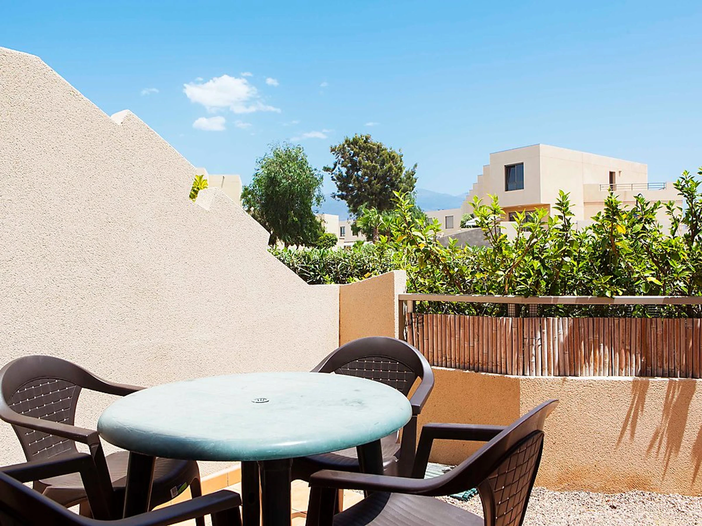 1-room studio 45 m2, on the ground floor. Simple and cosy furnishings: living/dining room with 1 sofabed and TV (flat screen), fan. Exit to the terrace. Alcove with 1 french bed. Open kitchen (2 hot plates, microwave, freezer, electric coffee machine) with dining table. Bath/bidet/WC. Boiler (50 litres). Terrace 16 m2. Terrace furniture. View of the mountains and the resort. Facilities: washing machine, iron, baby cot for up to 3 year olds.