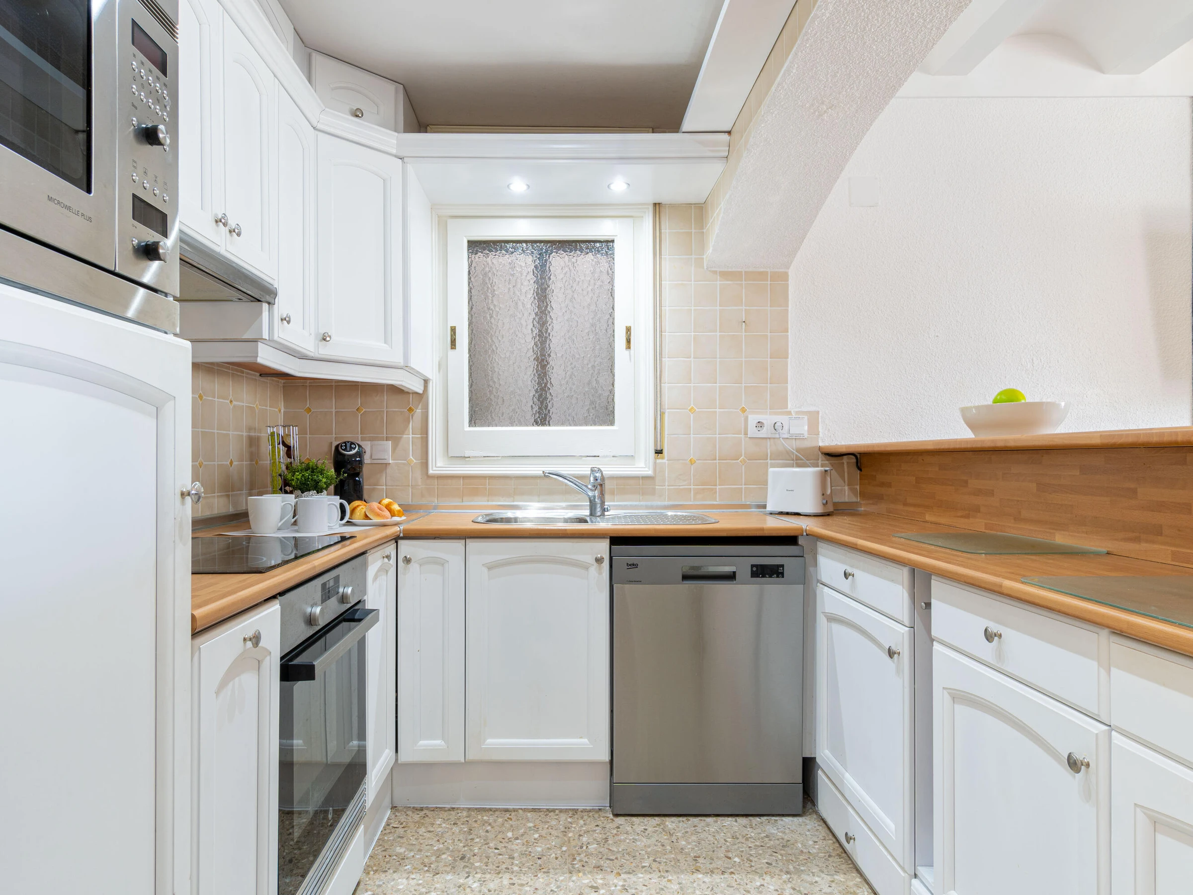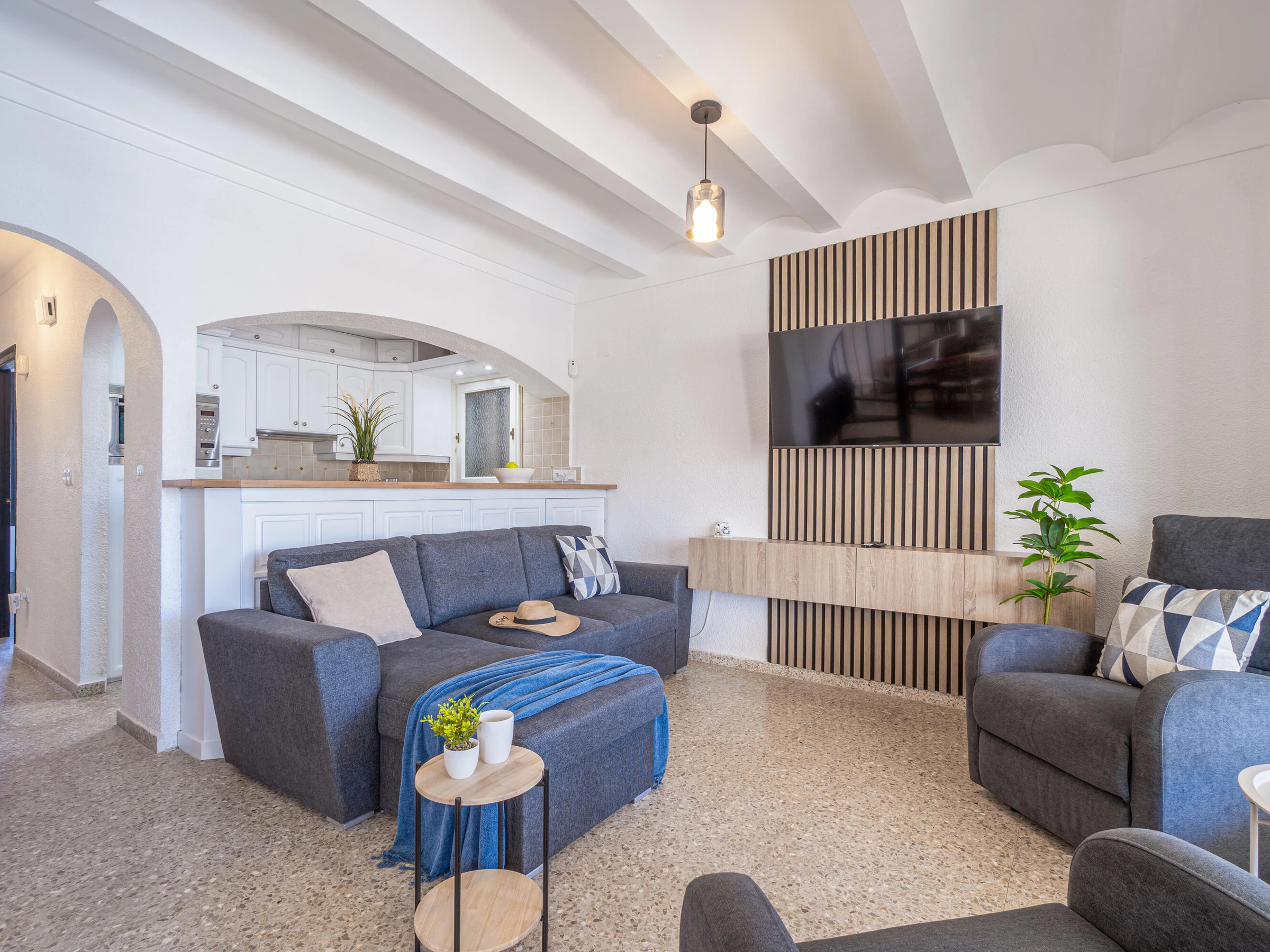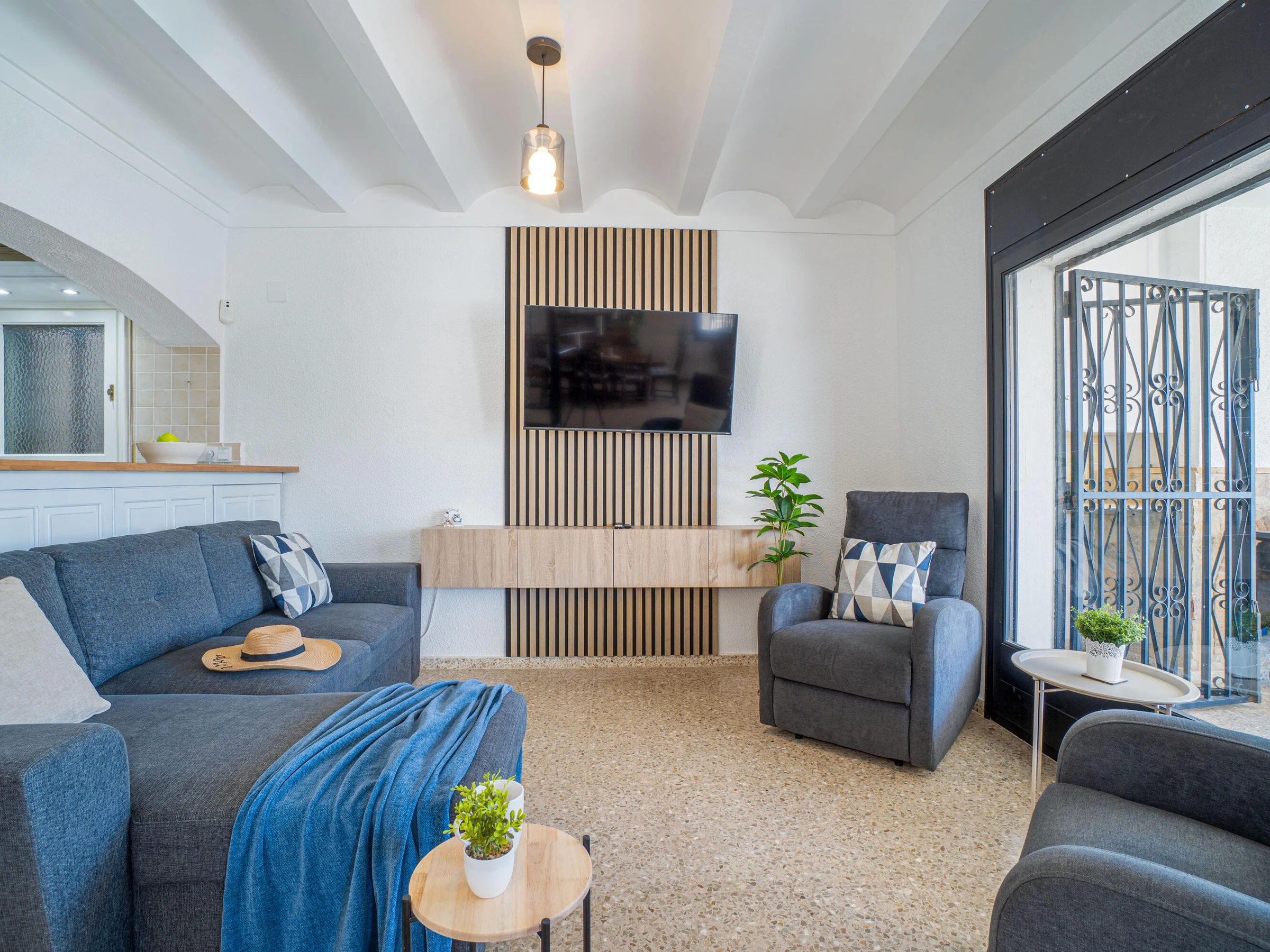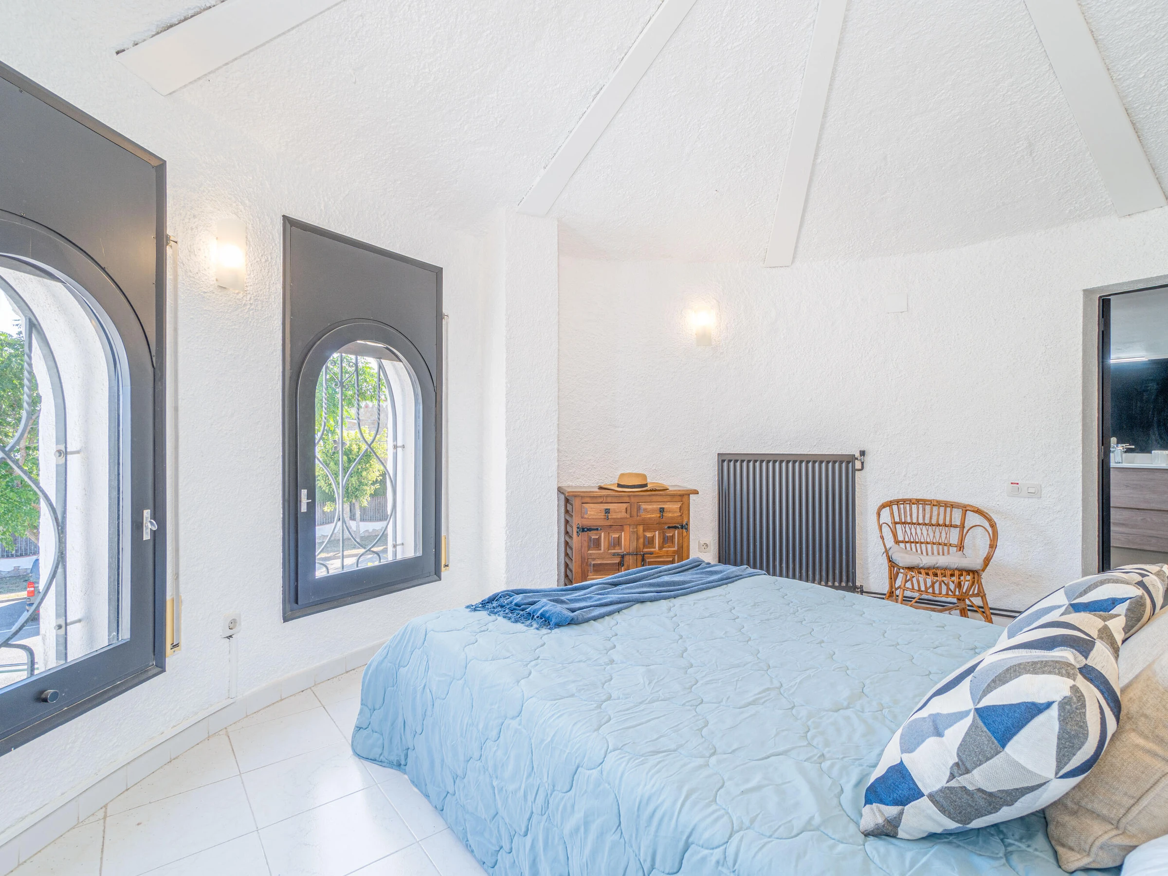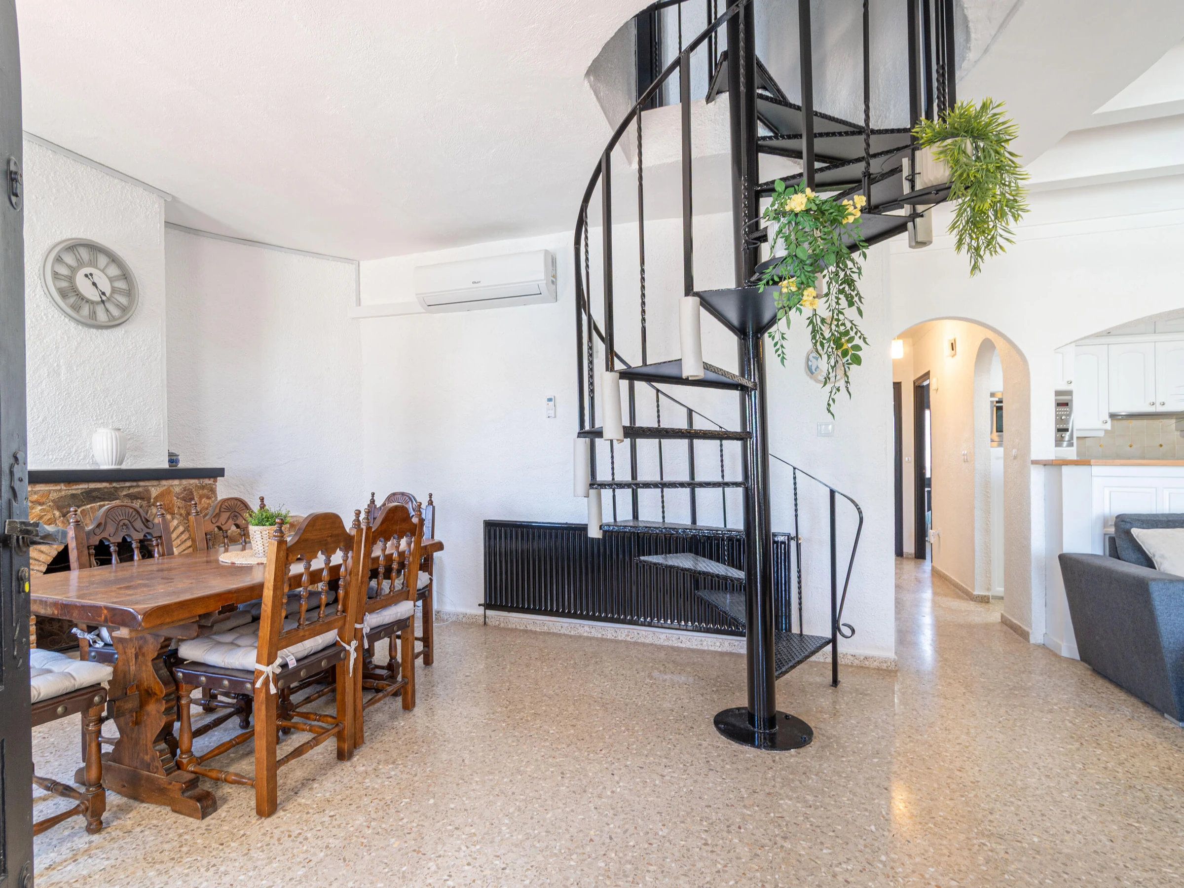 This beautiful rental house in the quiet Ter sector of Empuriabrava offers everything you need for a comfortable stay. Upon entering, you’ll find a spacious living room with plenty of natural light, leading to a lovely raised, covered terrace. The living room features an open-plan kitchen equipped with an oven, microwave, dishwasher, gas stove, kettle, and toaster. There is also a smart TV in the living room for added convenience. The house has four bedrooms, three with double beds (150 x 200 cm) and one with two single beds (90 x 190 cm). All bedrooms are air-conditioned, as is the rest of the house, and there is fiber optic internet for fast connectivity. The largest bedroom is located in an idyllic tower of the house and has an en-suite bathroom with a shower. The second bathroom is located on the ground floor and also features a shower. The garden is spacious and fully enclosed, offering privacy. In front of the house, there is a large driveway where two cars can easily be parked. The backyard is situated by the water of Empuriabrava and features a 12.5-meter mooring, perfect for boat enthusiasts. The laundry room is located on the side of the house. This house offers not only comfort but also an ideal location to enjoy! Energy Consumption: G 348 Emissions: F 70