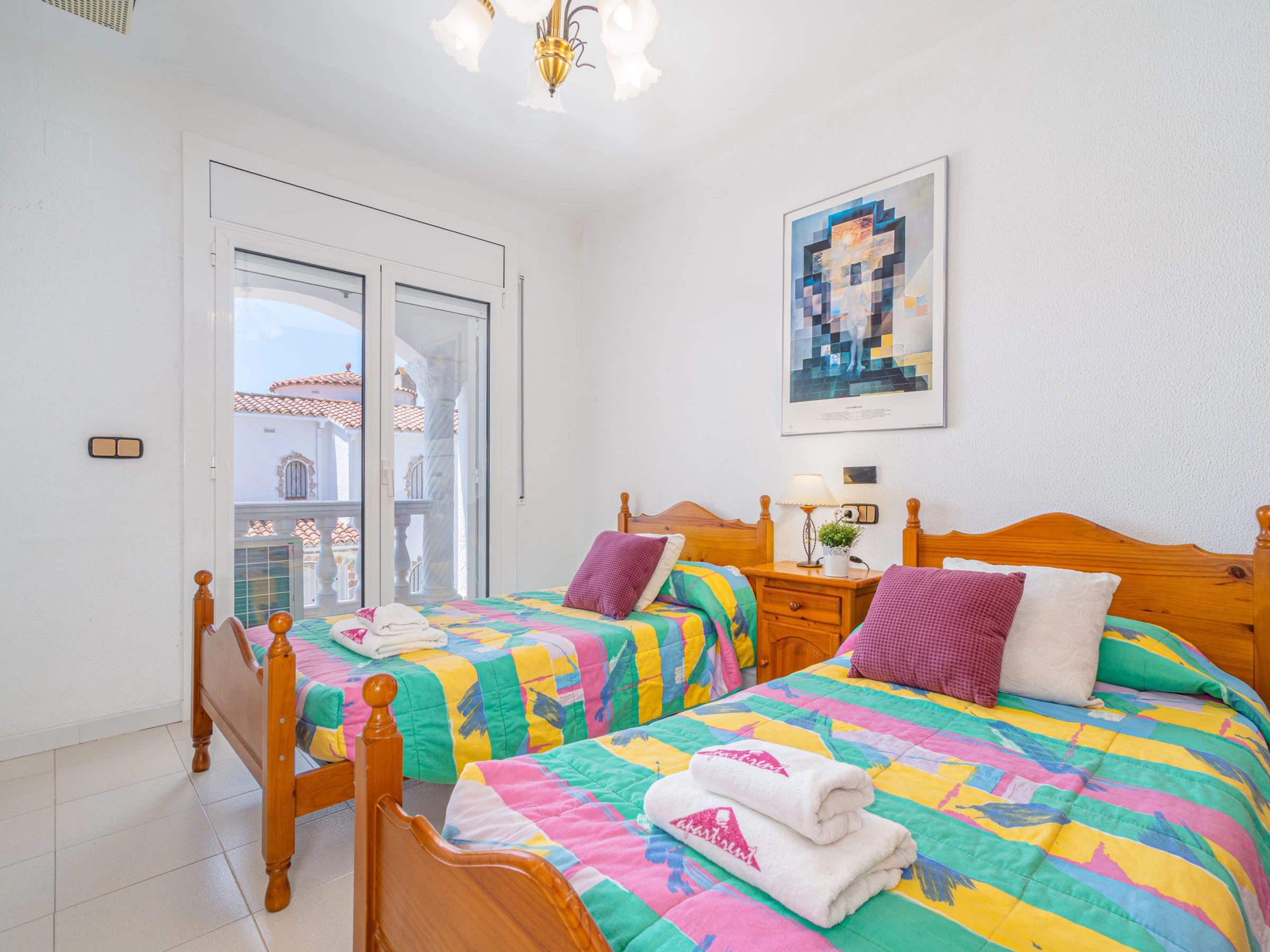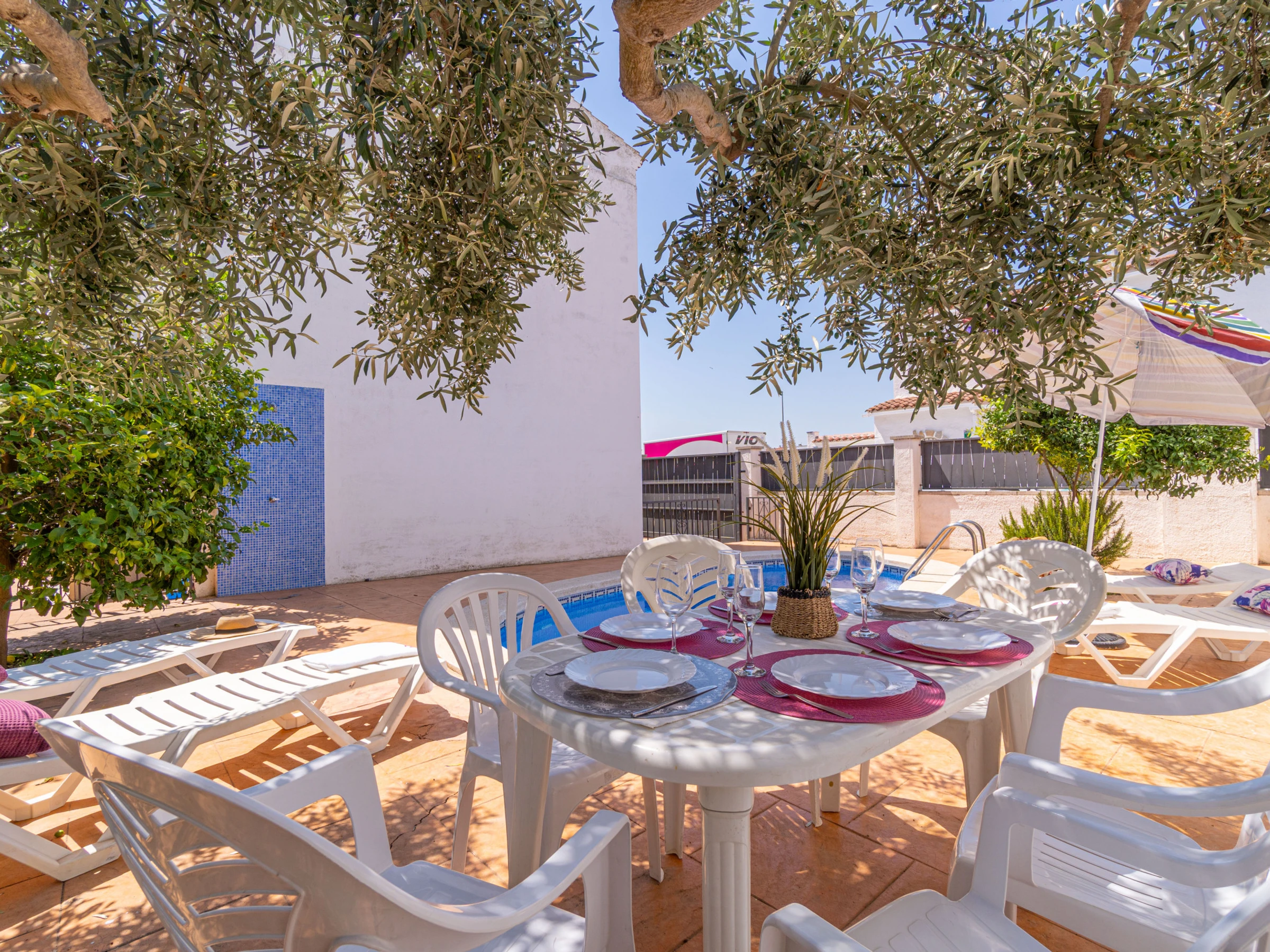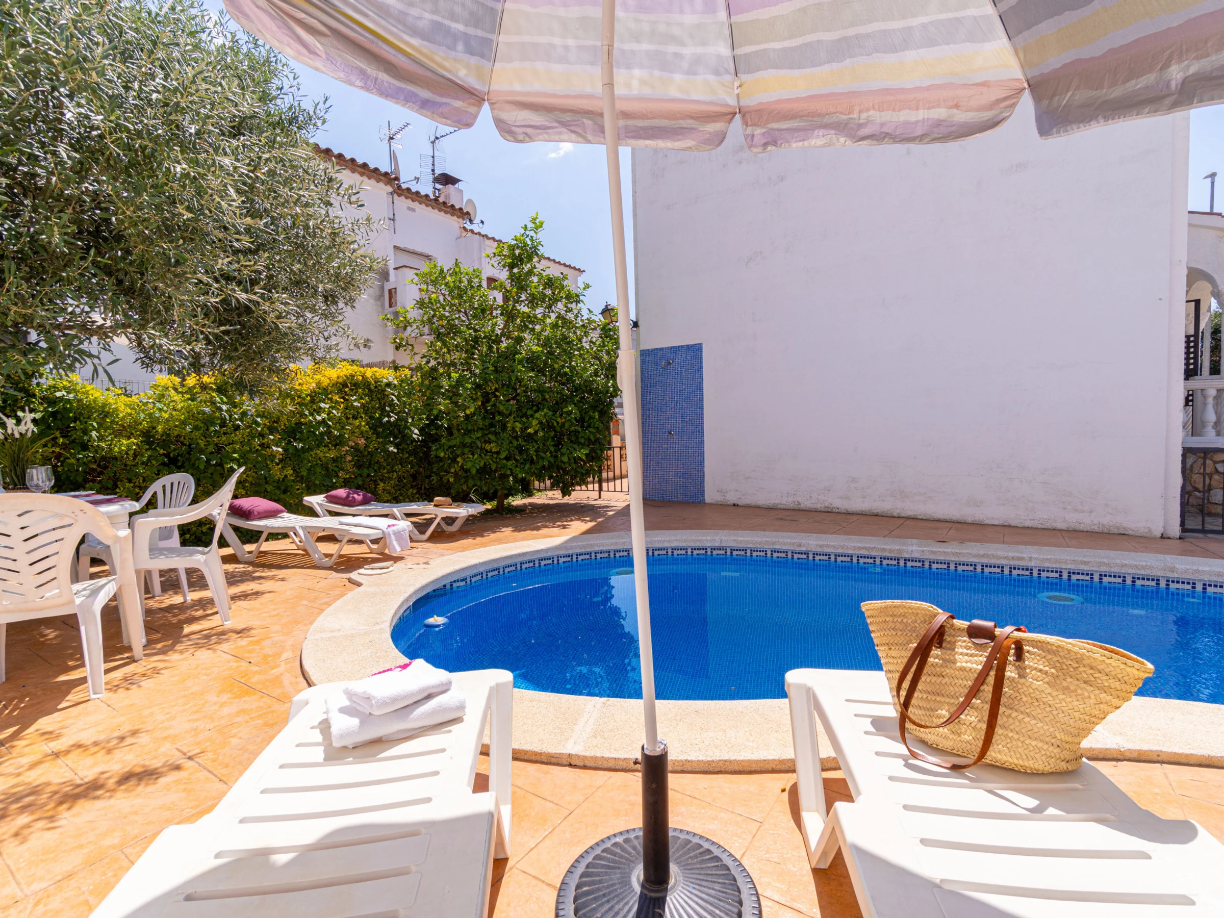 The accommodation features garden furniture, a fenced plot, terrace, barbecue, iron, internet access (wifi), balcony, heat pump heating, air conditioning in the living room and some bedrooms, a private swimming pool and satellite television (languages: Spanish, German and French).