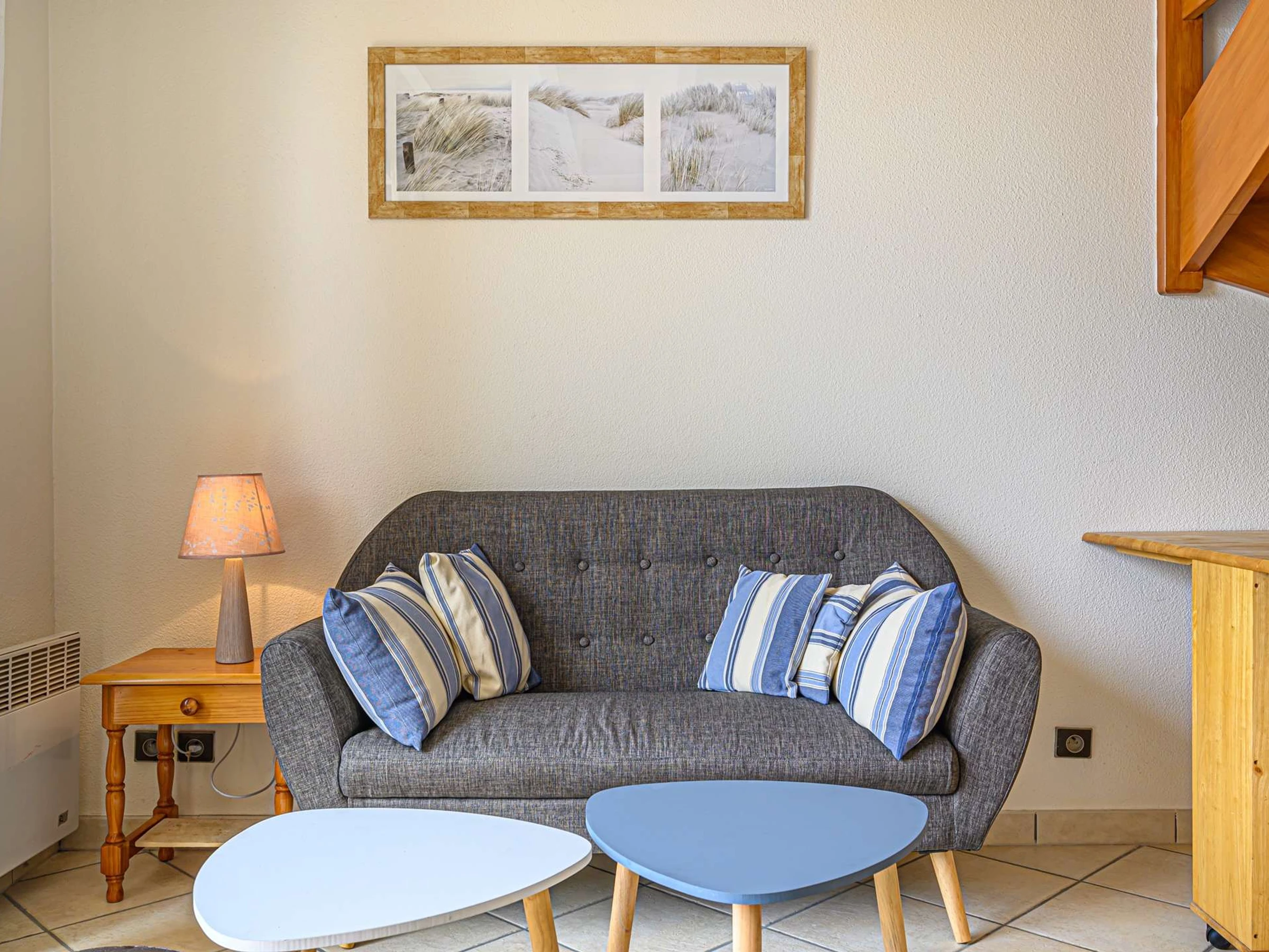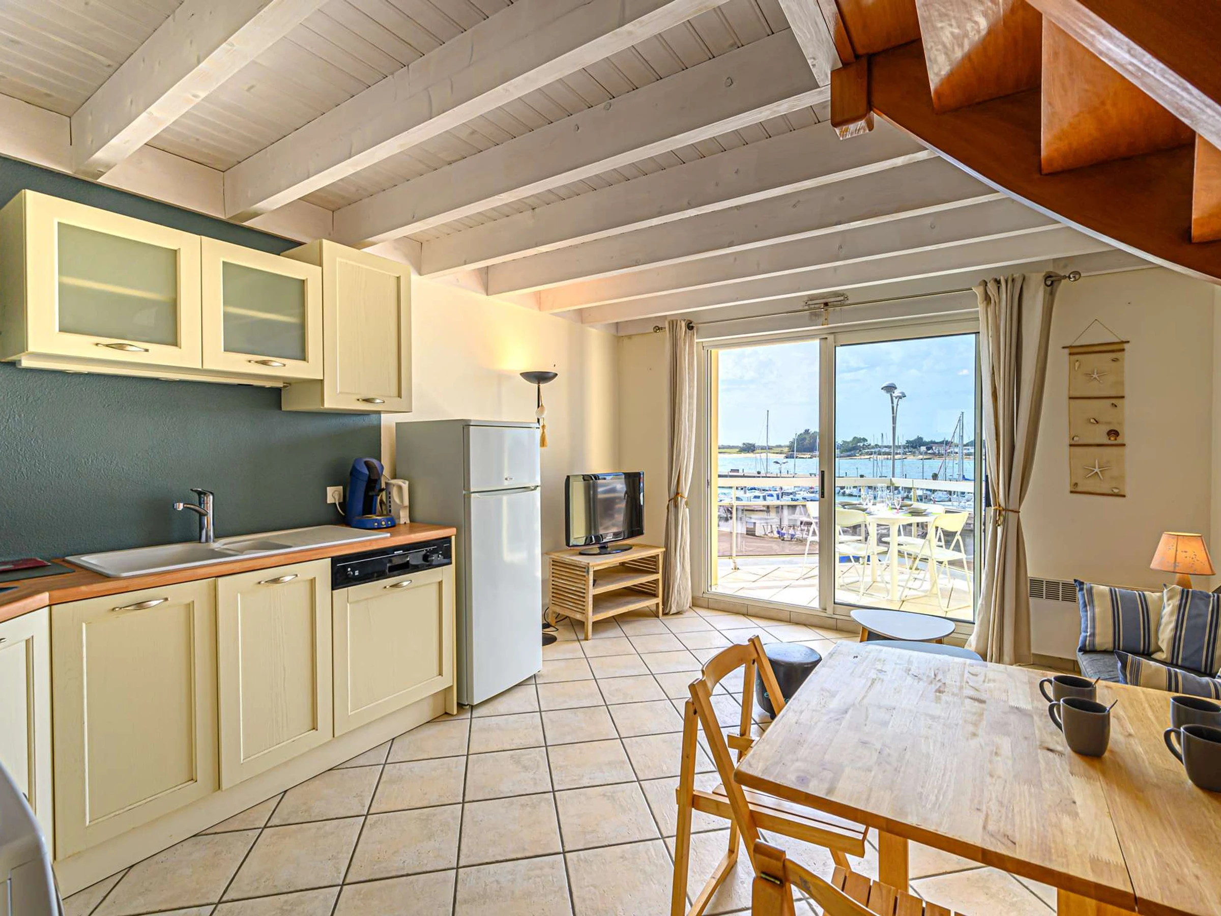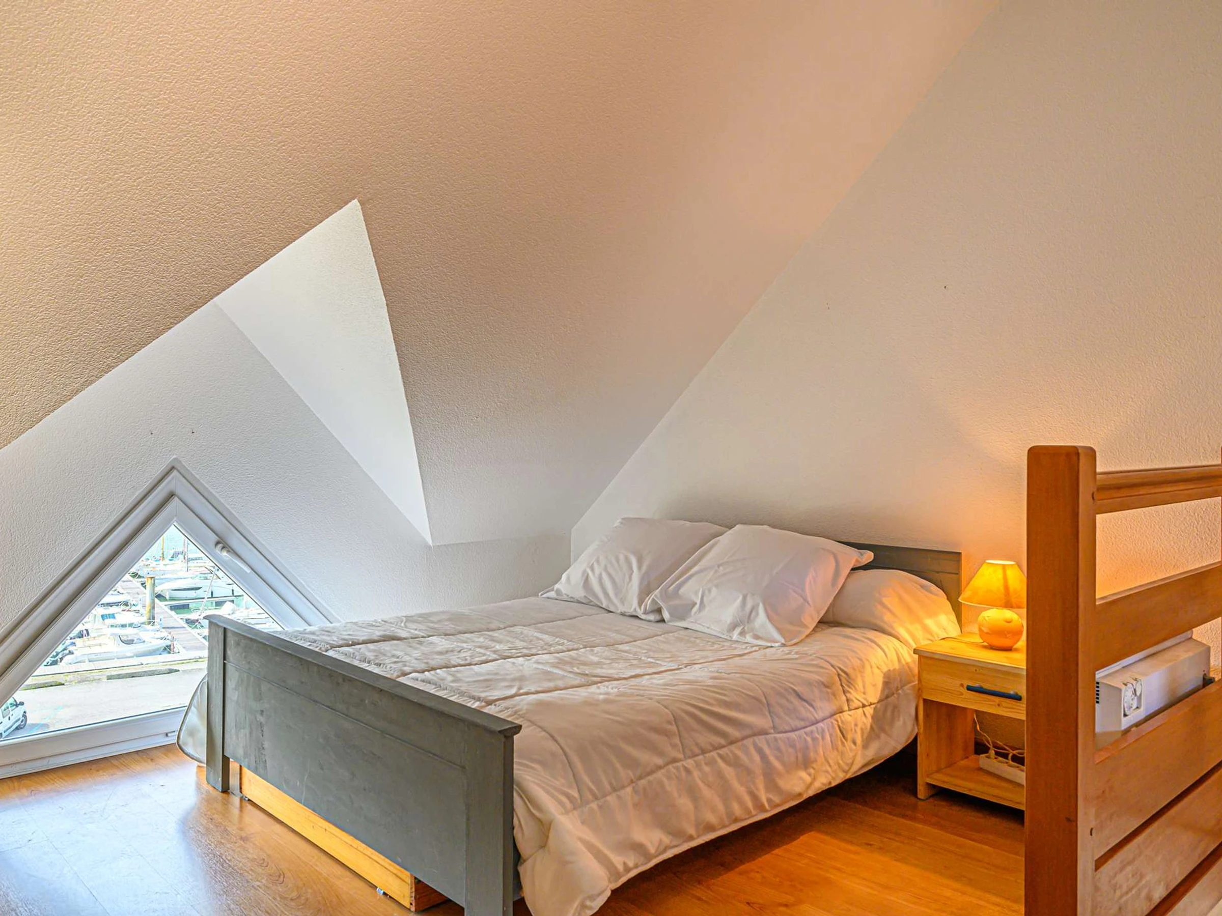 Overlooking Étel marina, 600 m from the beach and water sports centre, and 350 m from shops, 2-room duplex apartment + mezzanine (approx. 45 m²) for 4 people, located on the CAPITAINE COOK Residence (Gallion building, 2nd floor, door 209) with sea-view balcony. Heated communal swimming pool from mid-June to mid-September (weather permitting) and tennis court :