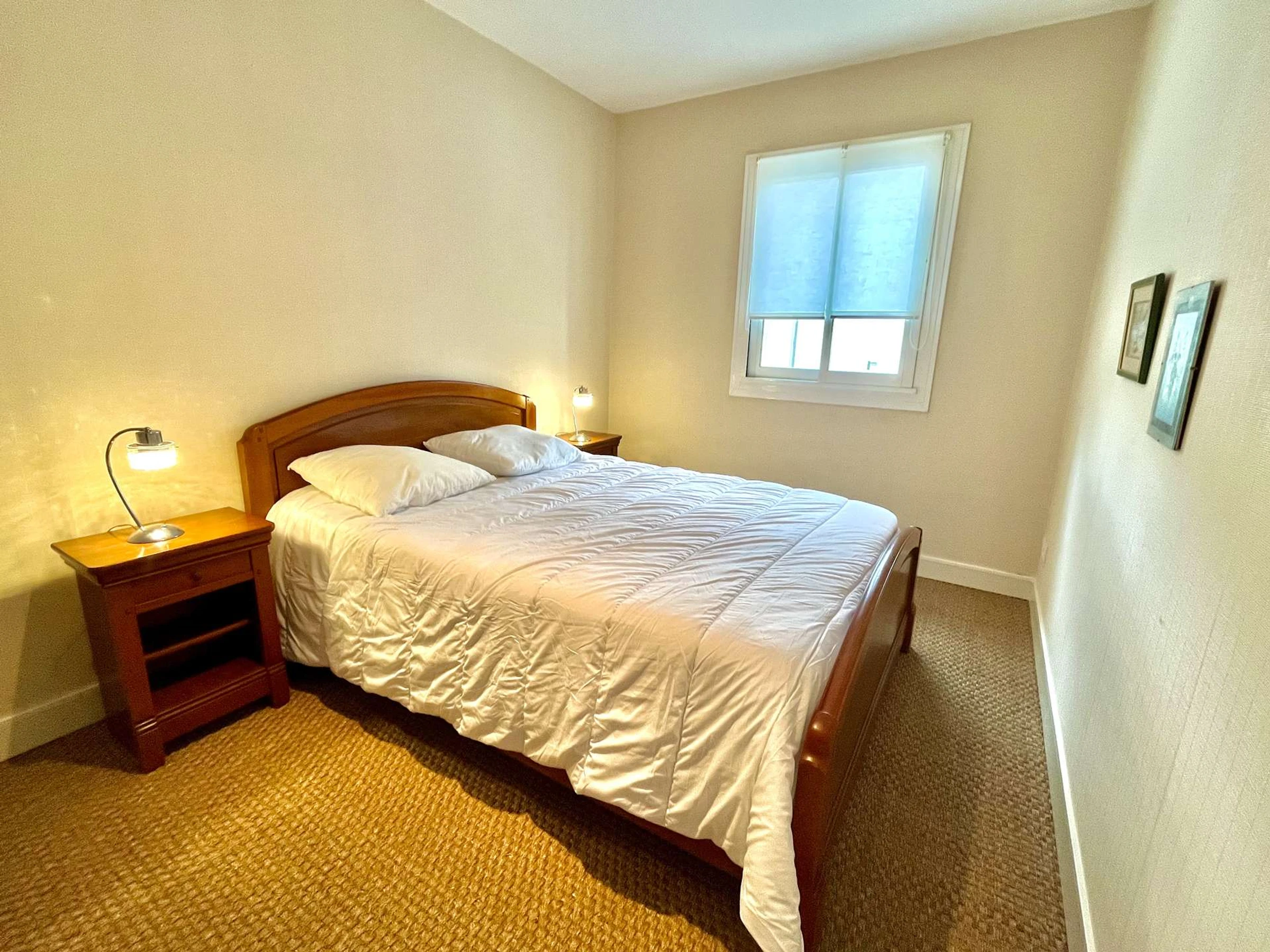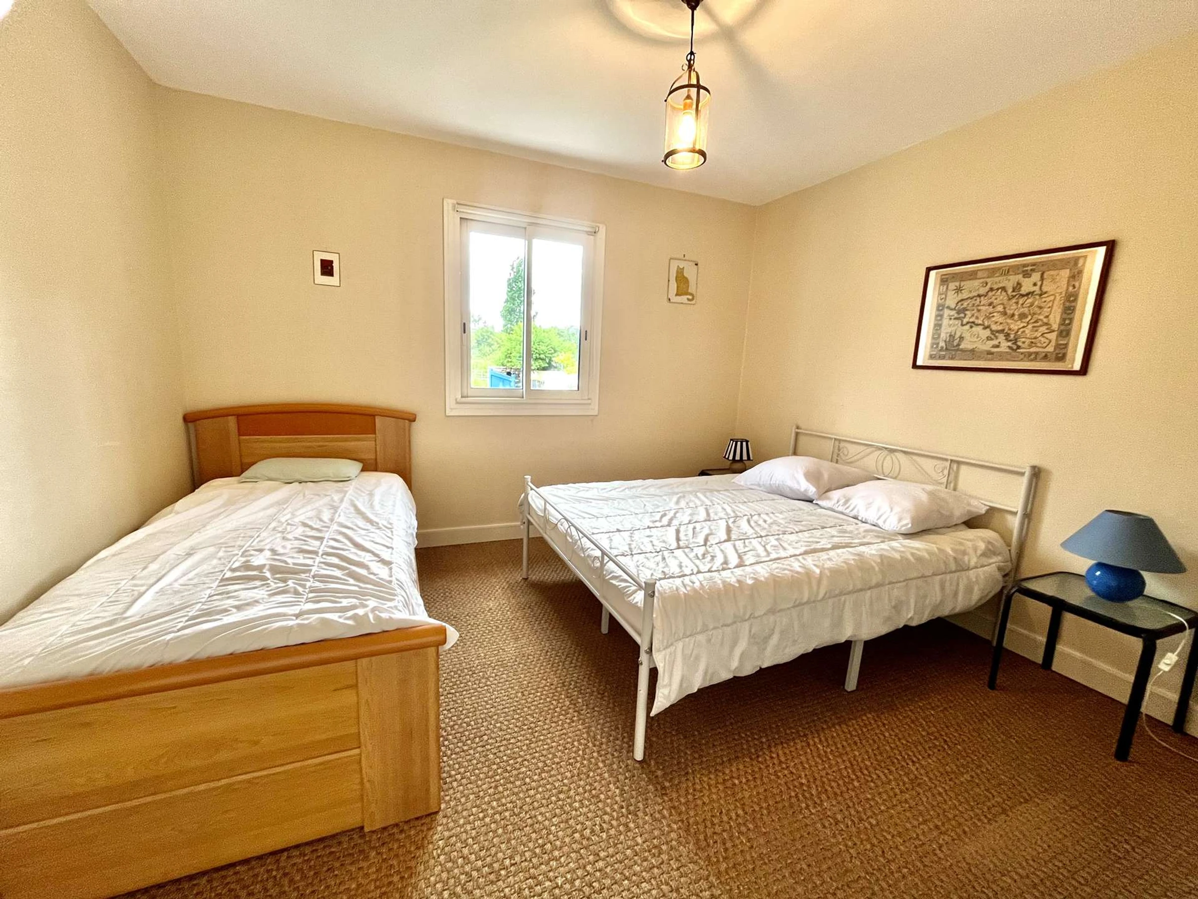 - 1 bedroom with 1 double bed (140, duvet) and 1 single bed (90, duvet)