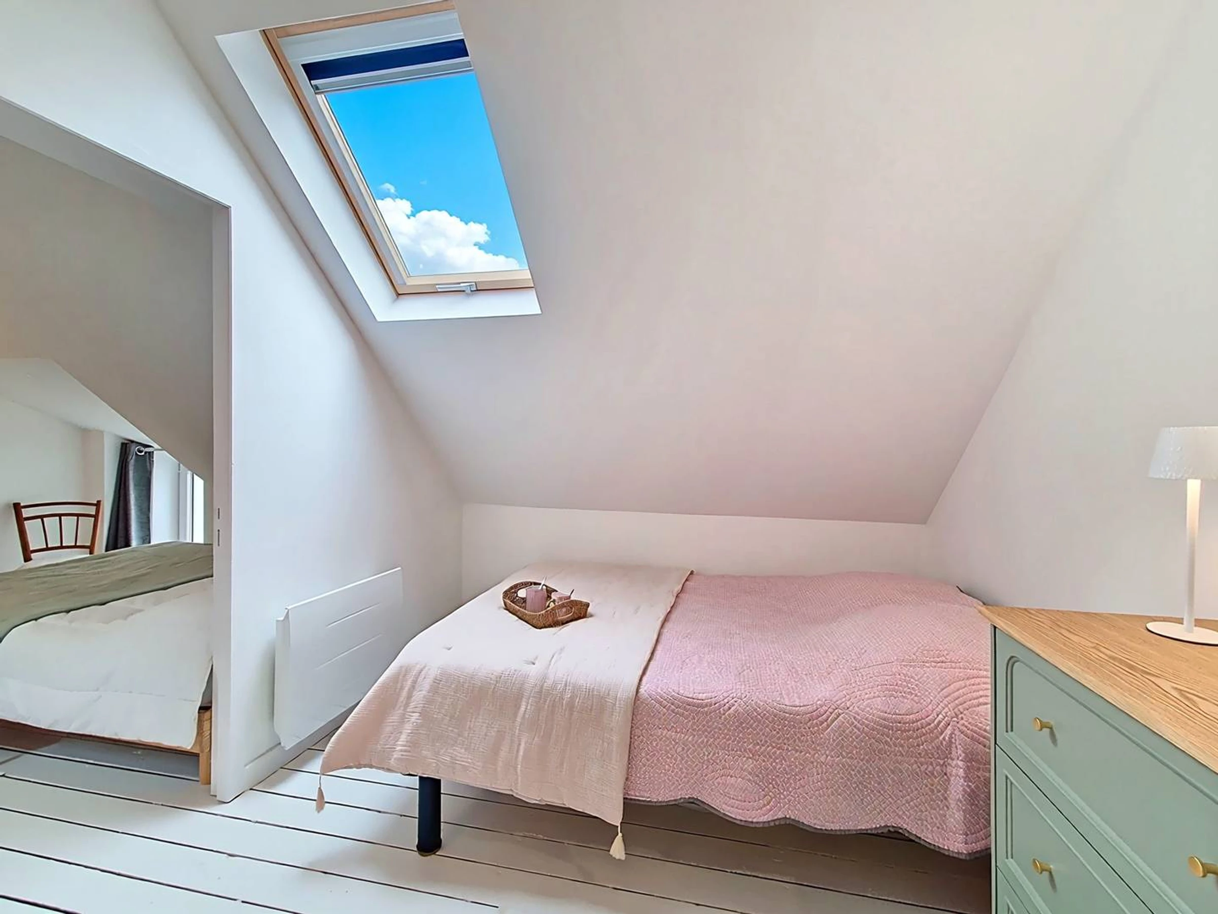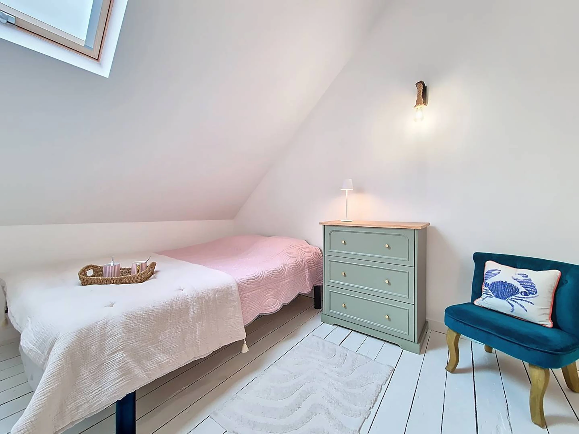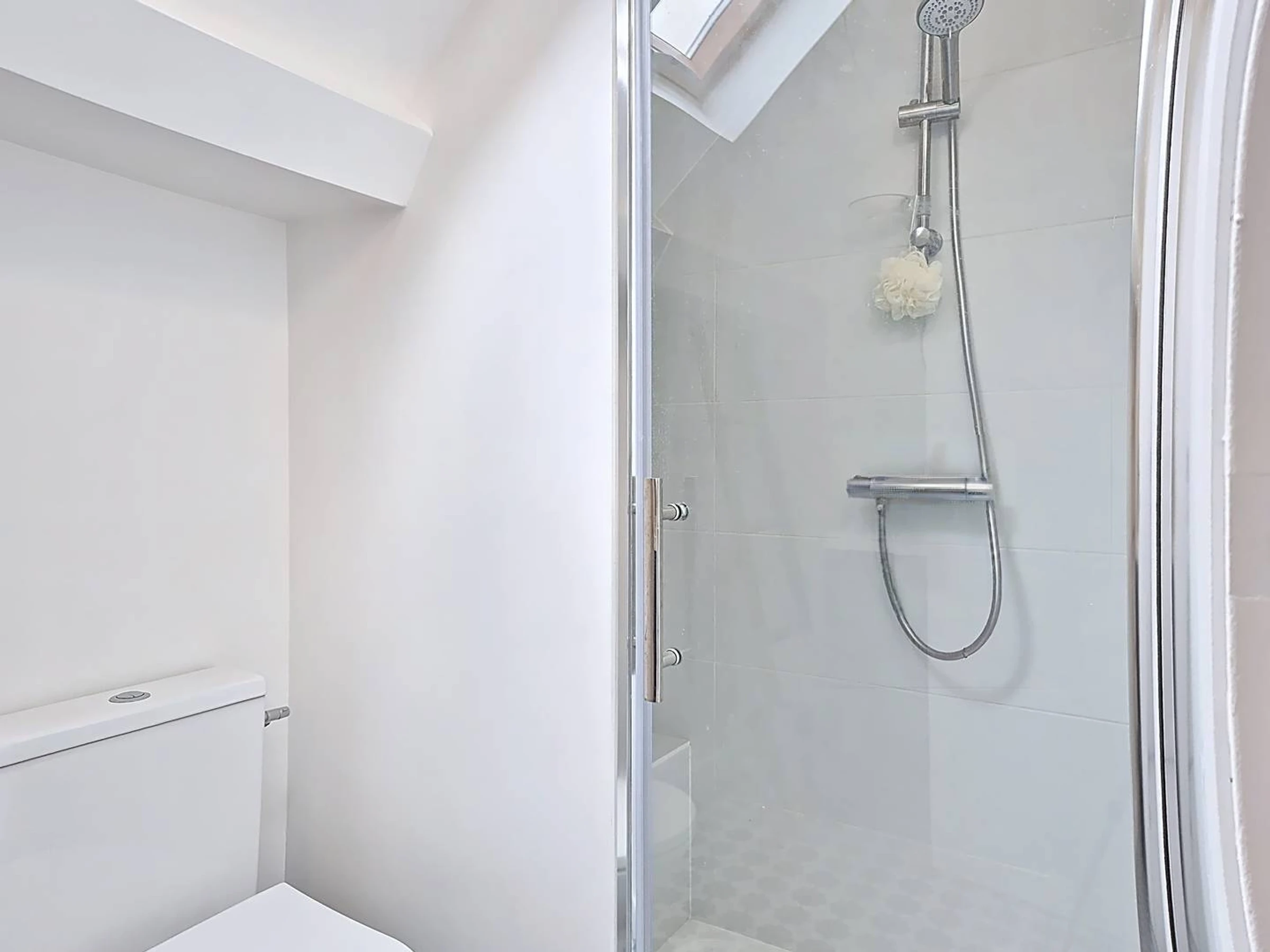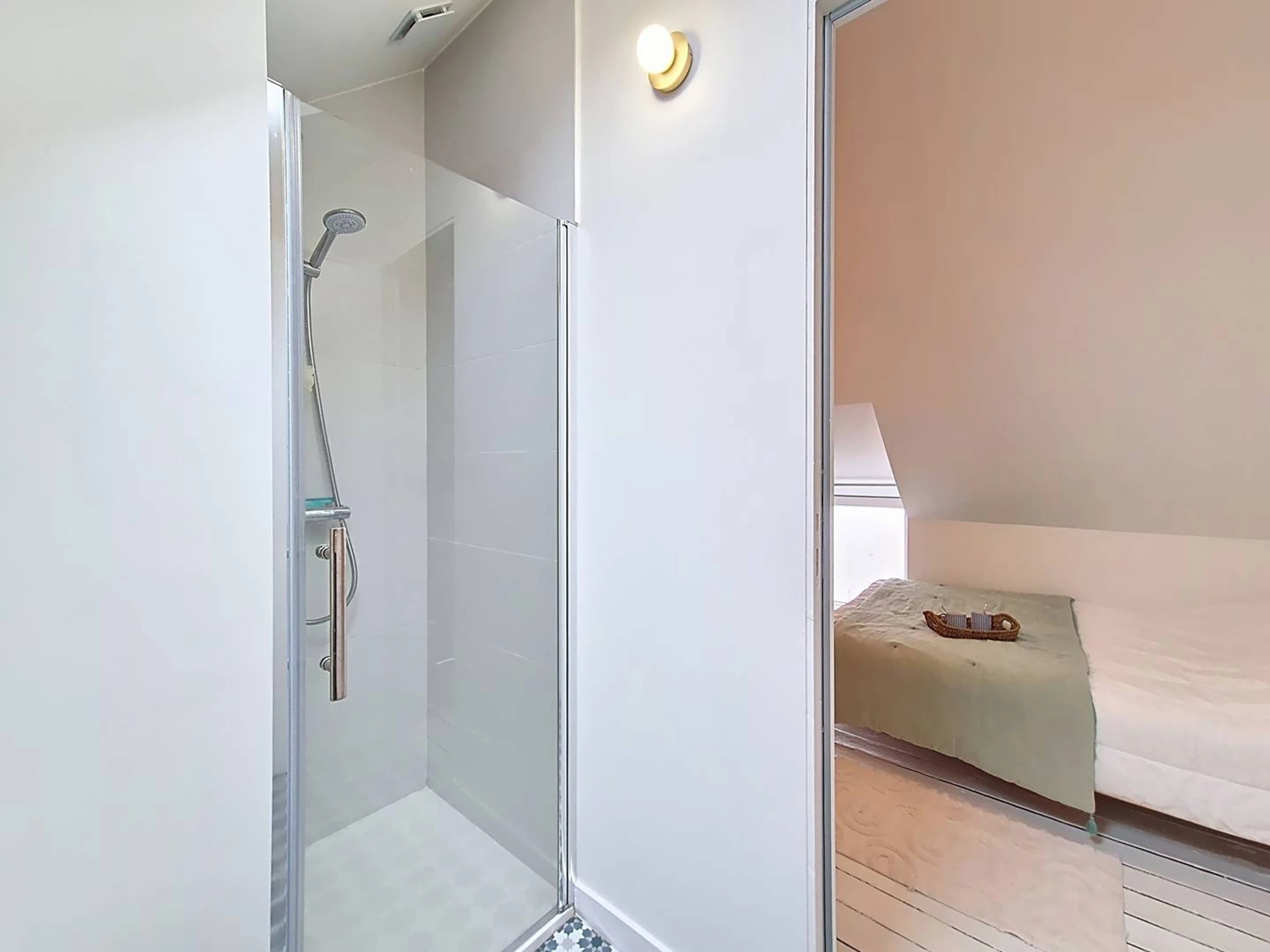 - 1 attic master suite with 1 double bed (140, duvet), storage and en-suite shower room with WC