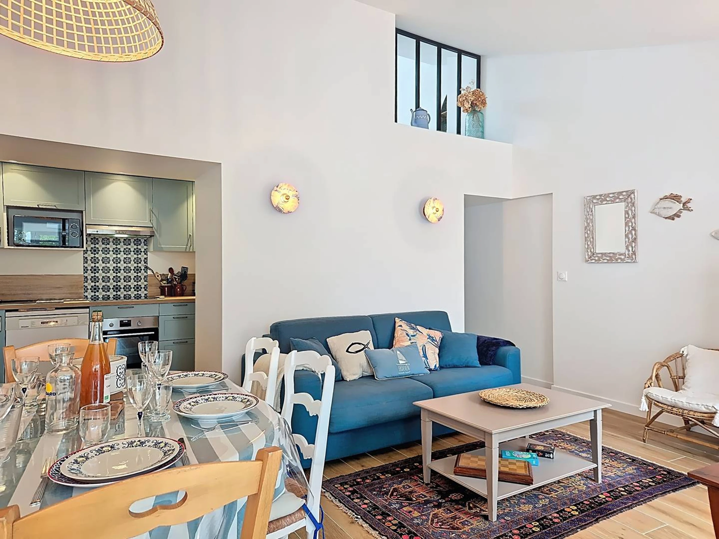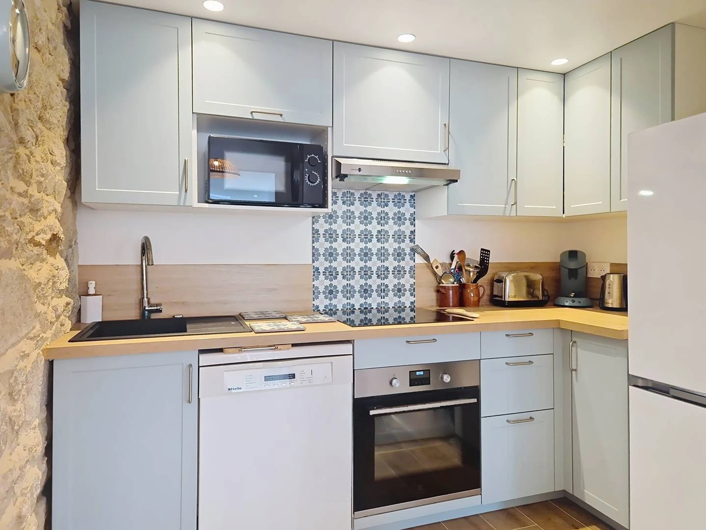 - Open-plan and equipped kitchen (dishwasher, fridge-freezer, 3-burner induction hob, oven, microwave, filter coffee maker + Senseo, toaster, kettle)