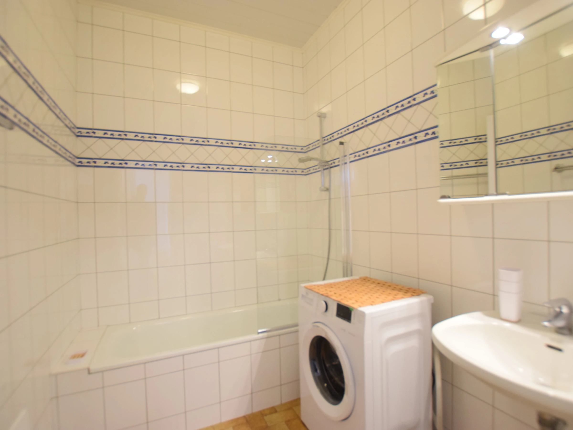 The bathroom is equipped with a bathtub with sink and towel dryer, the toilets are separate