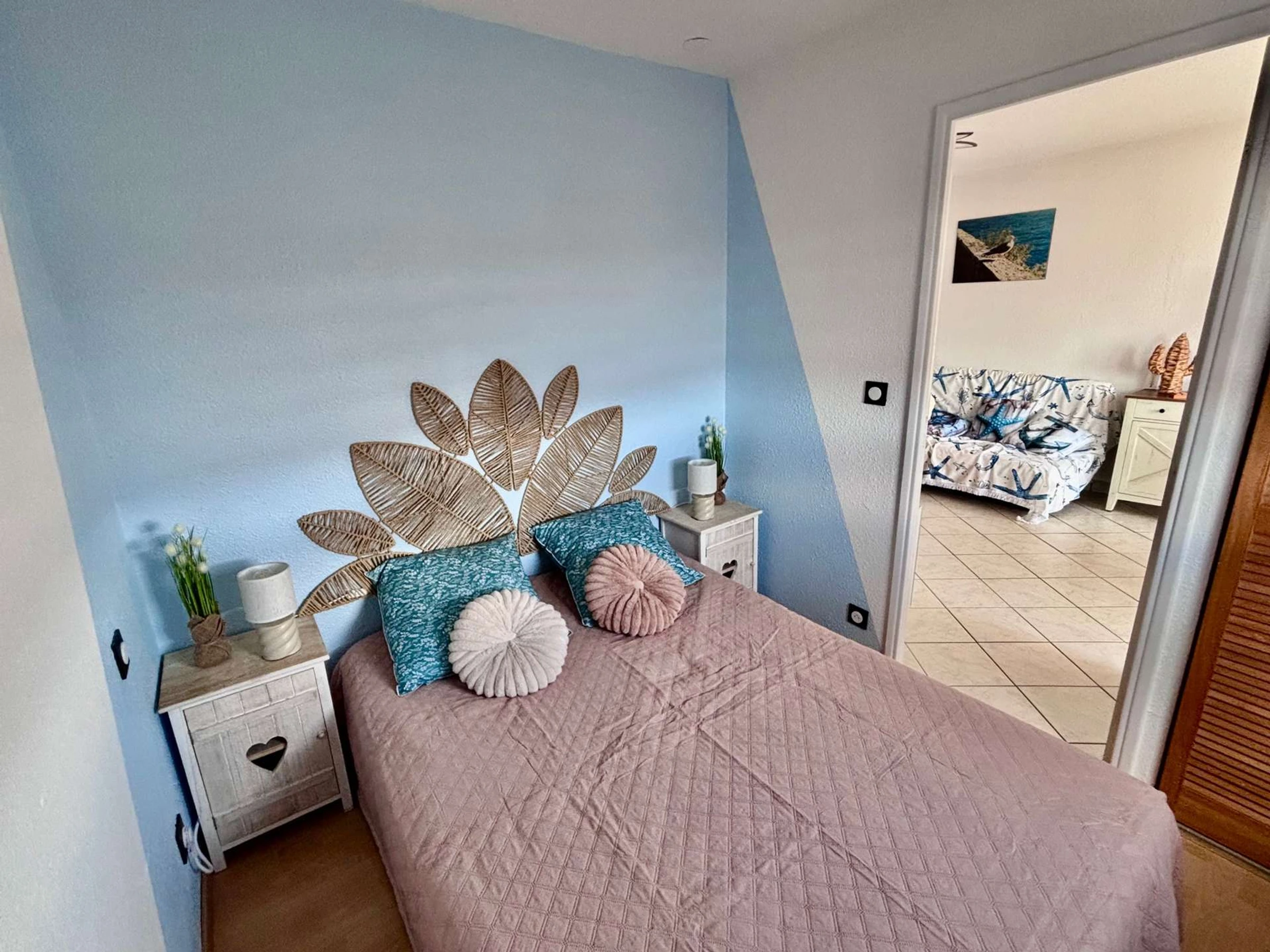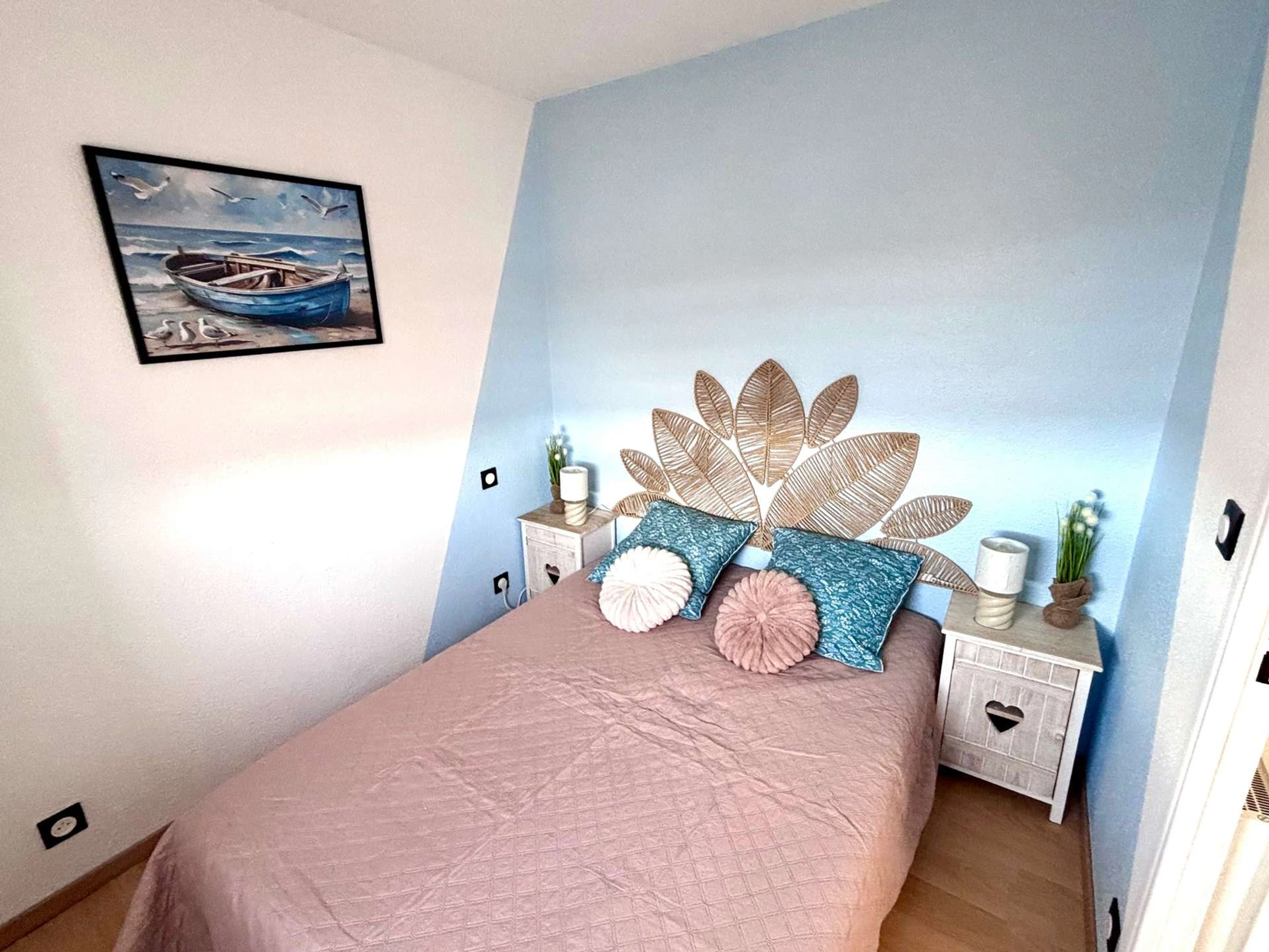 Le logement : Ce logement de vacances en famille situé au 2e étage est composé d'un séjour avec clic clac et téléviseur (sous réserve d'une bonne réception), d'un espace cuisine équipée, d'une chambre avec un lit double en 140 + placard intégré, d'un coin cabine avec un lit simple pour enfant posé sur un meuble dressing, d'une salle d'eau et des wc indépendants. Il dispos également d'une place de parking privé